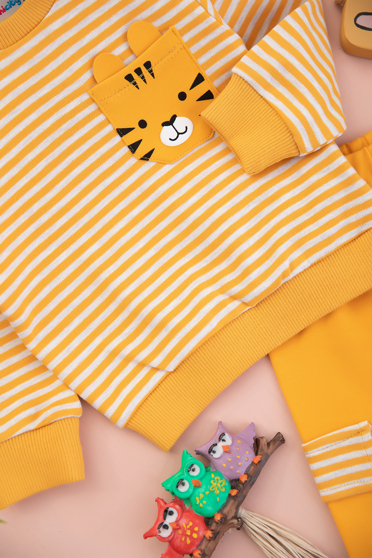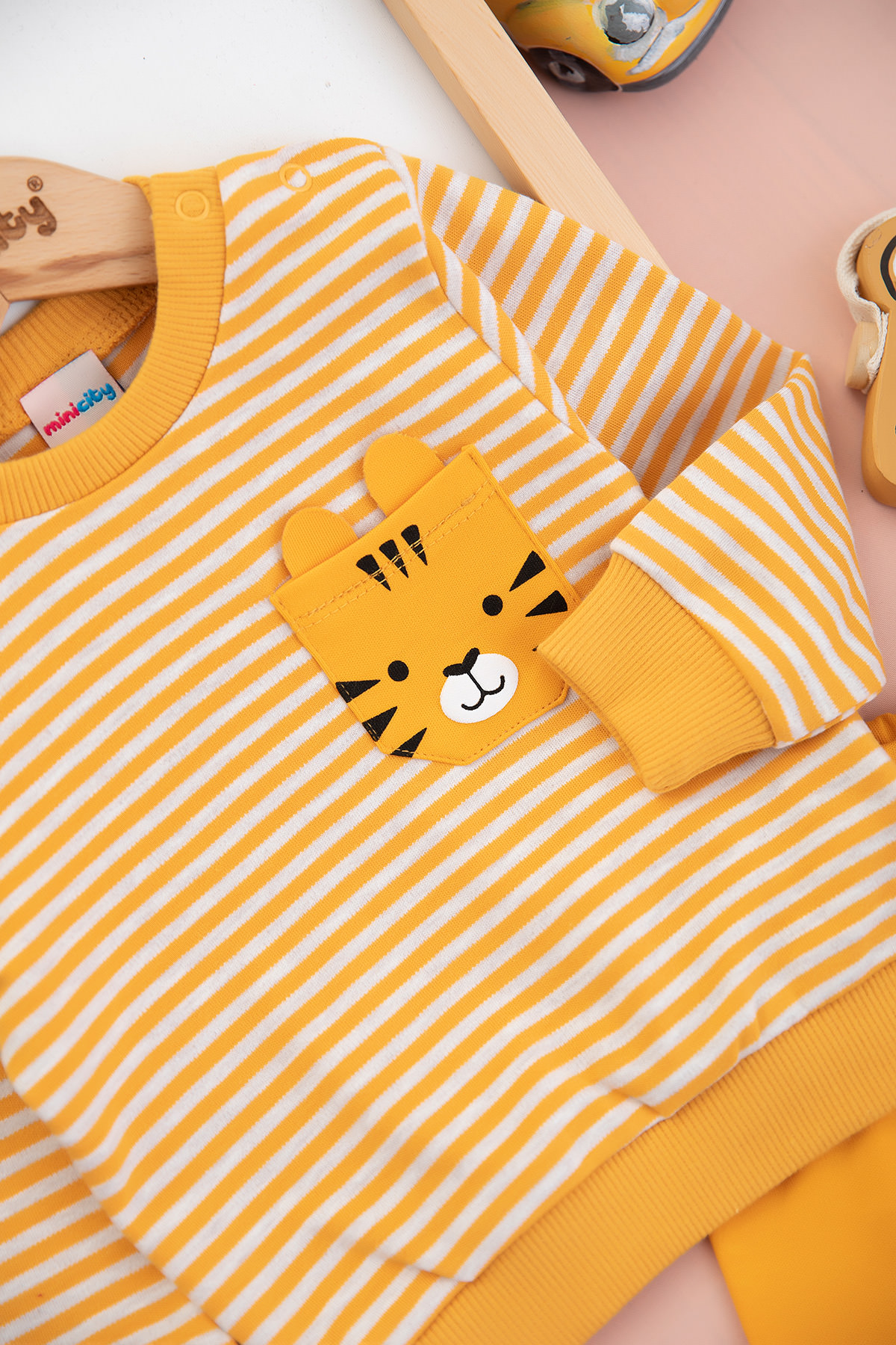 Erkek Bebek Çizgili Cep Aslan Baskılı Takım - 24001 (9-24 Ay)