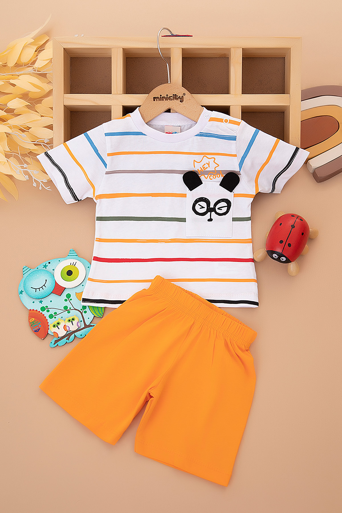 Erkek Bebek Çizgili Cepli Şortlu Takım - 25305 (9-24 Ay)
