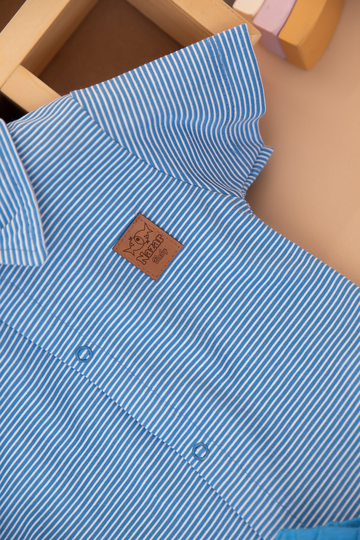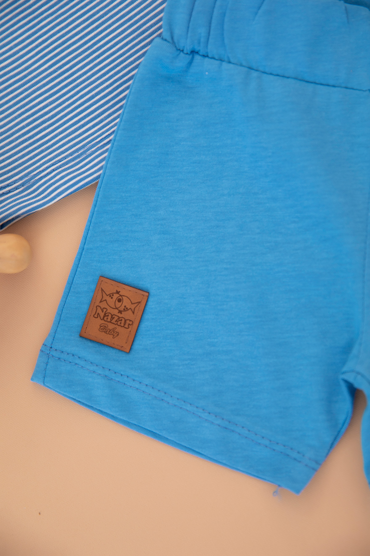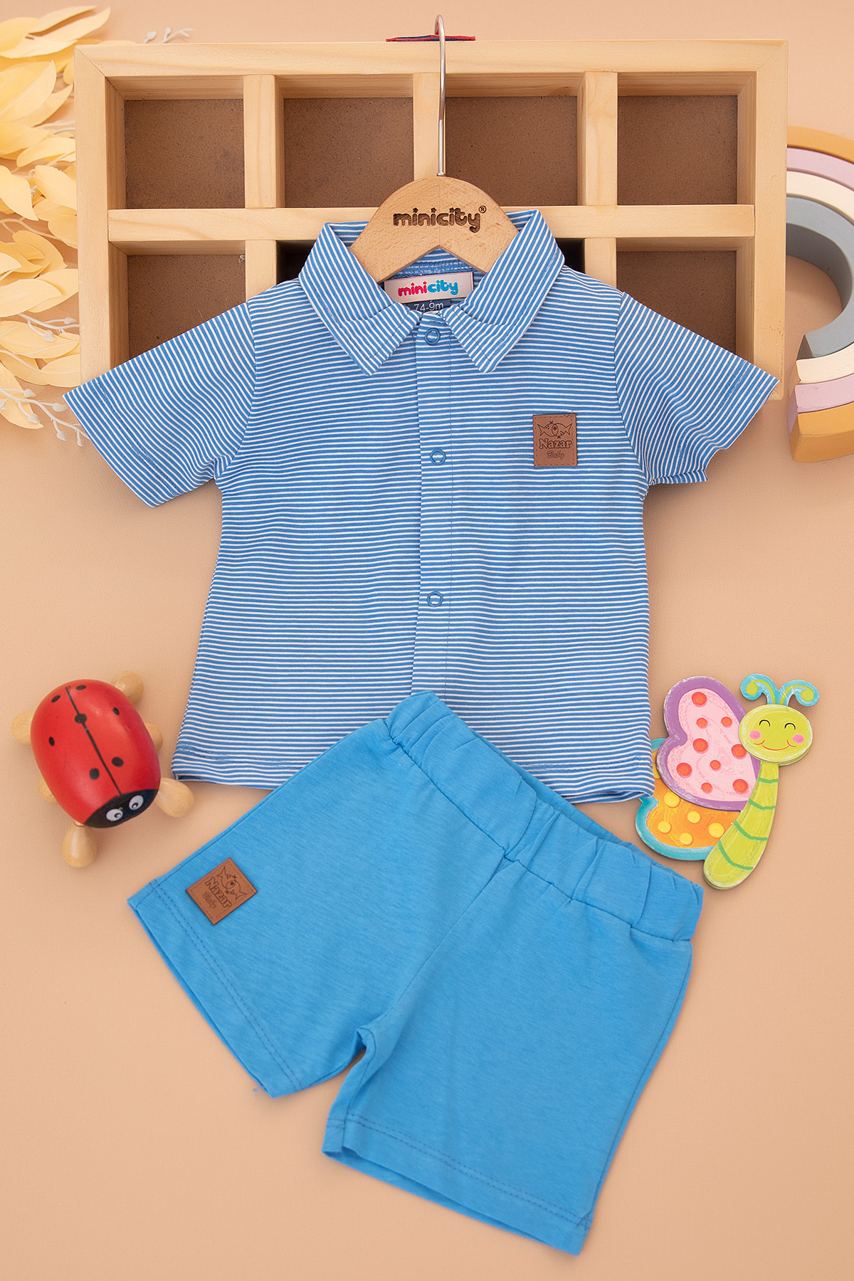 Erkek Bebek Çizgili Deri Armalı Şortlu Takım - 25450 (9-24 Ay)