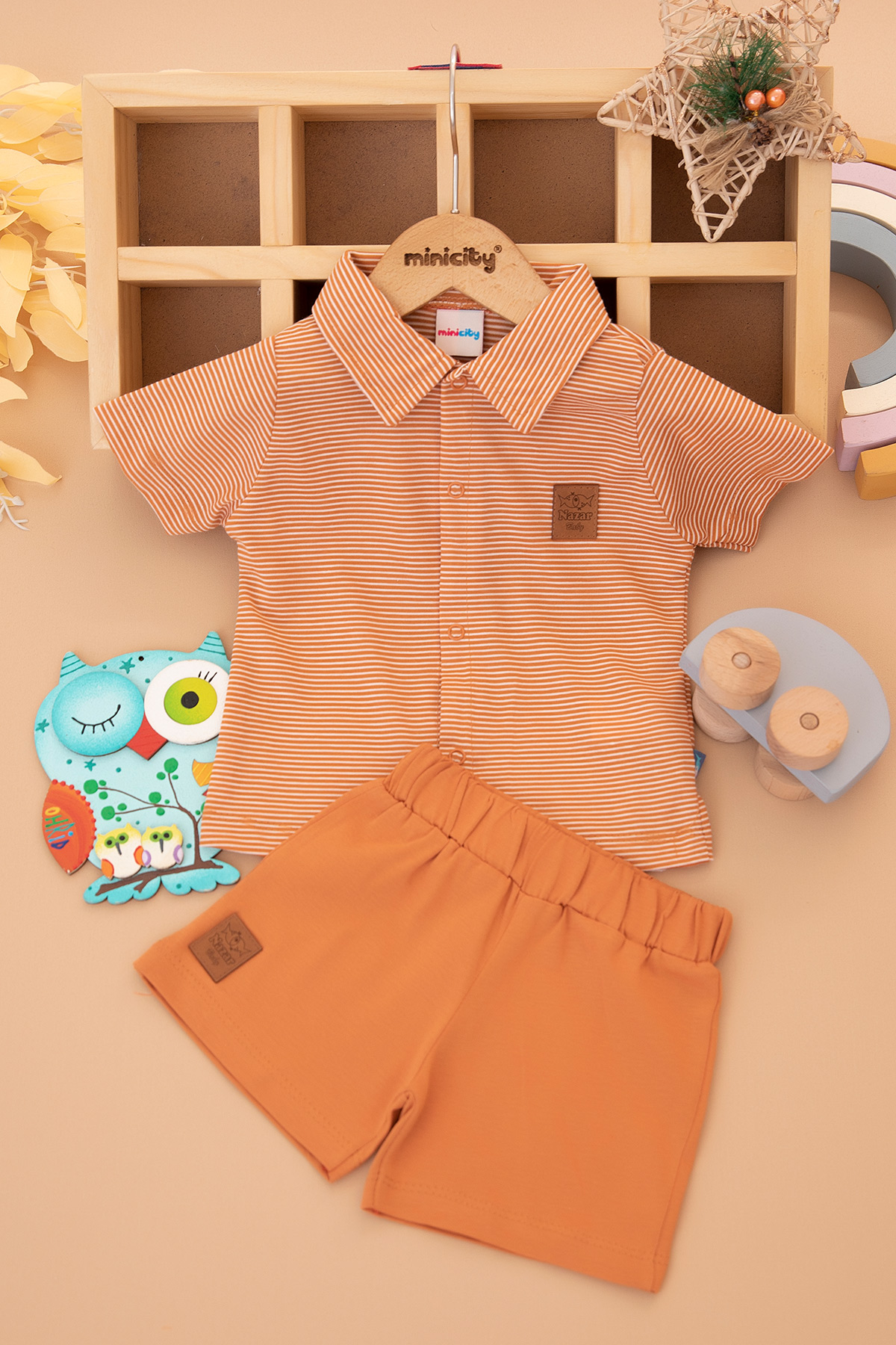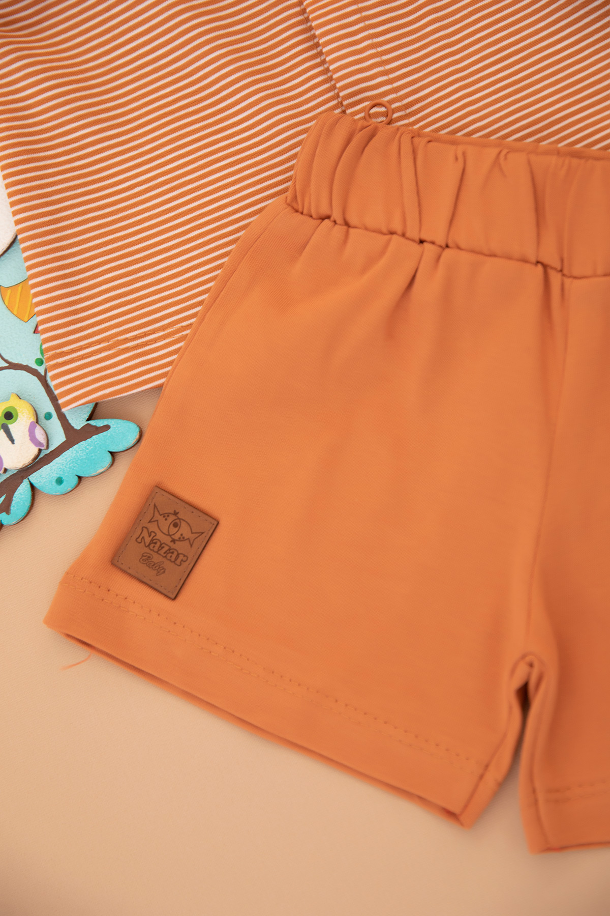 Erkek Bebek Çizgili Deri Armalı Şortlu Takım - 25450 (9-24 Ay)