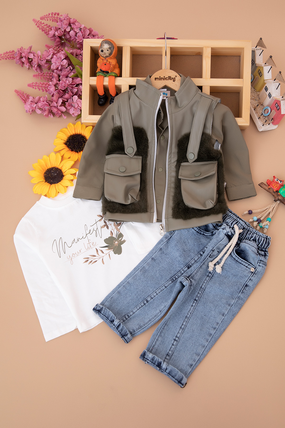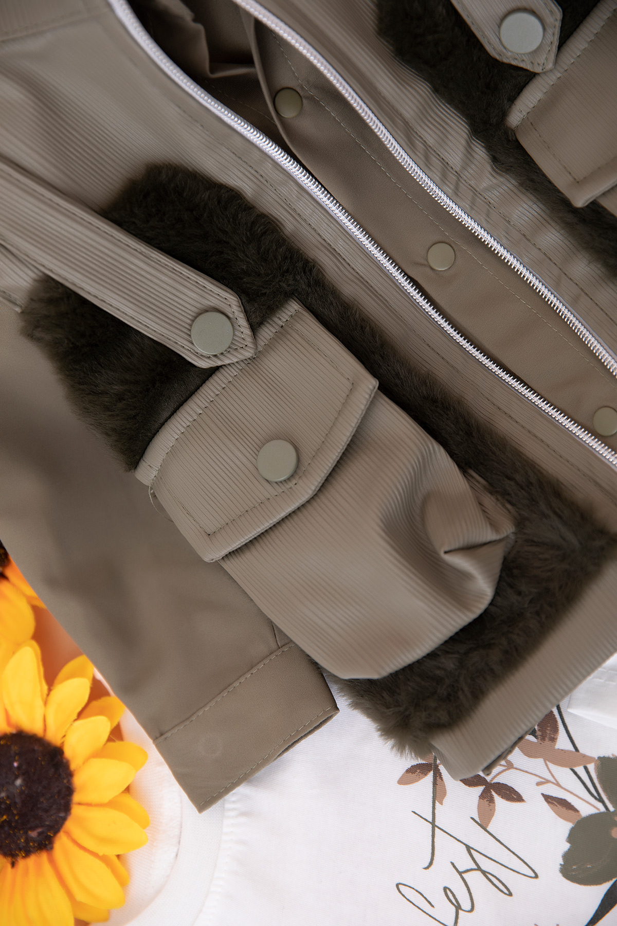 Kız Bebek Çizgili Deri Peluş Yelekli Takım - 50669 (6-24 Ay)