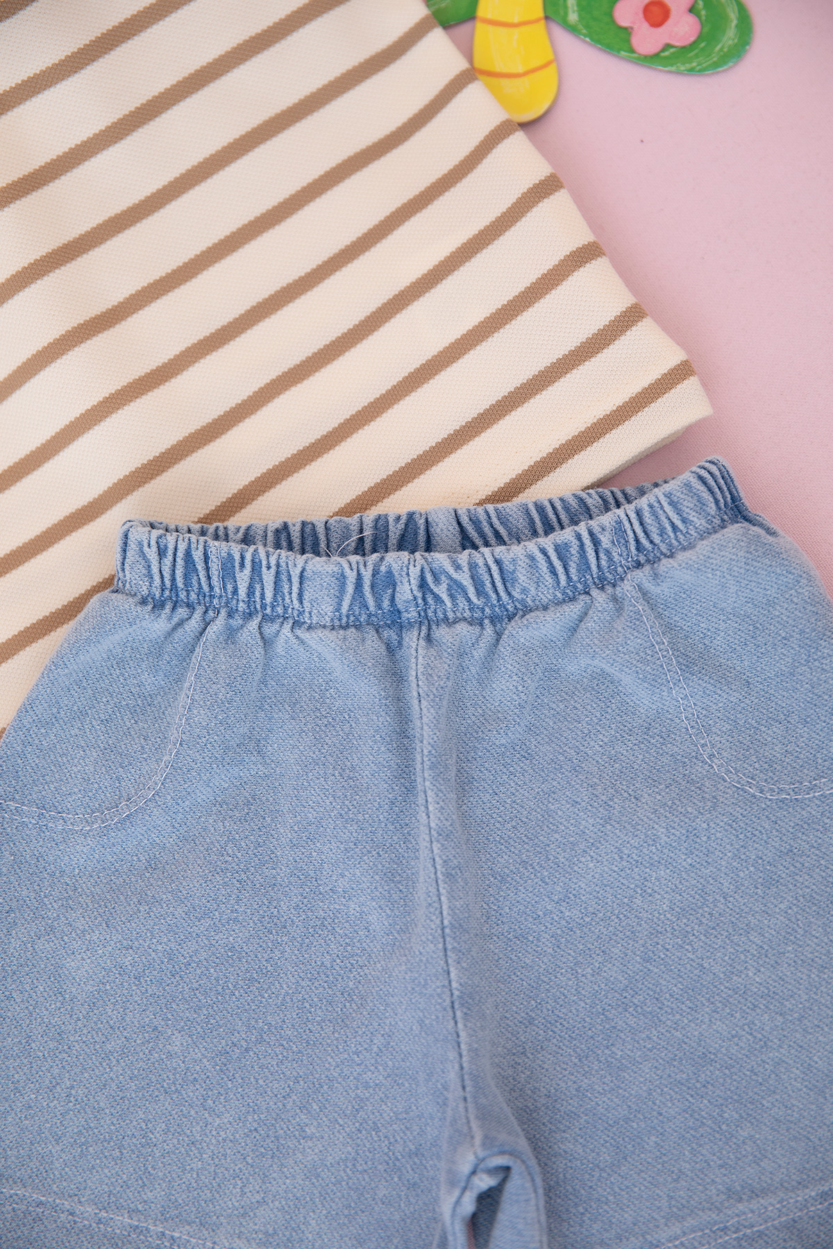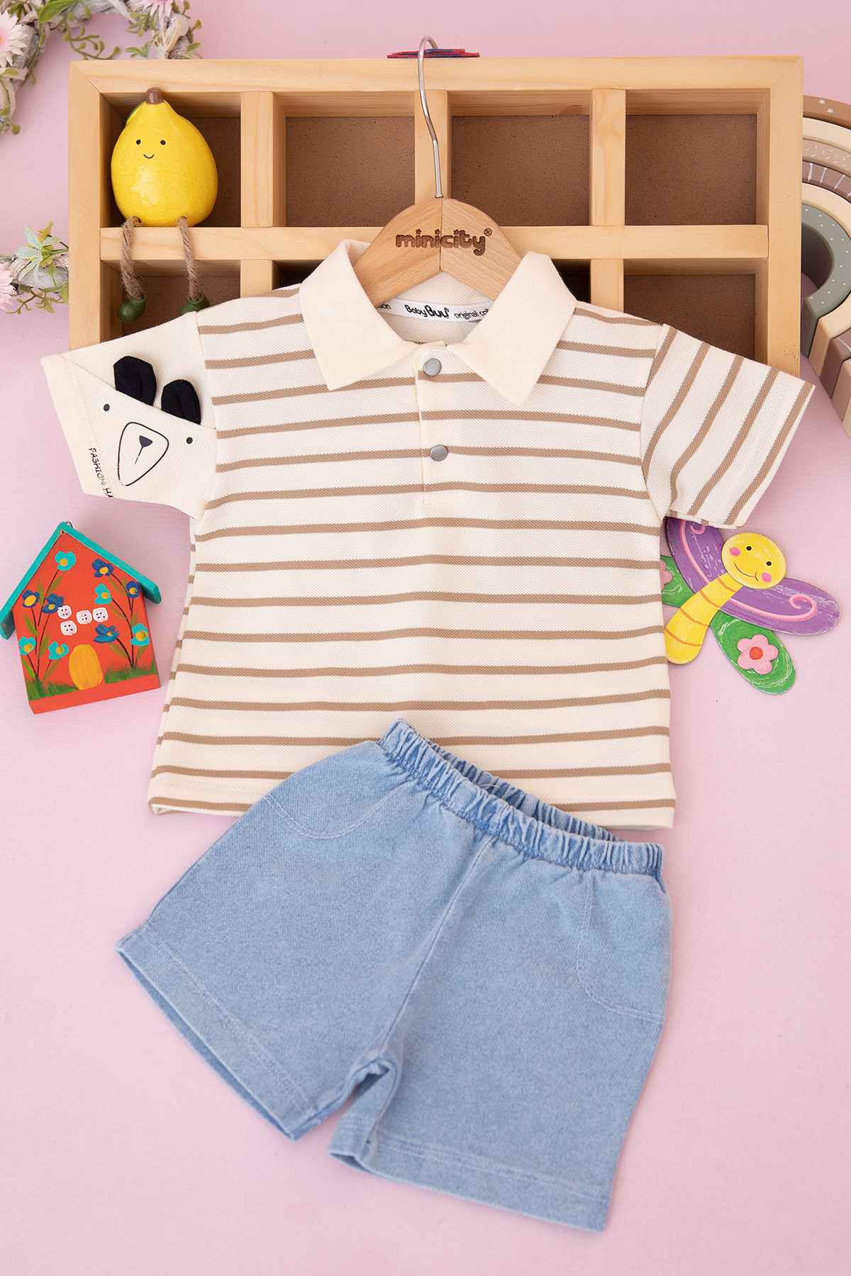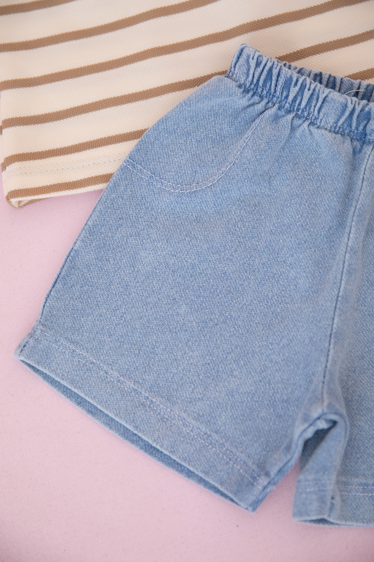 Erkek Bebek Çizgili Fashion Şortlu Takım - 0359 (9-24 Ay)