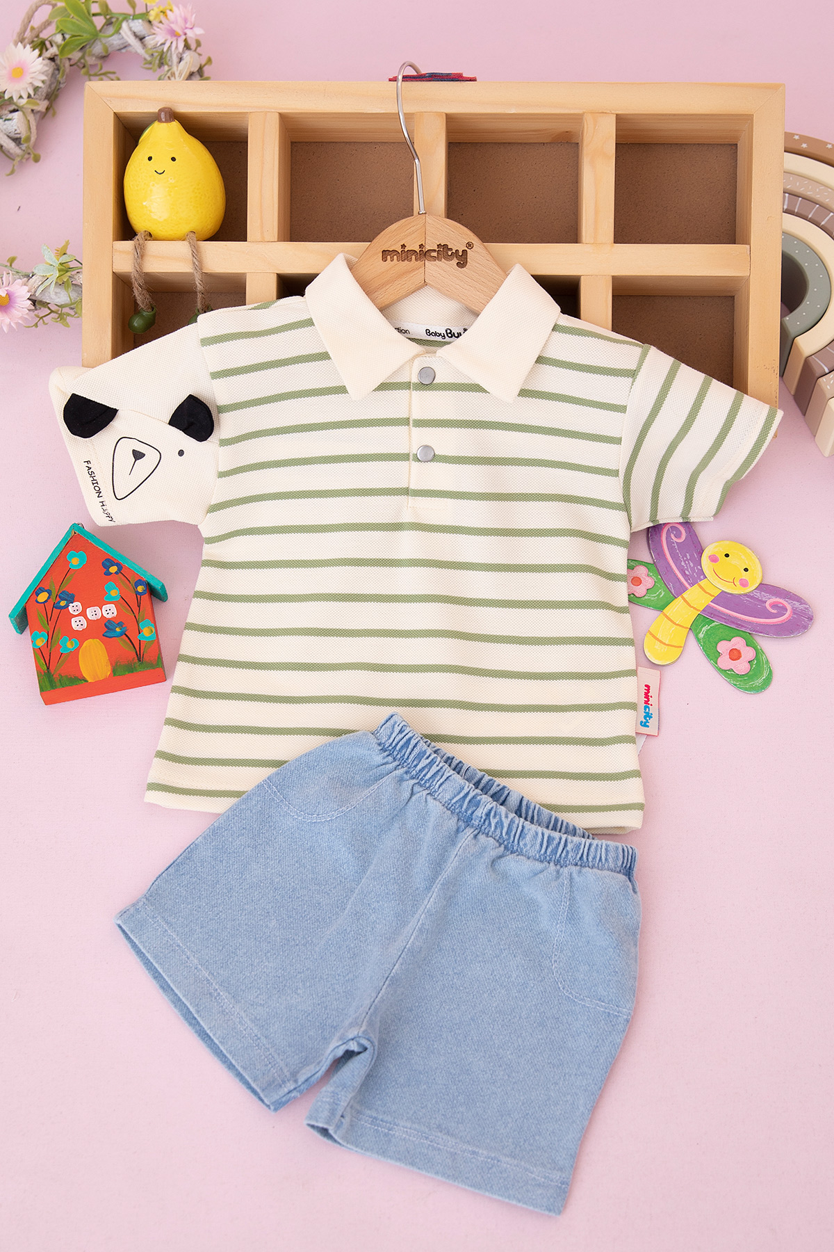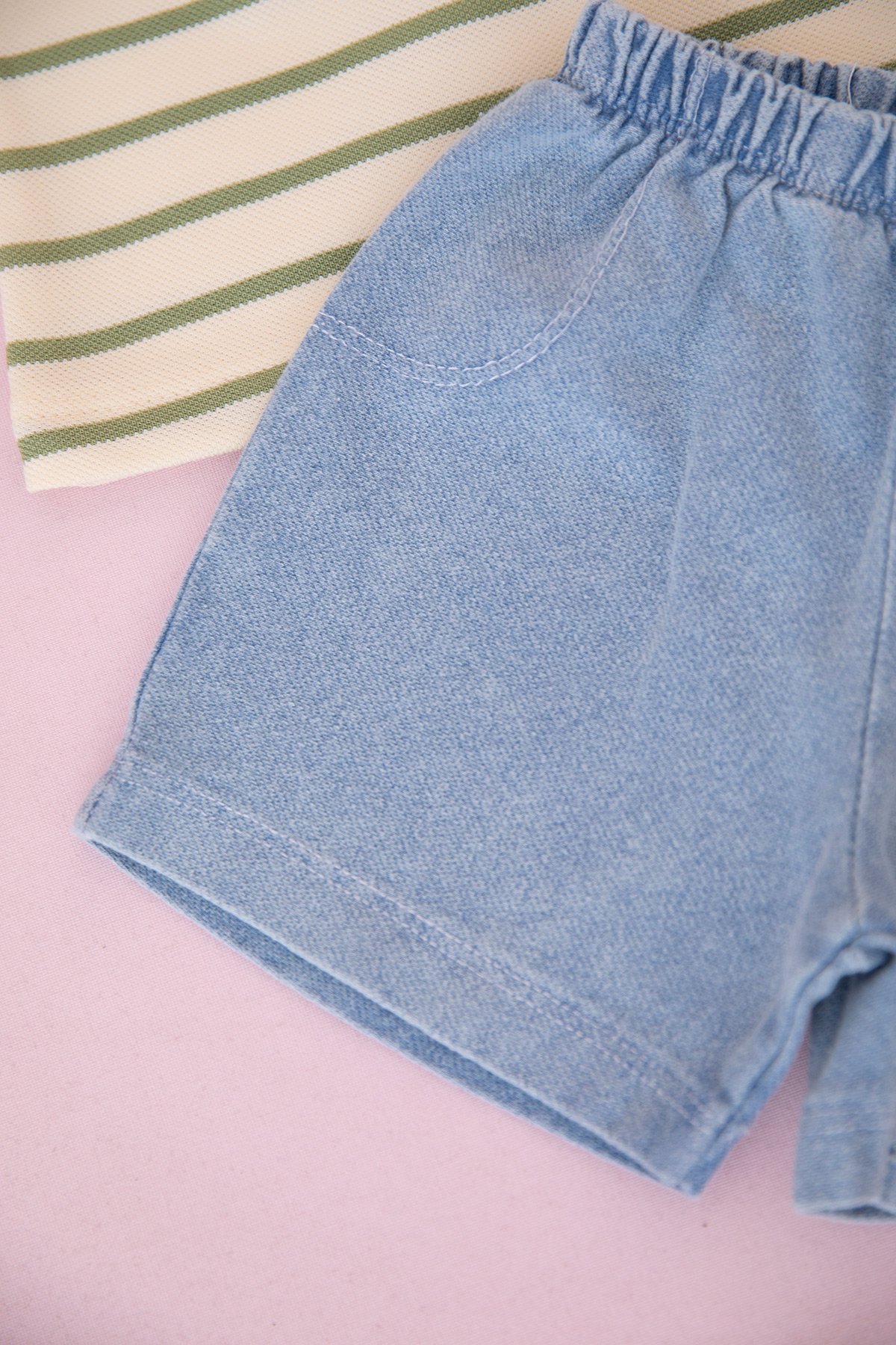 Erkek Bebek Çizgili Fashion Şortlu Takım - 0359 (9-24 Ay)