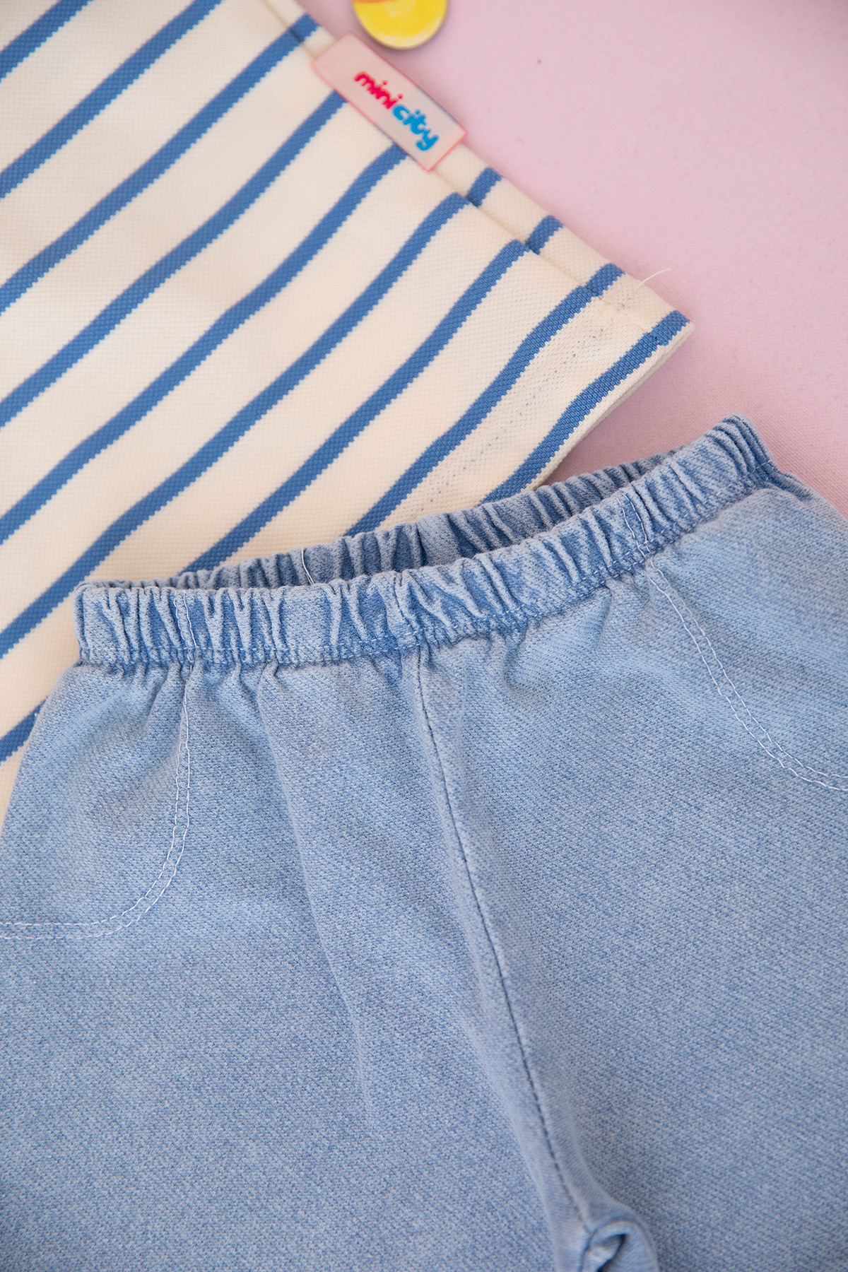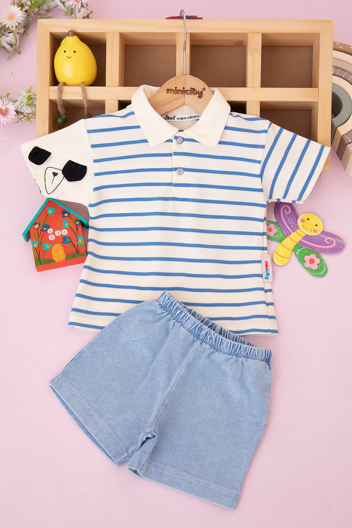 Erkek Bebek Çizgili Fashion Şortlu Takım - 0359 (9-24 Ay)