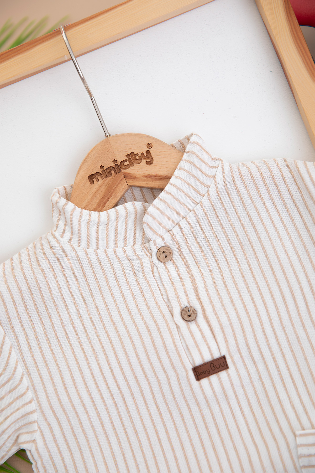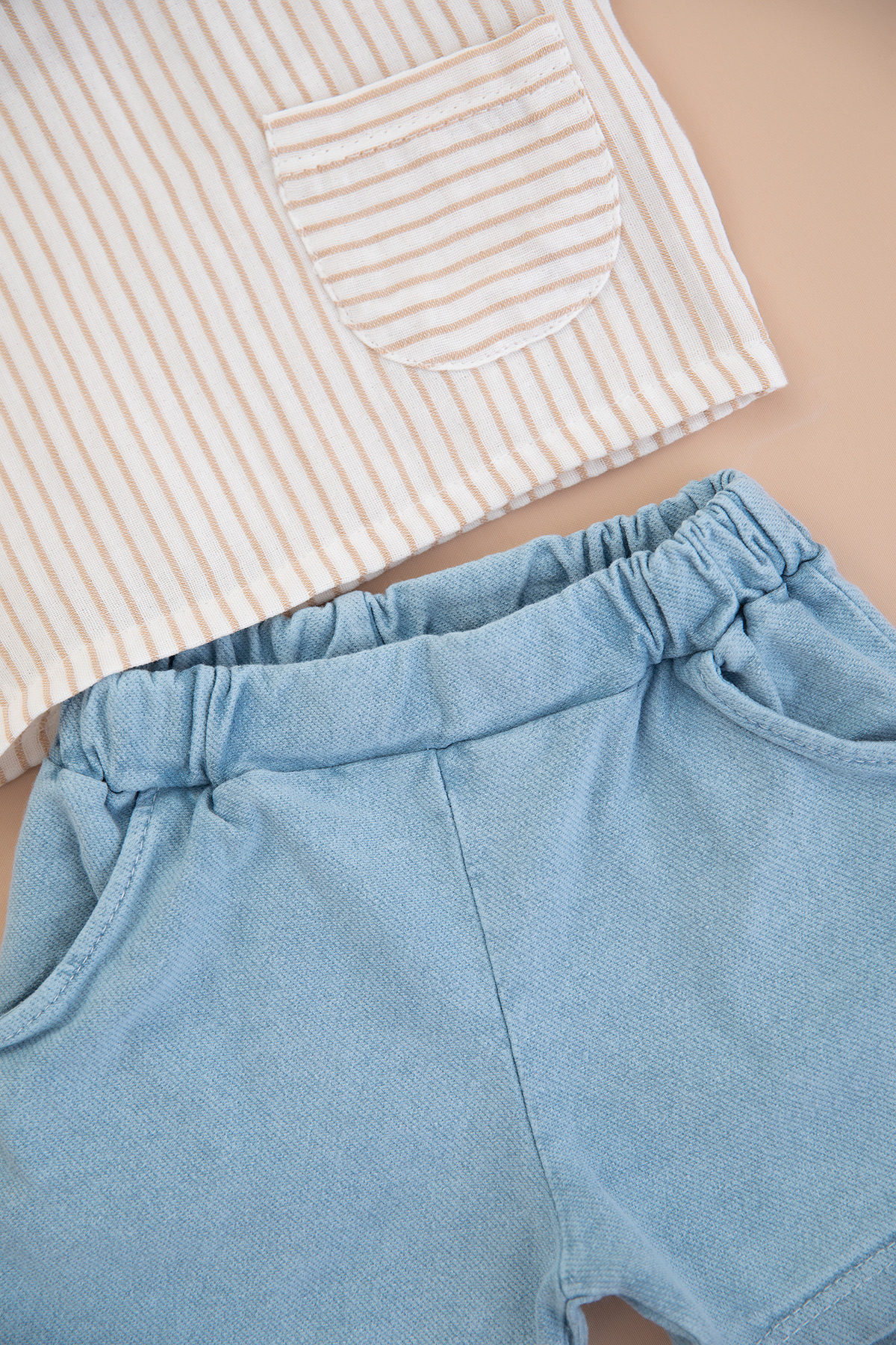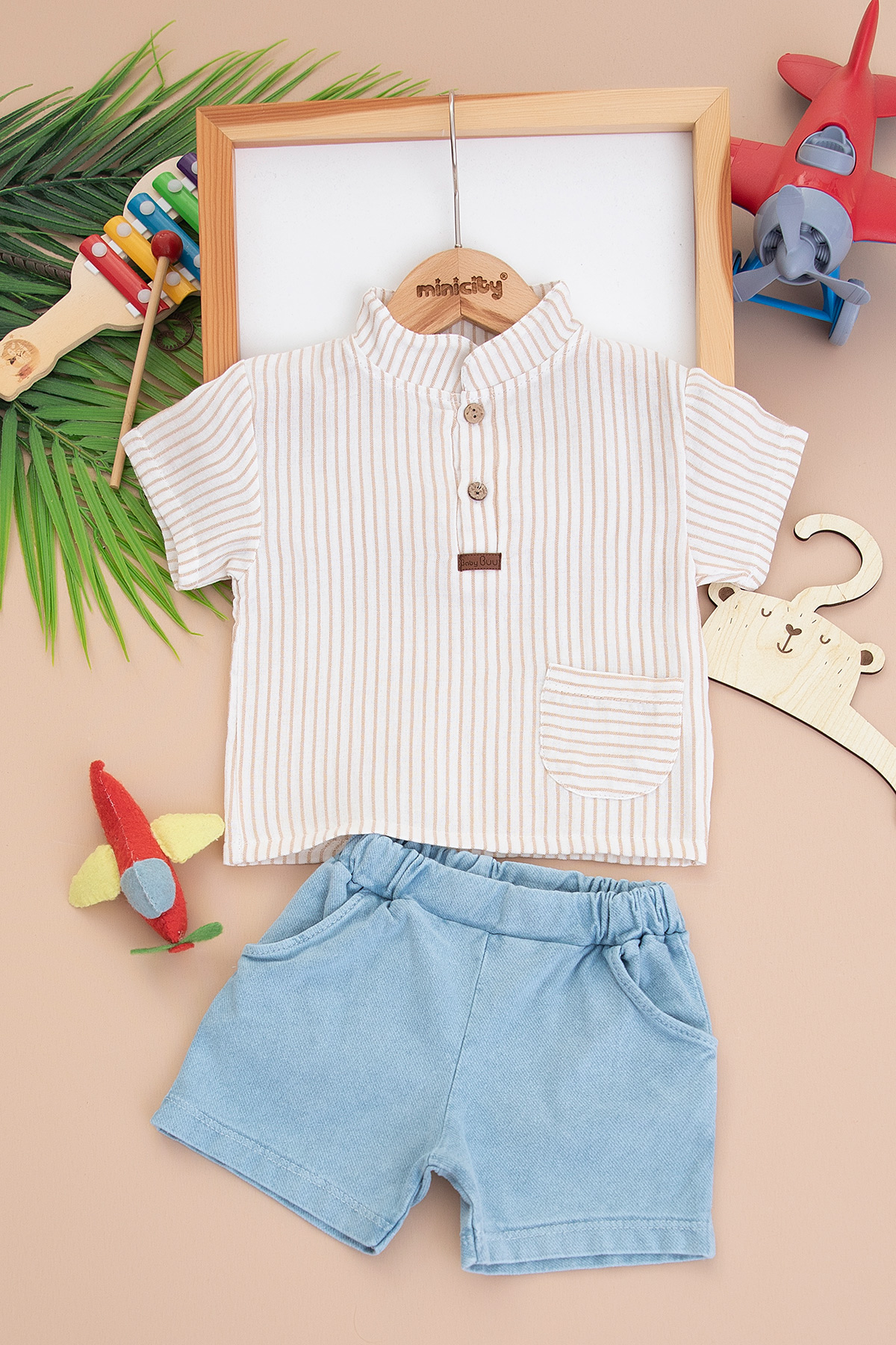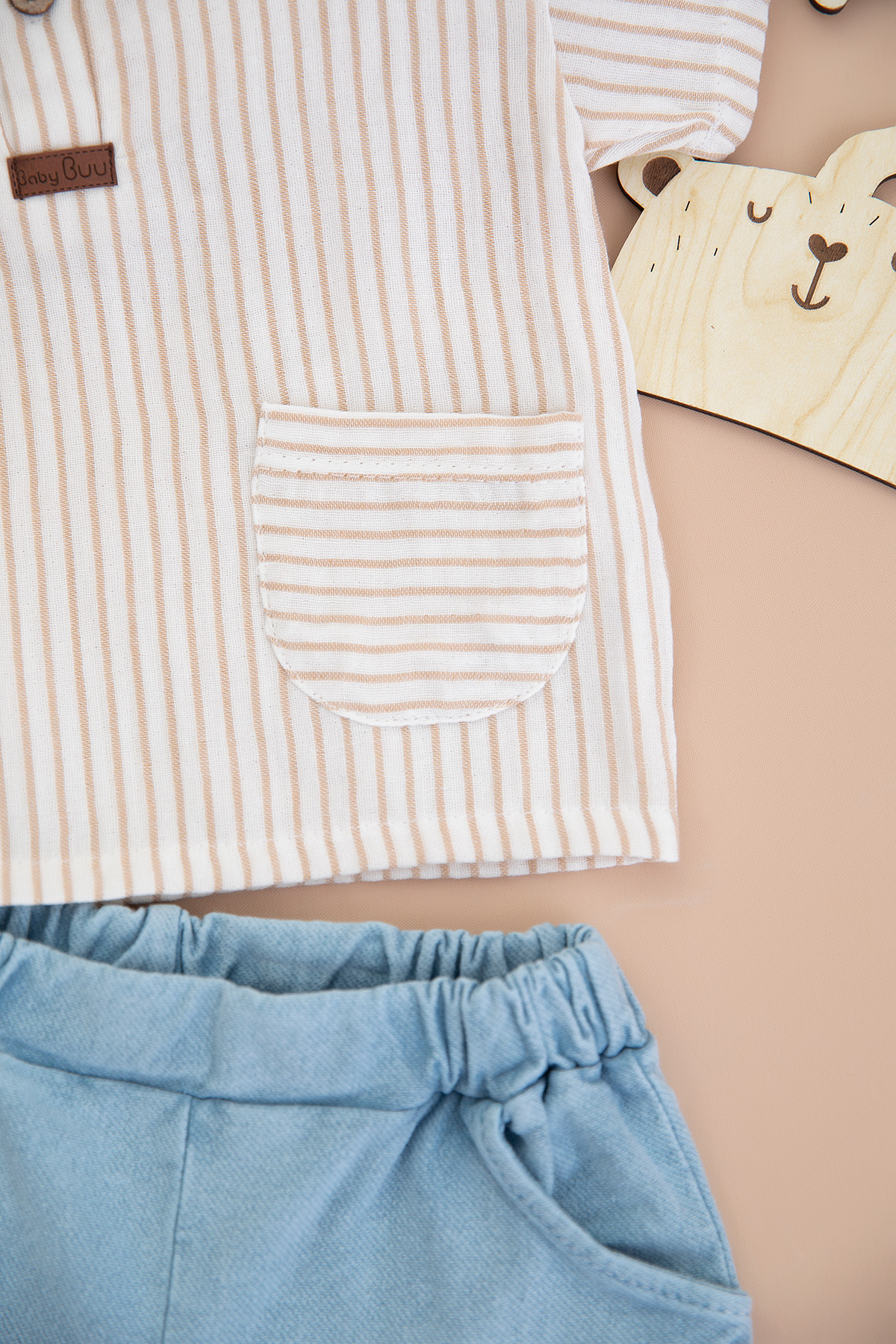 Erkek Bebek Çizgili Gömlek Kot Şort Takım - 0211 (6-18 Ay)