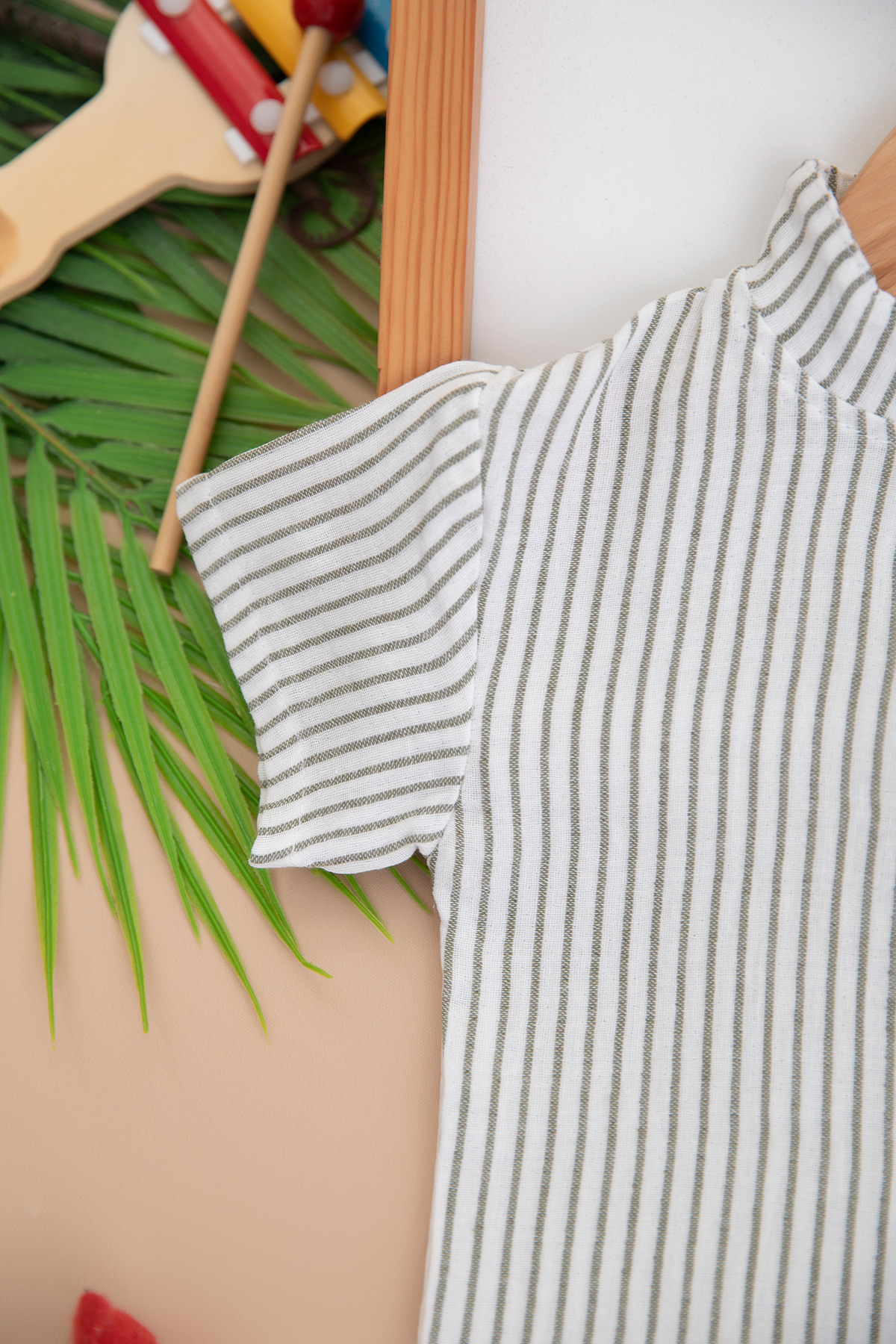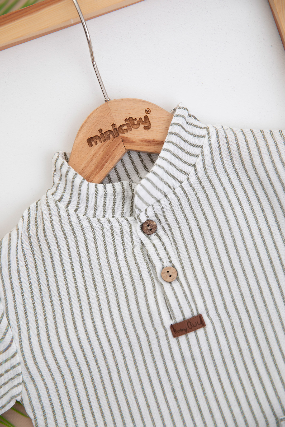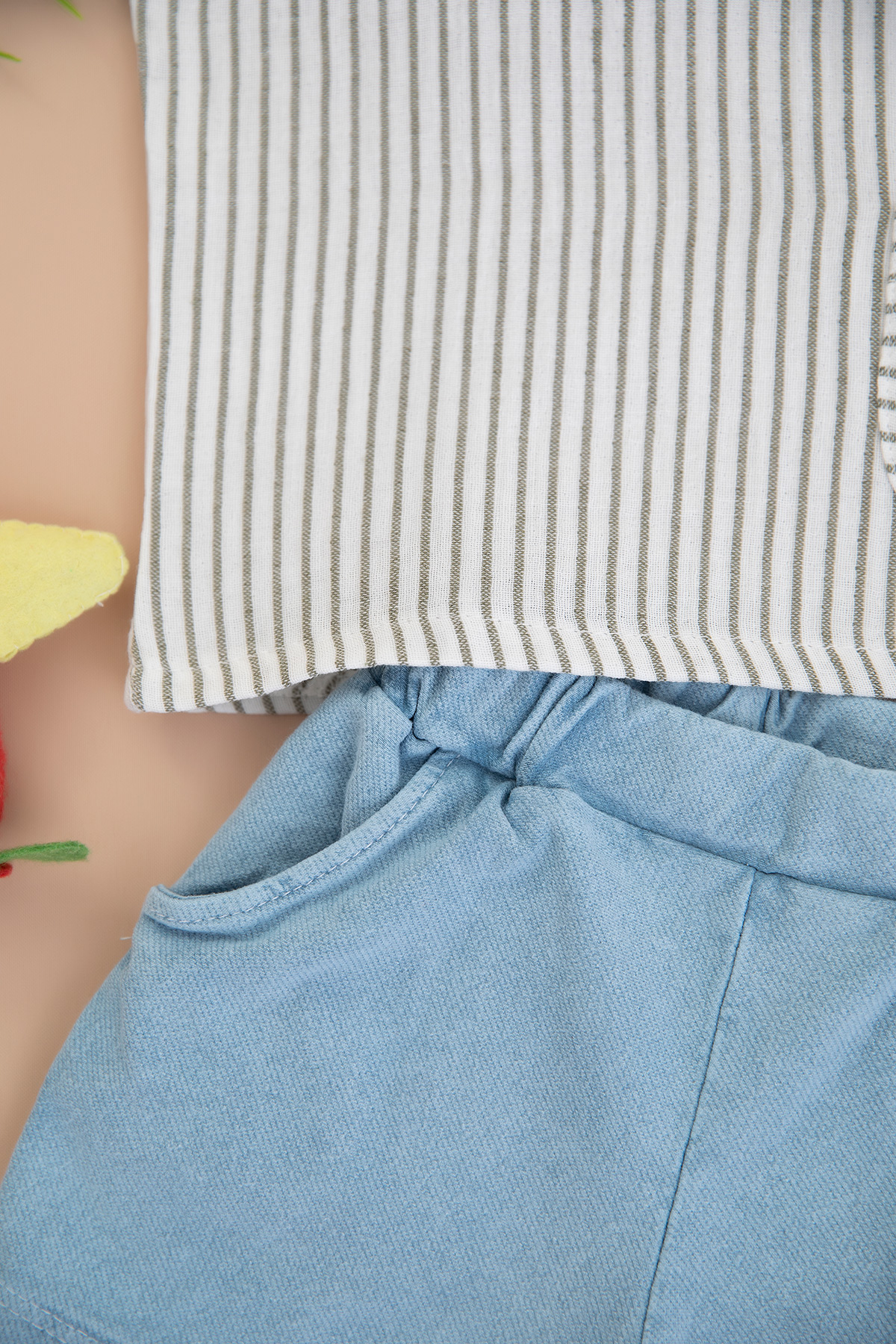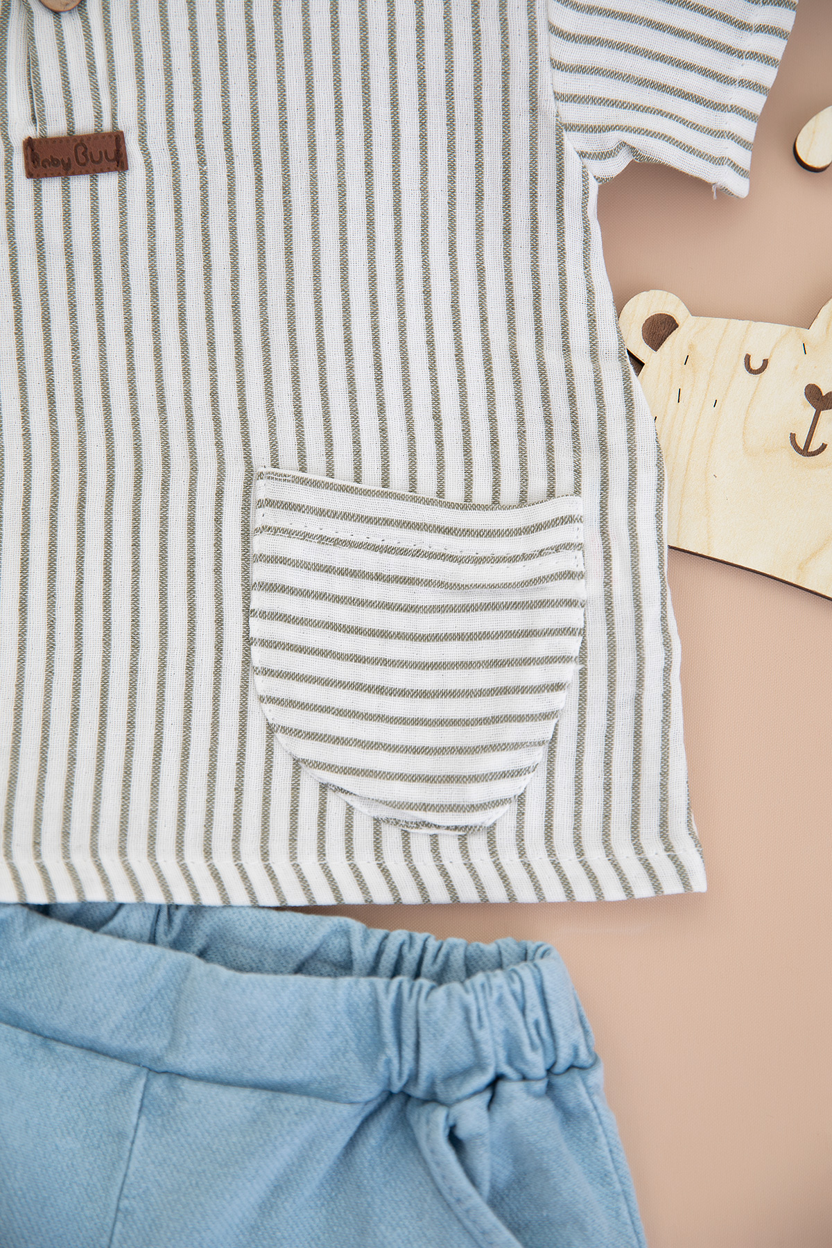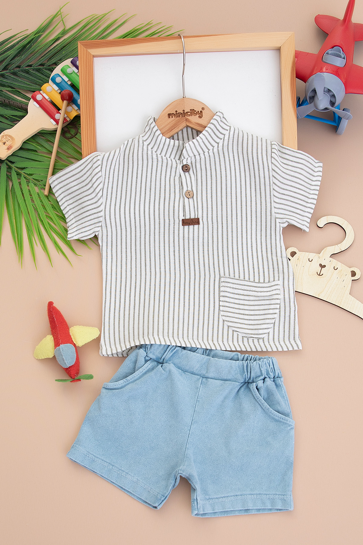 Erkek Bebek Çizgili Gömlek Kot Şort Takım - 0211 (6-18 Ay)