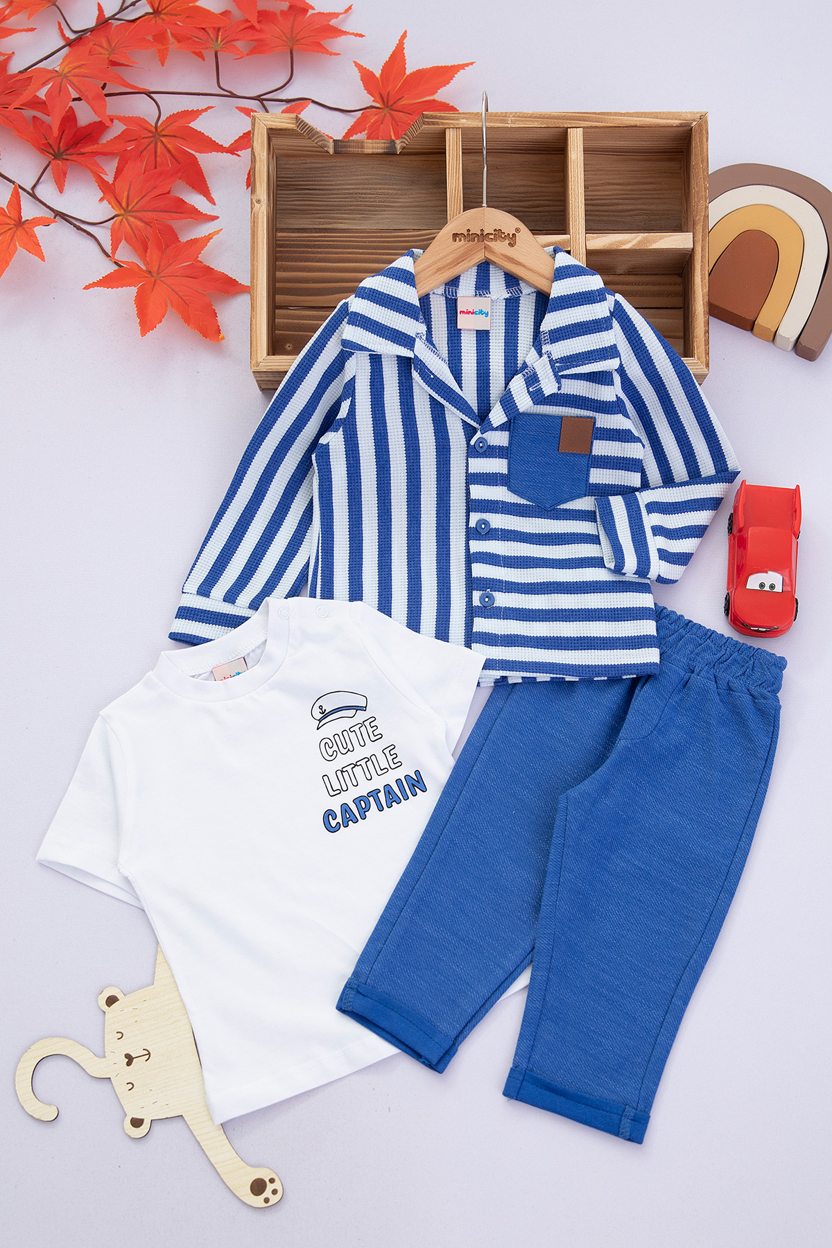 Erkek Bebek Çizgili Gömlek Petek Üçlü Takım - 25098 (9-24 Ay)