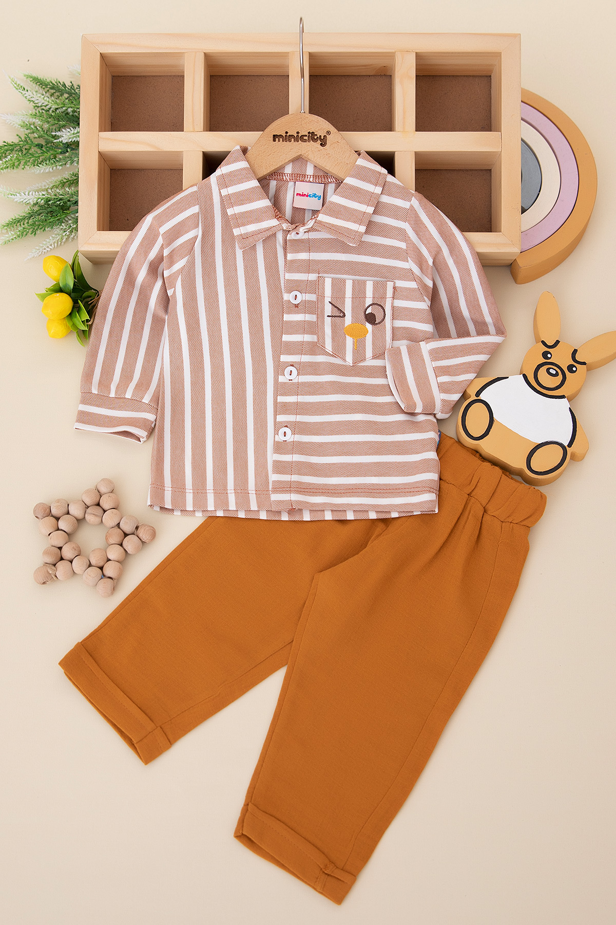 Erkek Bebek Çizgili Gömlek Takım - 24124 (9-24 Ay)