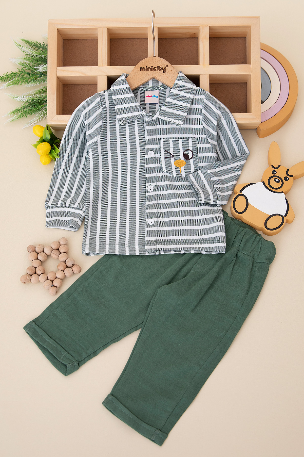 Erkek Bebek Çizgili Gömlek Takım - 24124 (9-24 Ay)