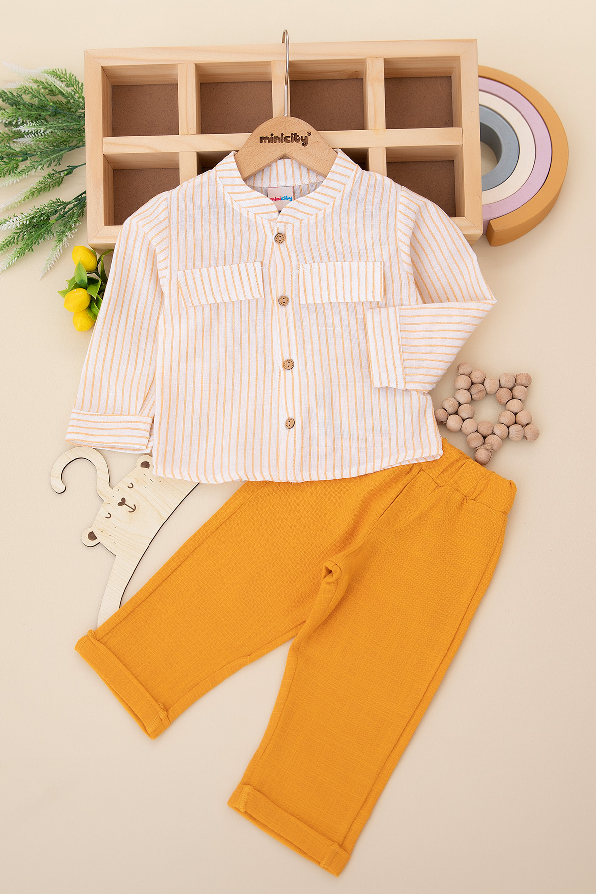 Erkek Bebek Çizgili Gömlekli Takım - 24148 (9-24 Ay)