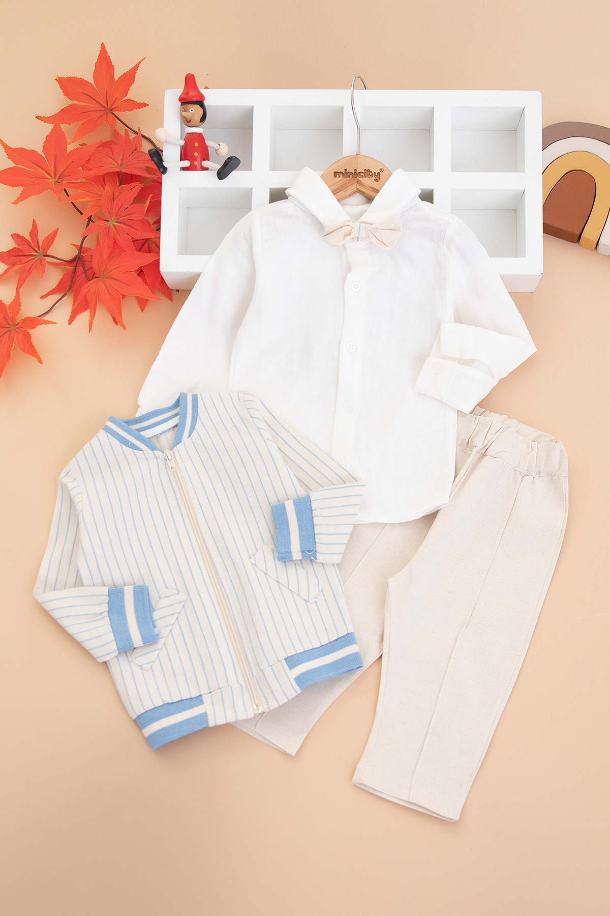 Erkek Bebek Çizgili Keten Üçlü Takım - 0951 (6-36 Ay)