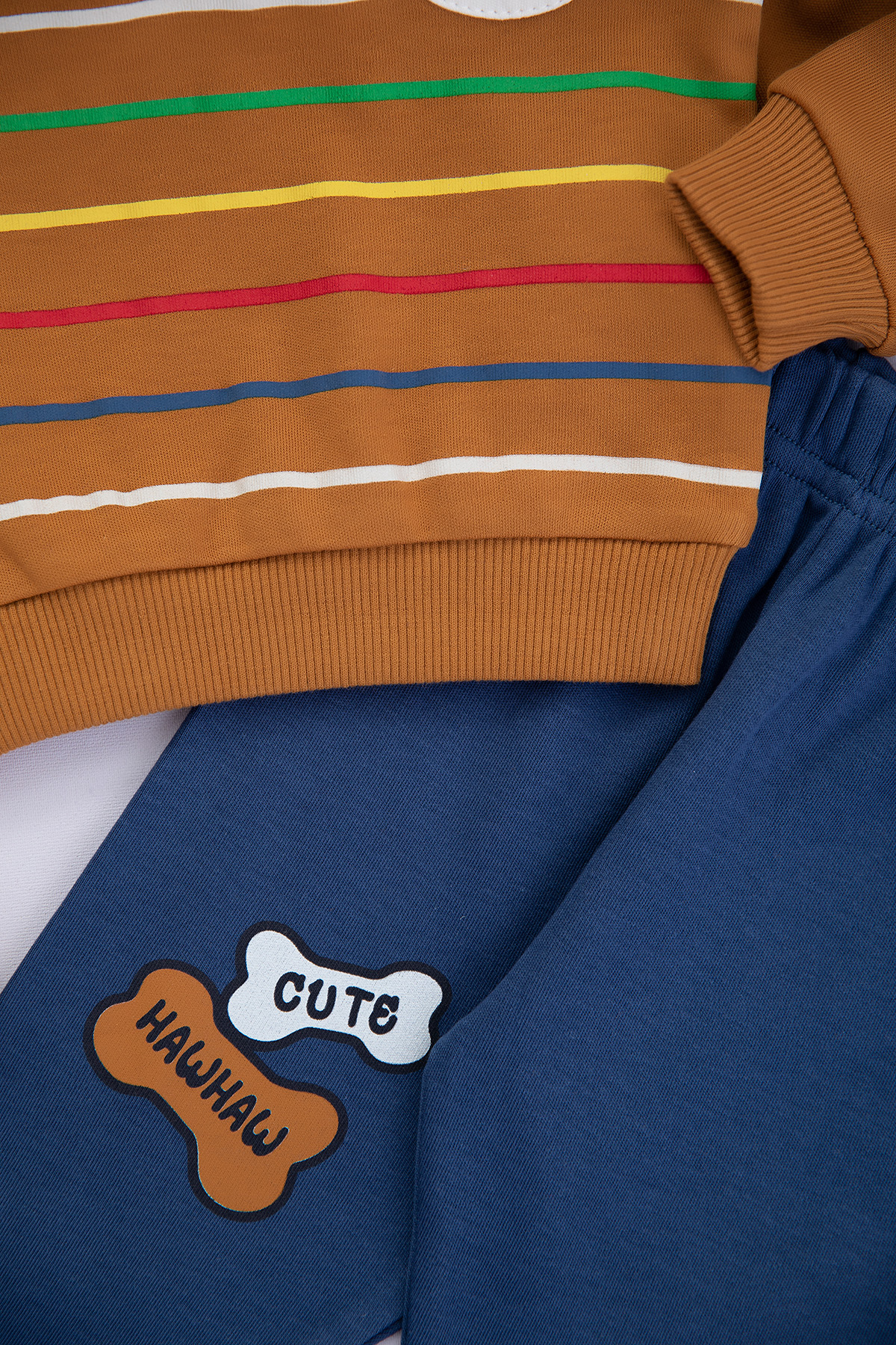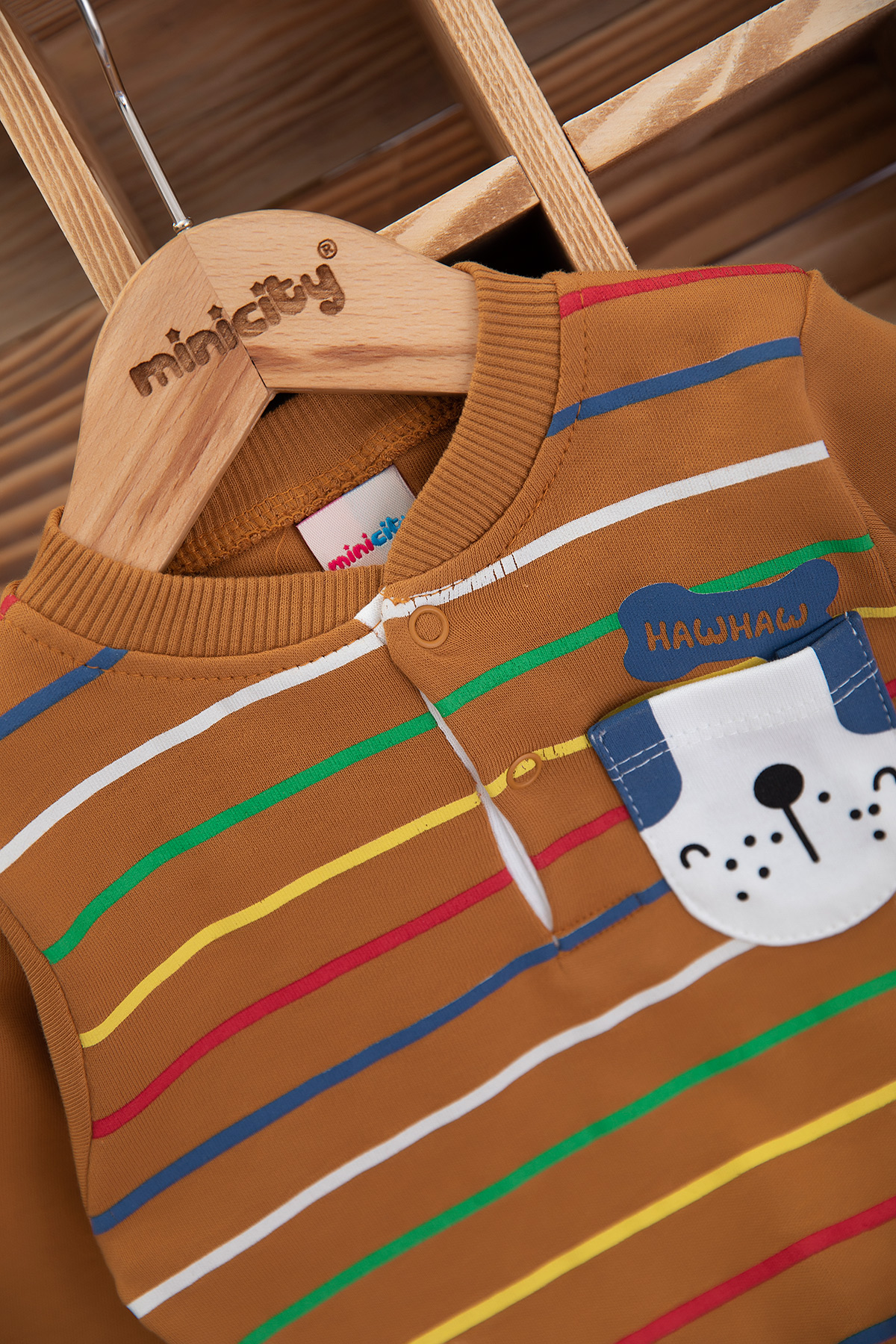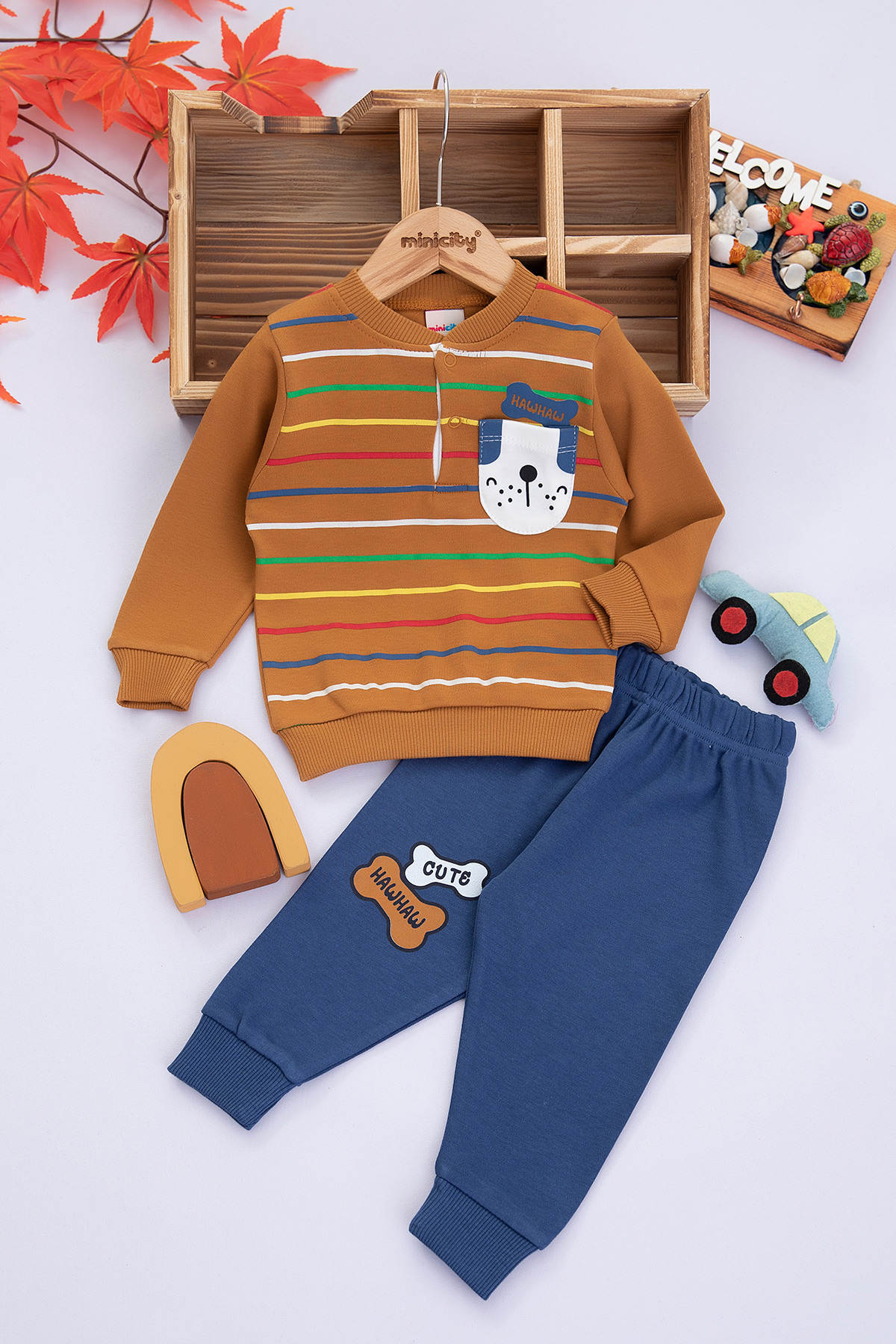 Erkek Bebek Çizgili Köpek Baskılı Takım - 25094 (9-24 Ay)