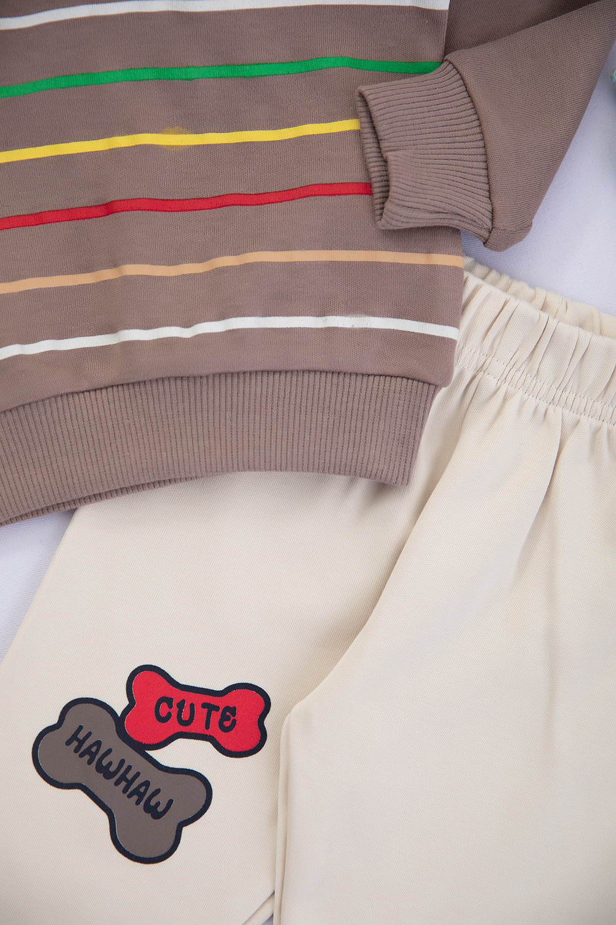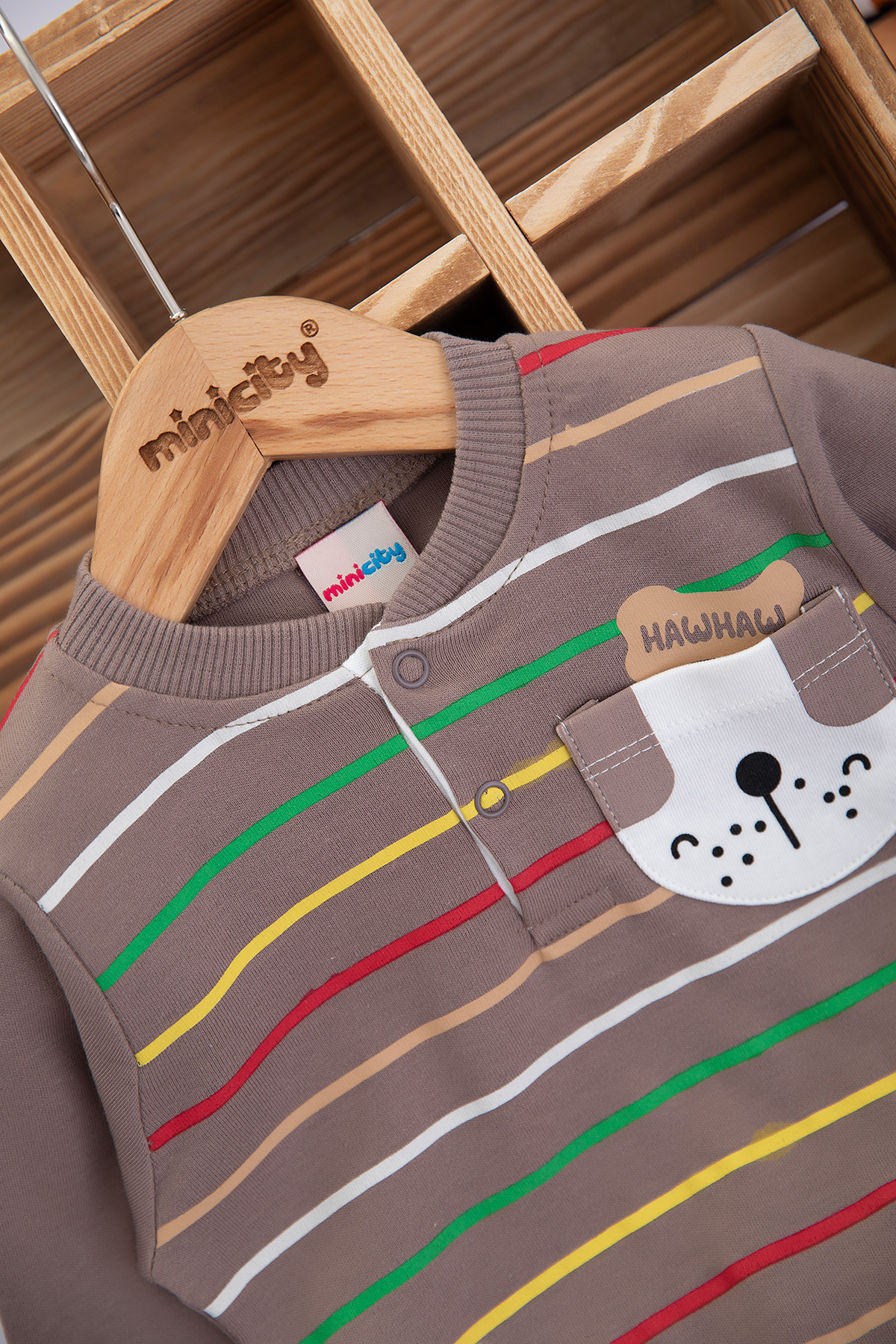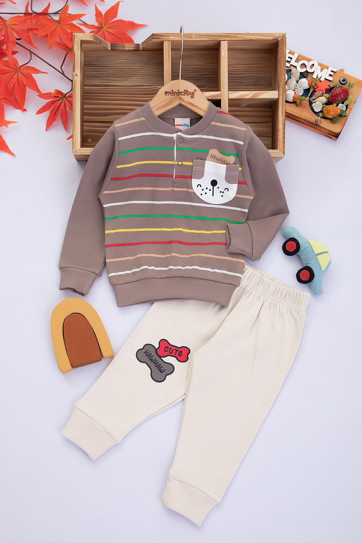 Erkek Bebek Çizgili Köpek Baskılı Takım - 25094 (9-24 Ay)