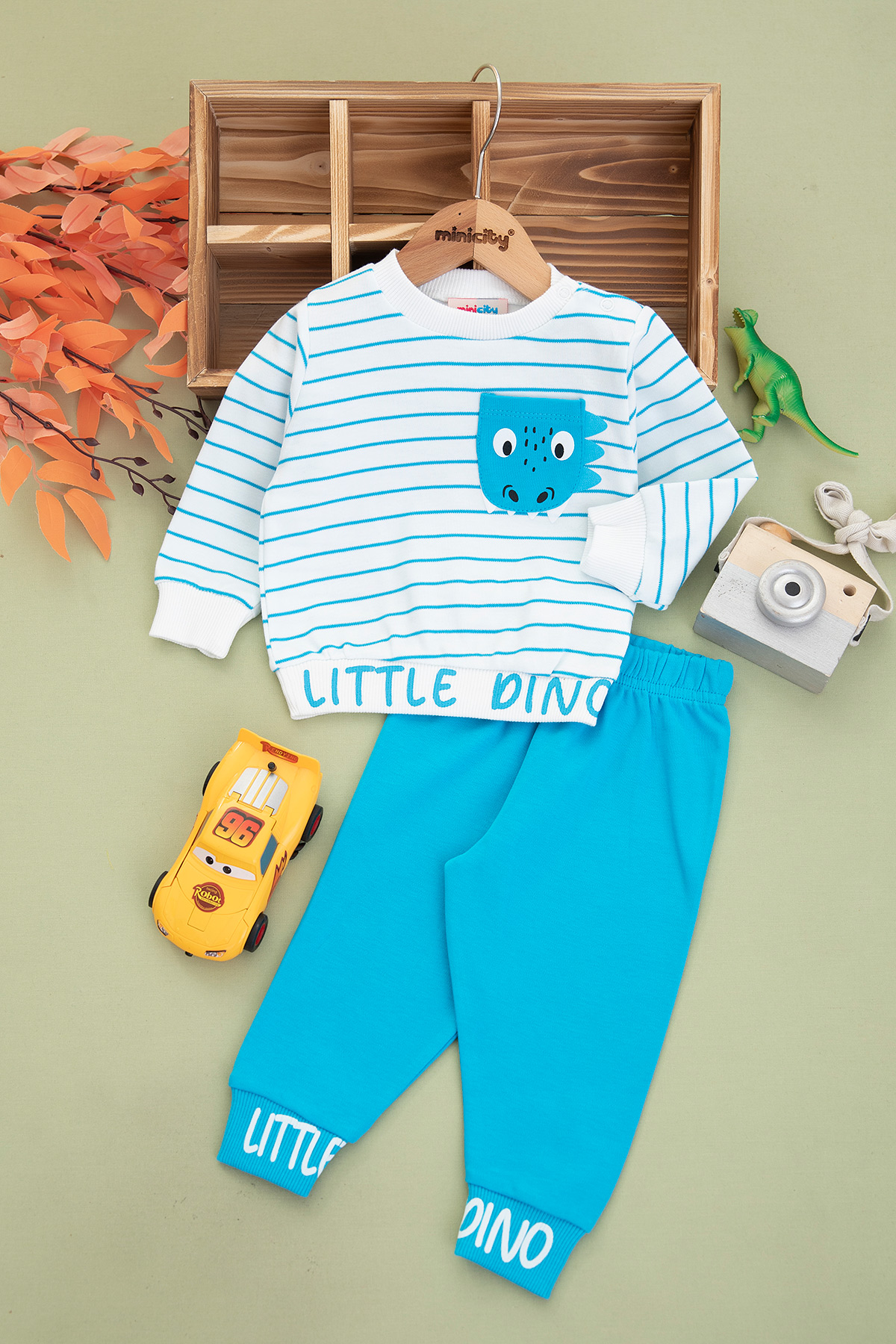 Erkek Bebek Çizgili Little Dino Takım - 24496 (9-24 Ay)