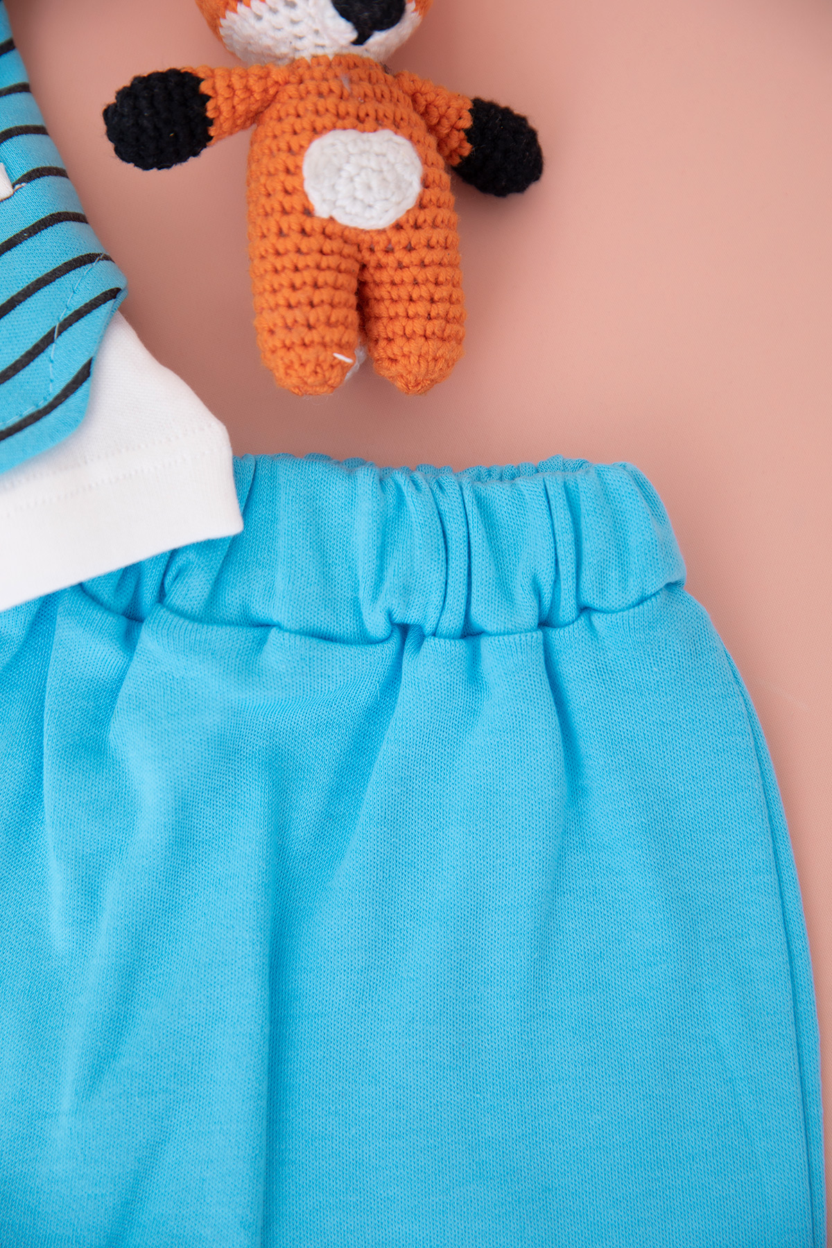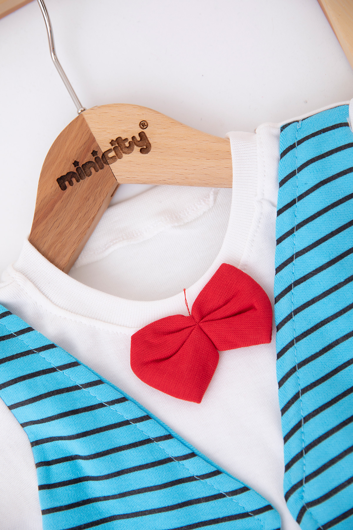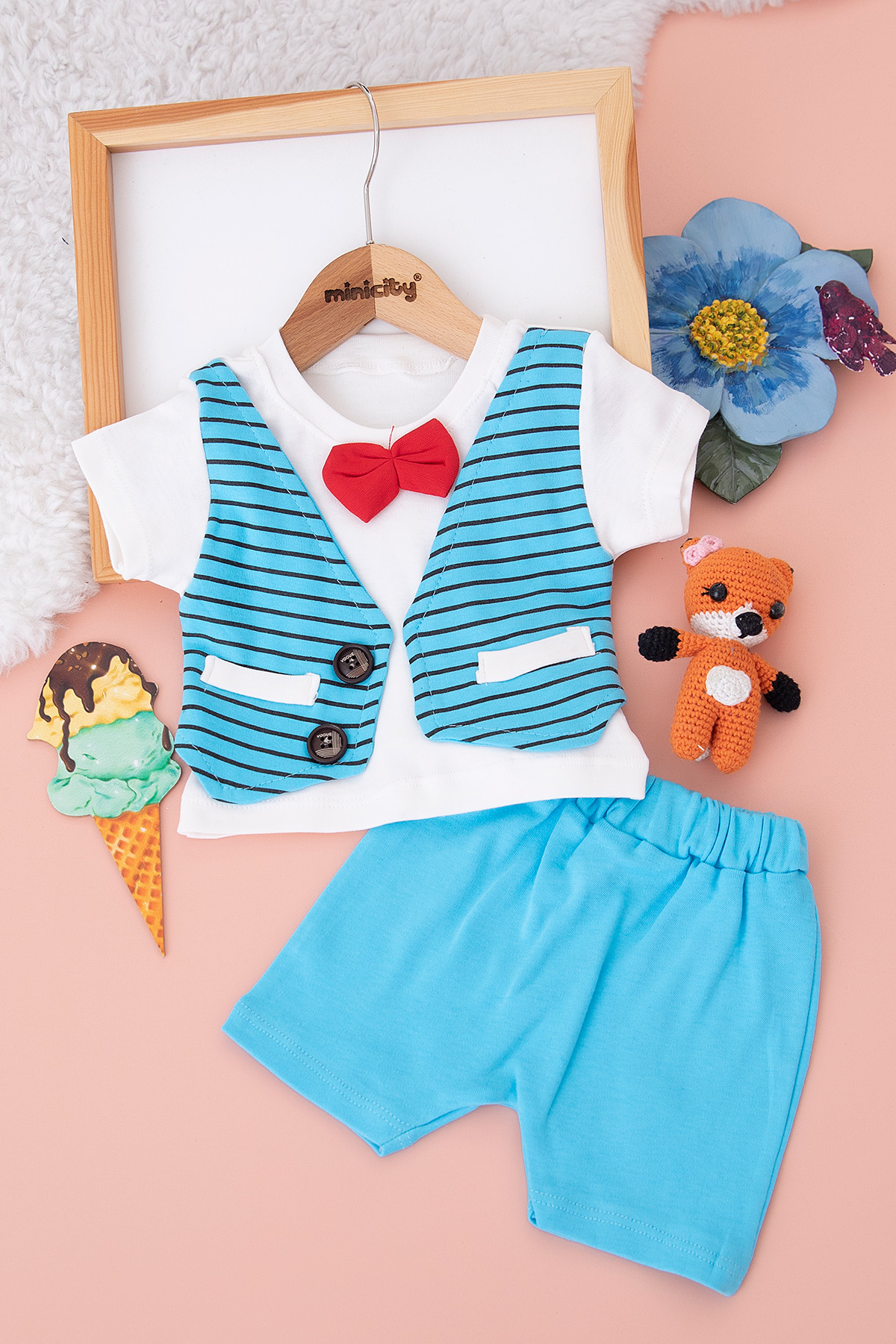 Erkek Bebek Çizgili Papyonlu Şortlu Takım - 3037 (3-18 Ay)