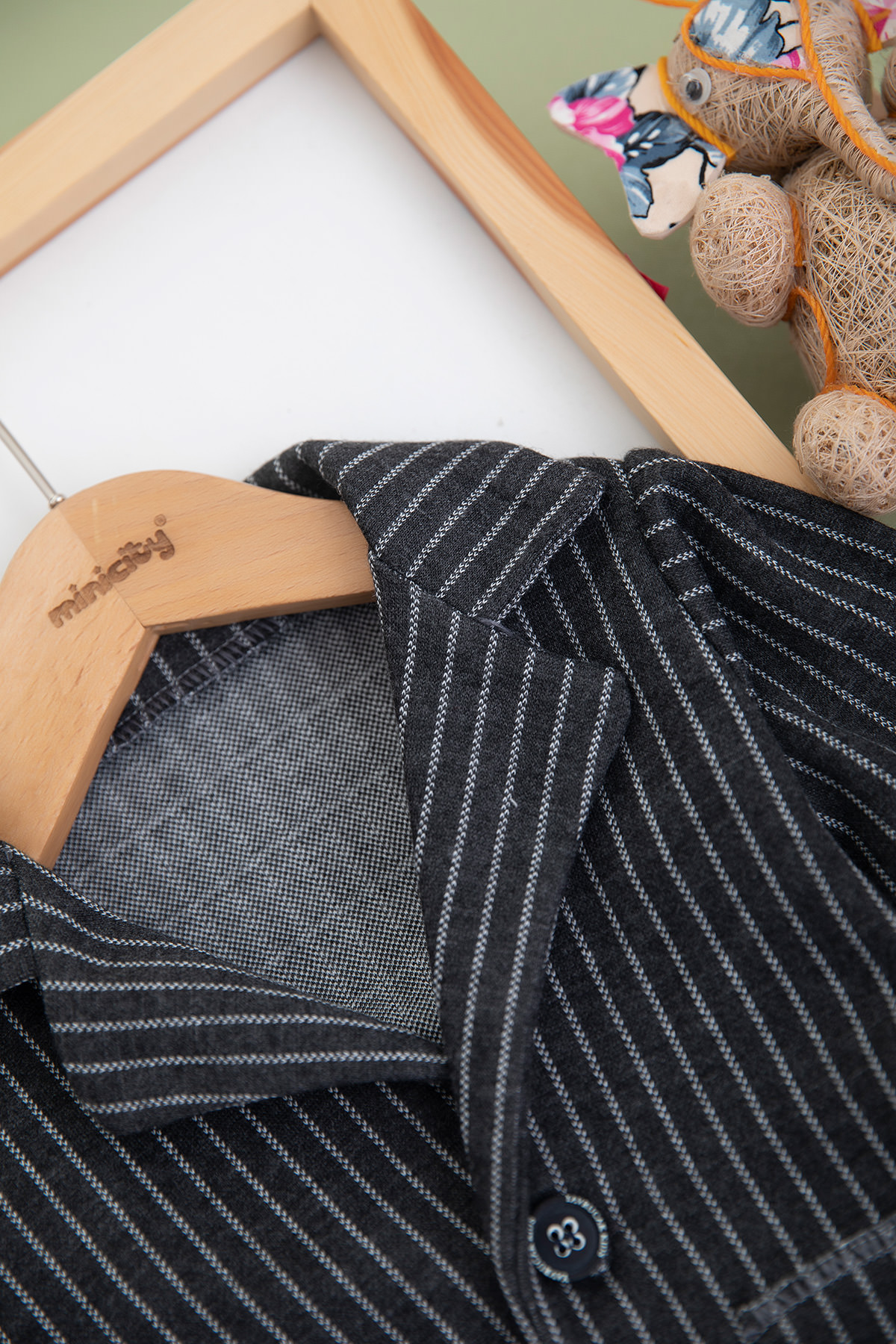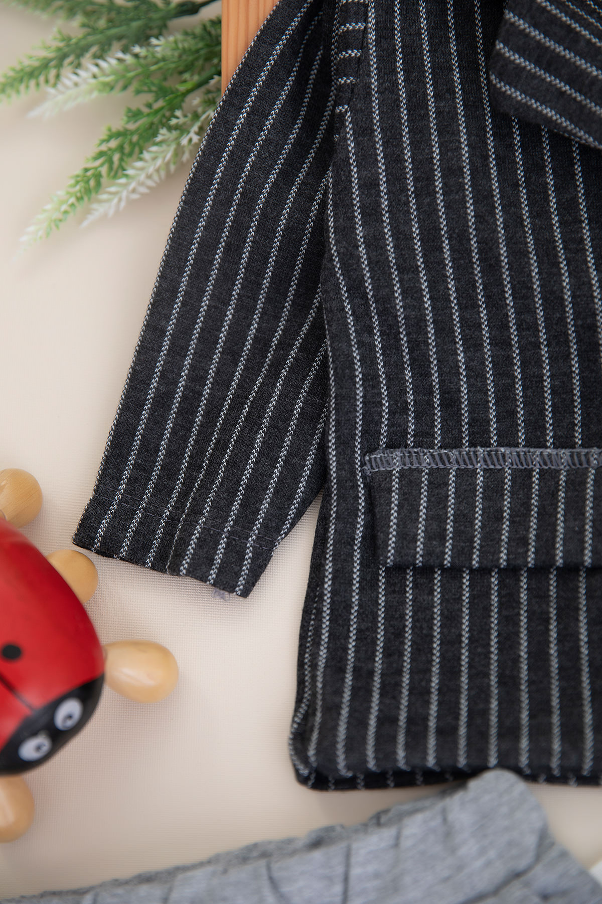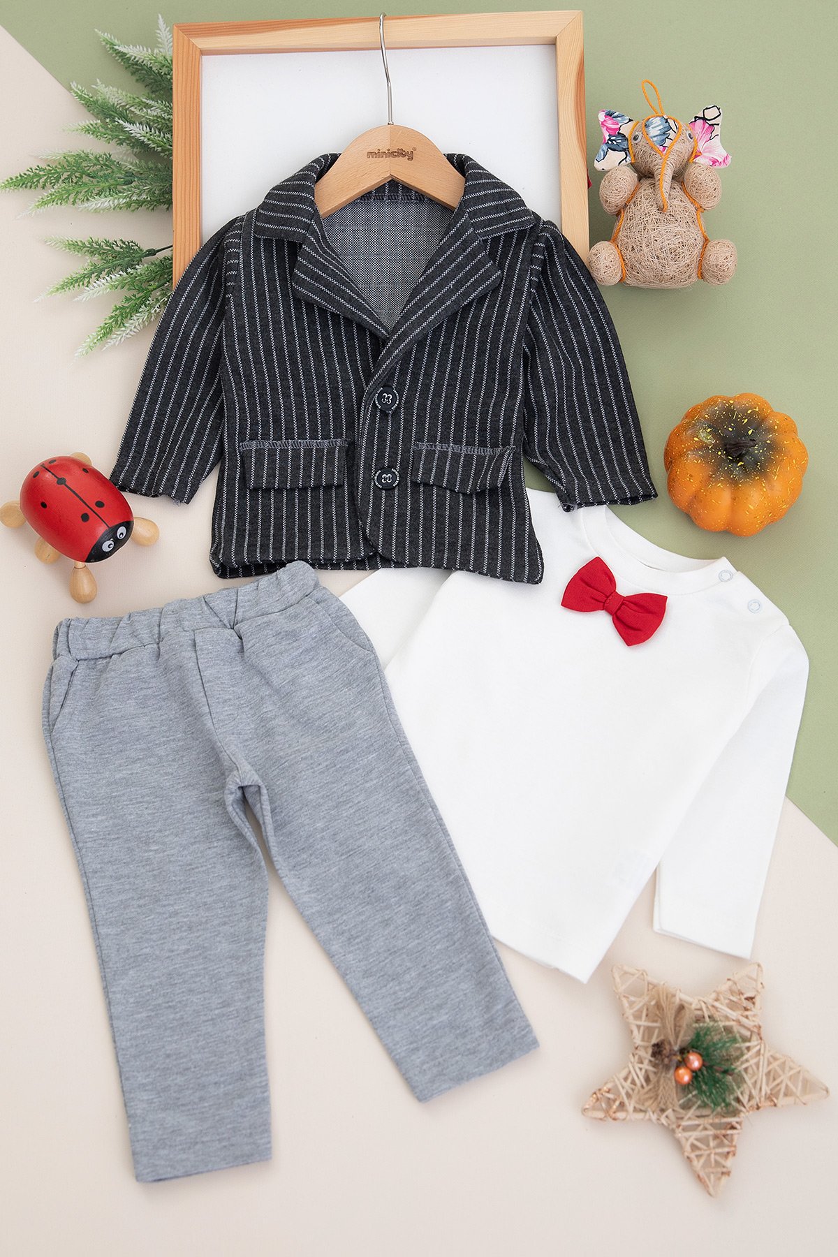 Erkek Bebek Çizgili Papyonlu Takım - 9329 (6-18 Ay)