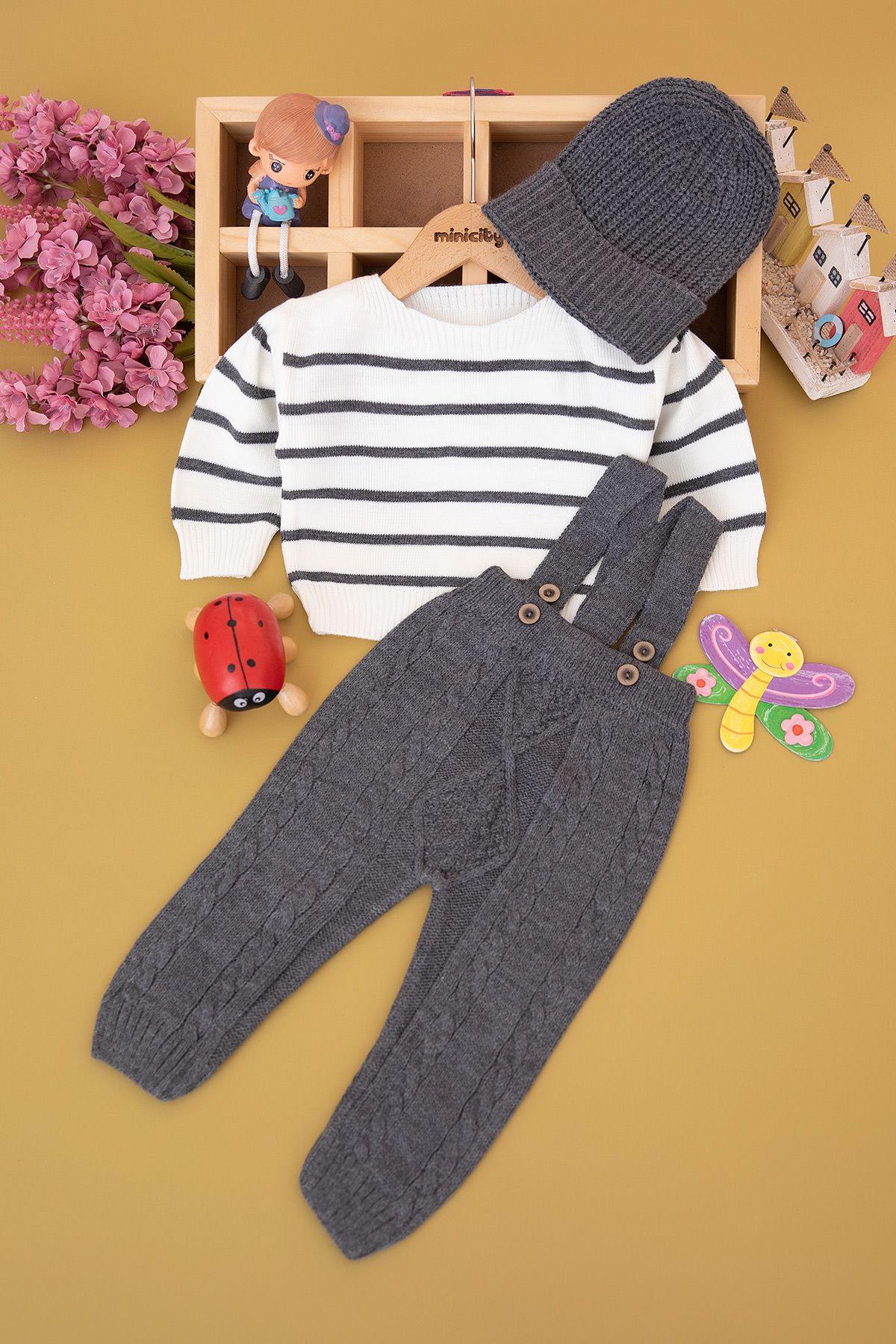 Erkek Bebek Çizgili Salopetli Takım - 6452 (3-24 Ay)