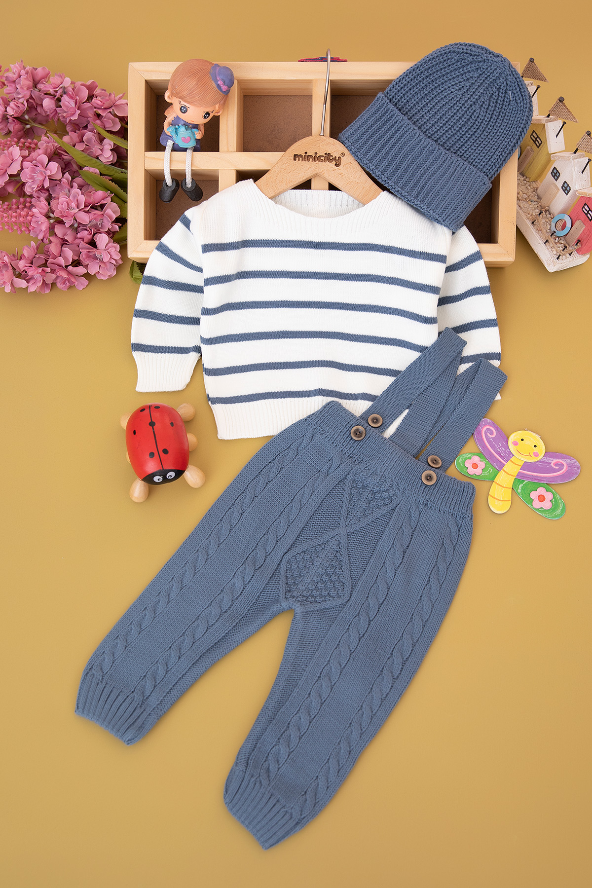 Erkek Bebek Çizgili Salopetli Takım - 6452 (3-24 Ay)