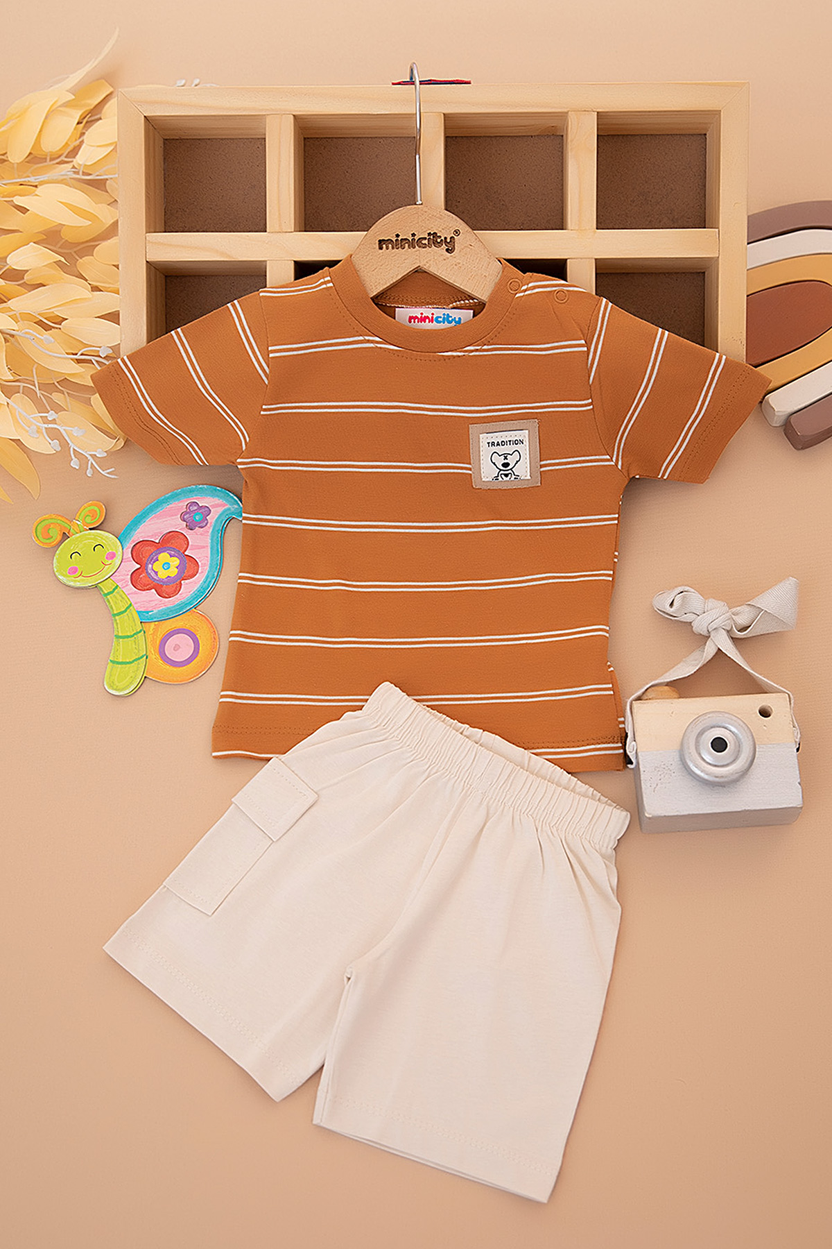 Erkek Bebek Çizgili Şortlu Takım - 25371 (9-24 Ay)