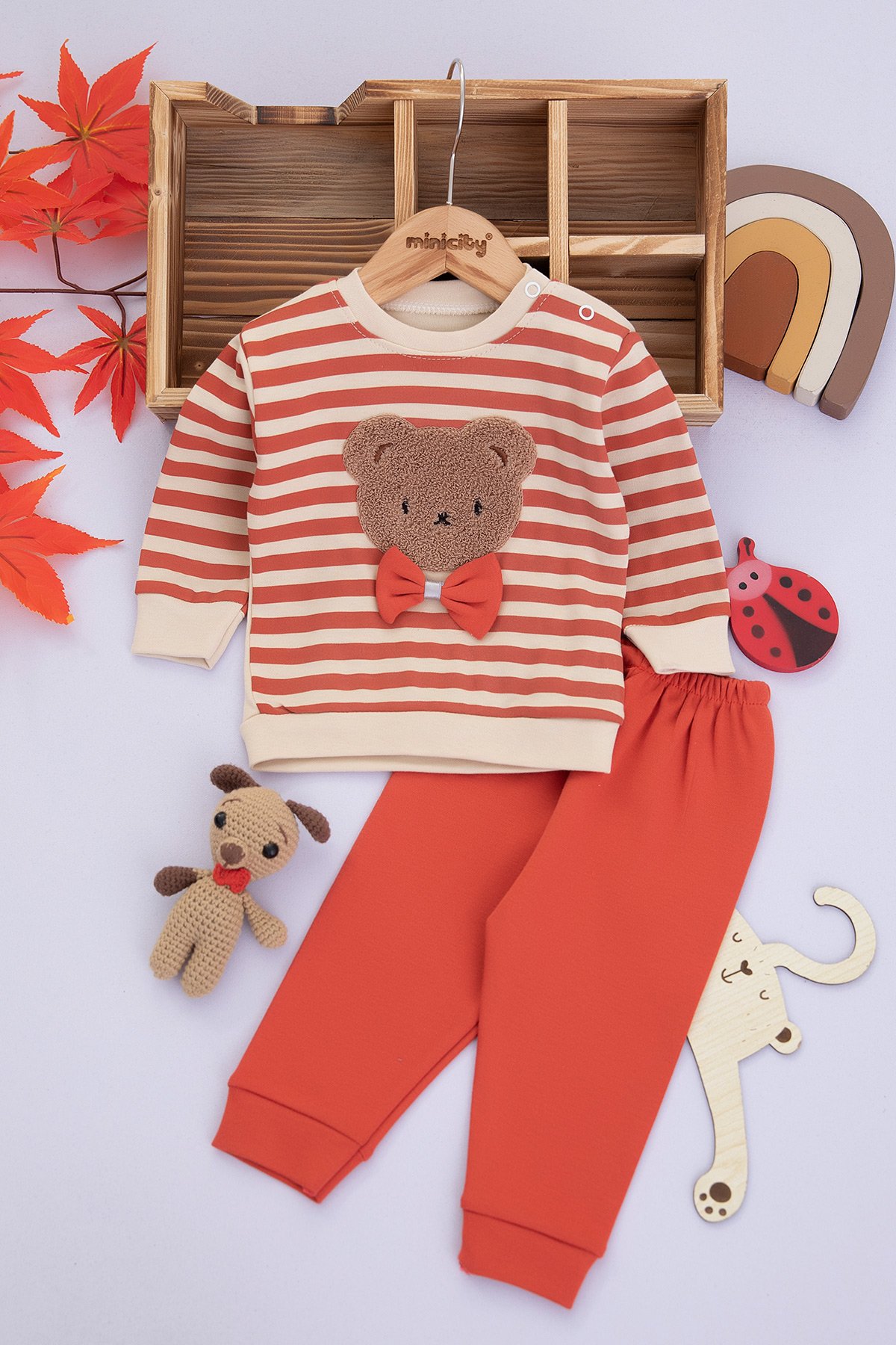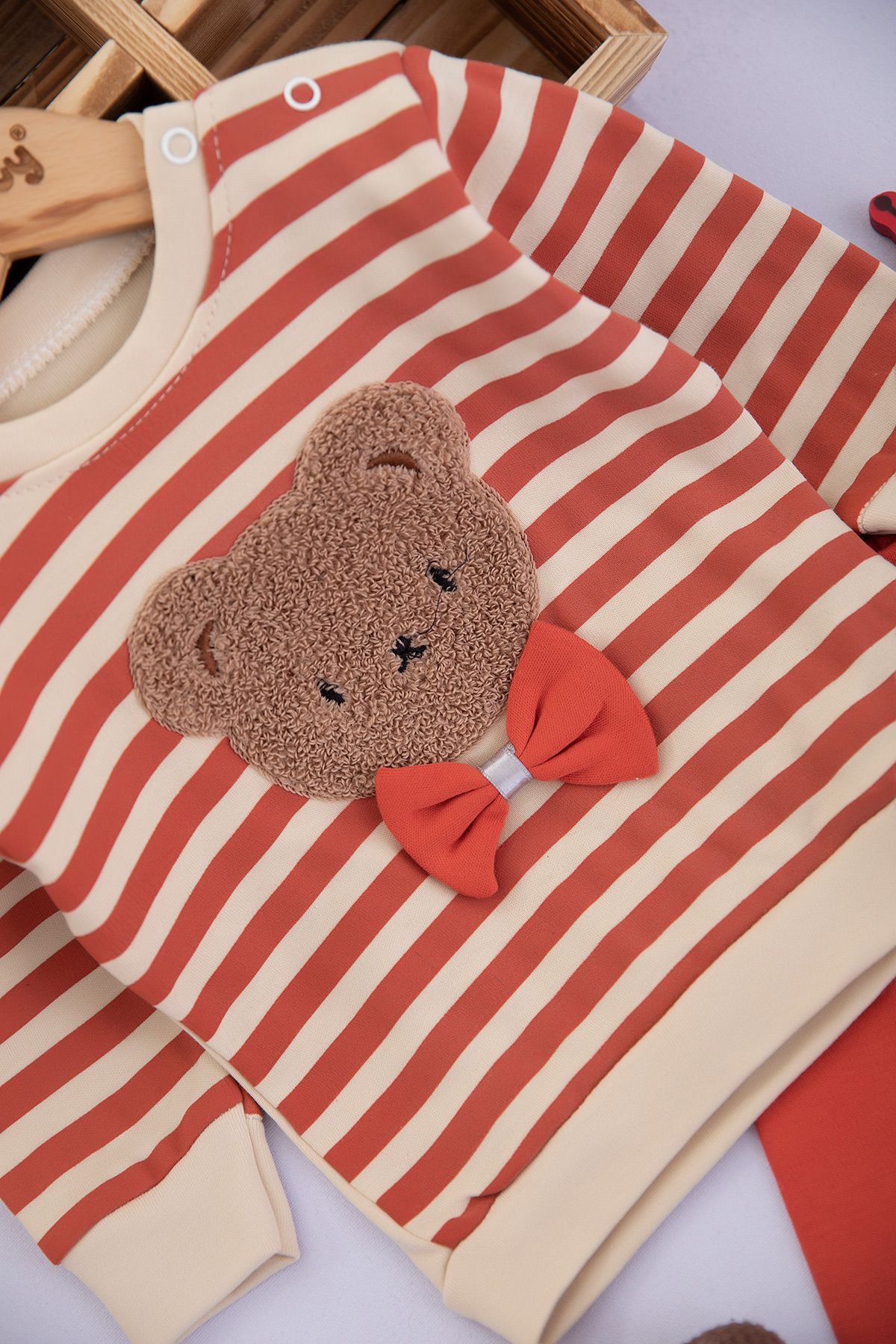 Erkek Bebek Çizgili Süzene Papyonlu Ayı Takım (9-18 Ay)