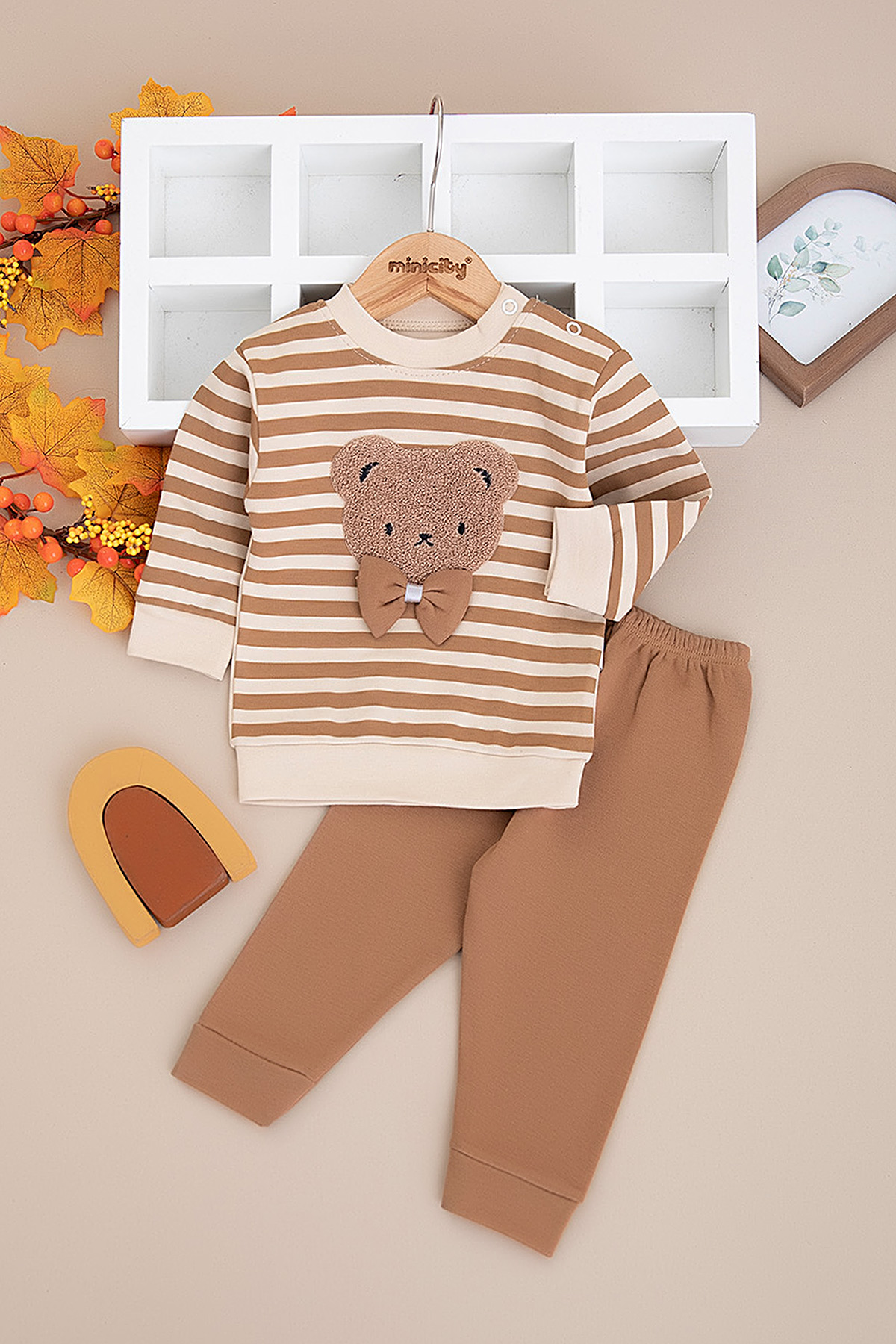 Erkek Bebek Çizgili Süzene Papyonlu Ayı Takım (9-18 Ay)