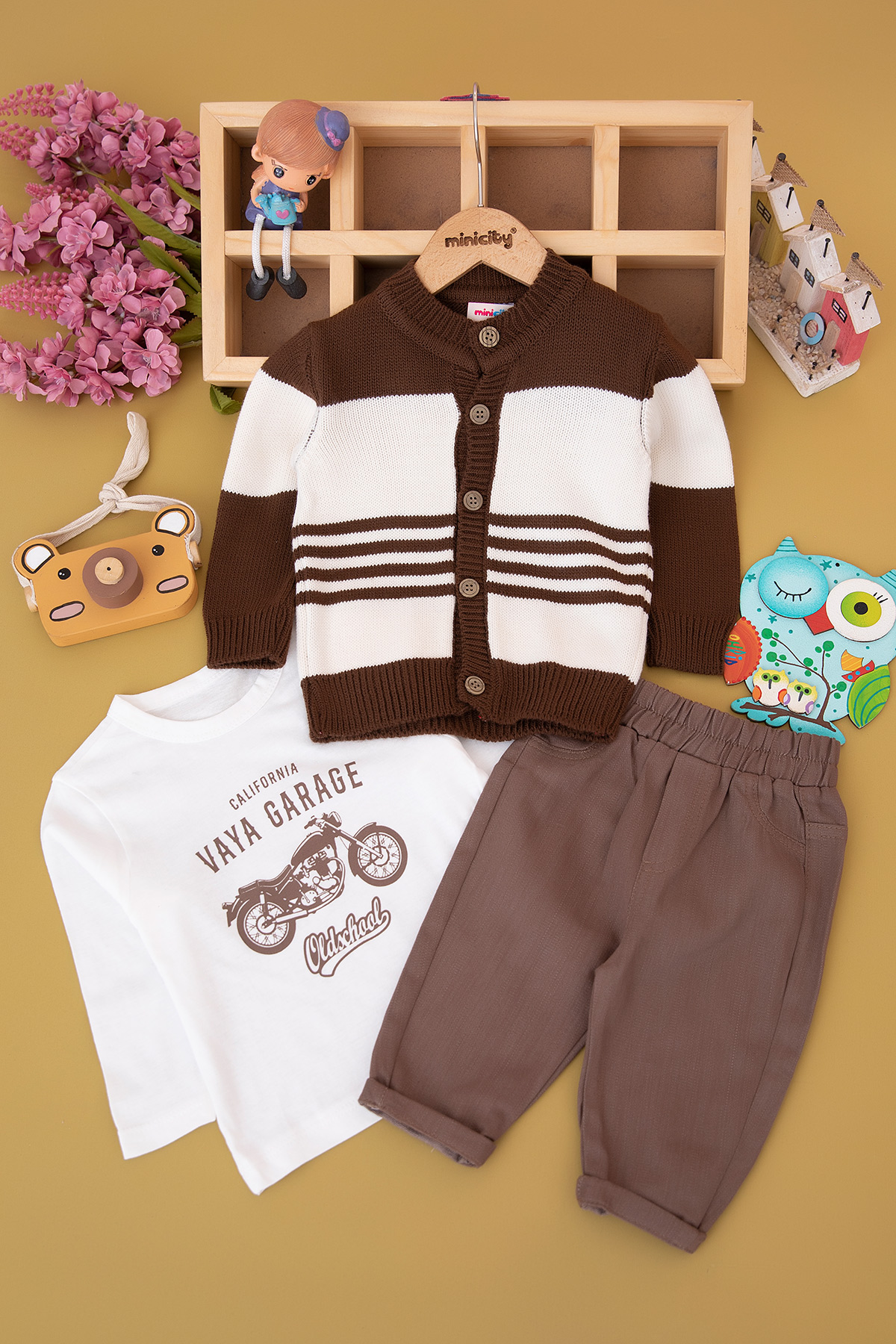 Erkek Bebek Çizgili Triko Hırkalı Takım - T-053 (6-24 Ay)