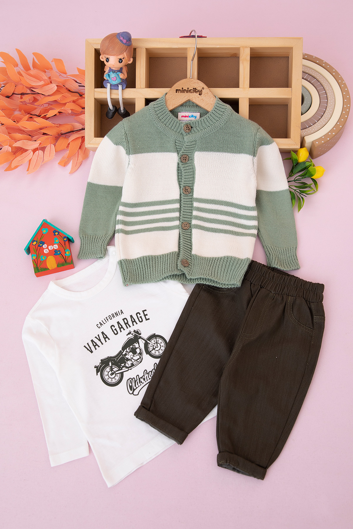 Erkek Bebek Çizgili Triko Hırkalı Takım - T-053 (6-24 Ay)