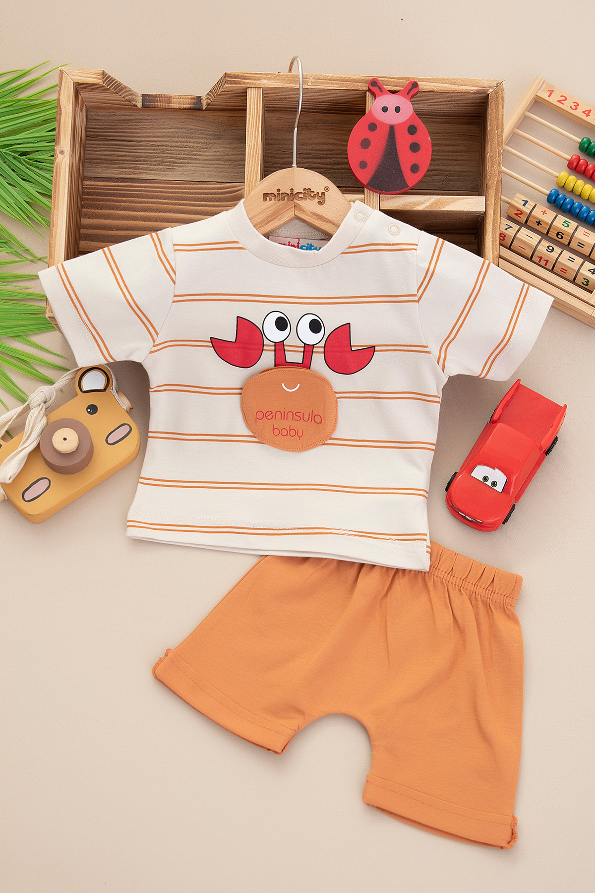 Erkek Bebek Çizgili Yengeç Şortlu Takım - 25475 (3-12 Ay)