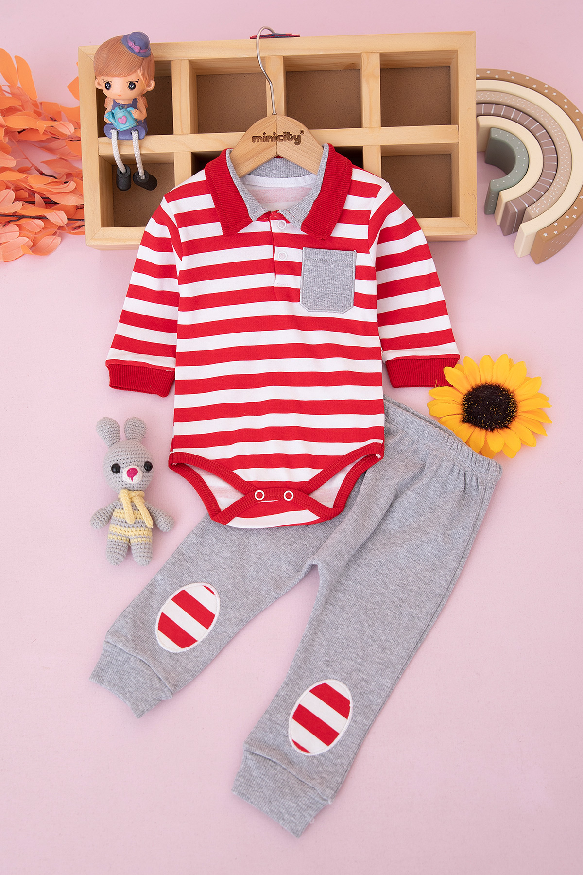 Erkek Bebek Çizgili Zıbınlı Takım - 2977 (3-12 Ay)