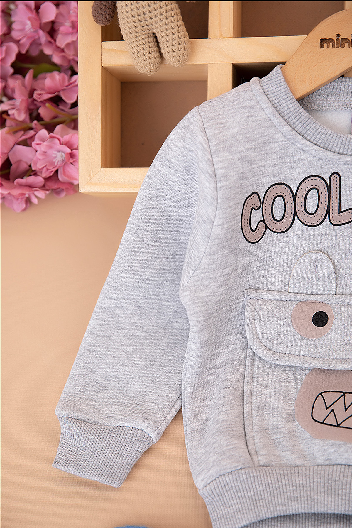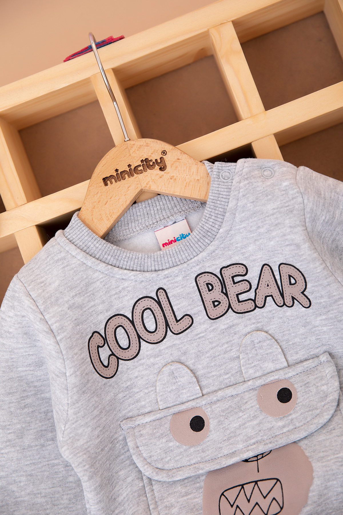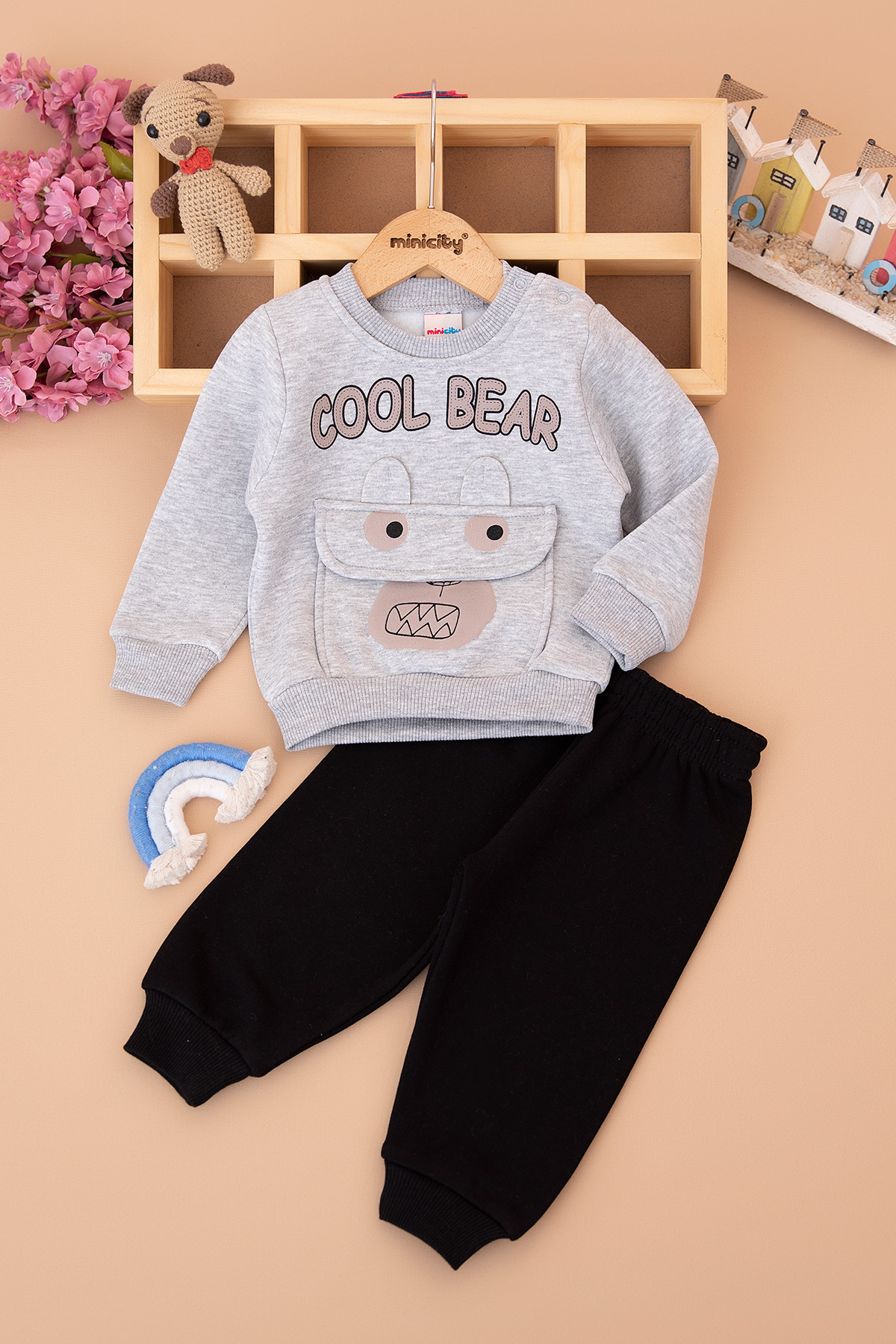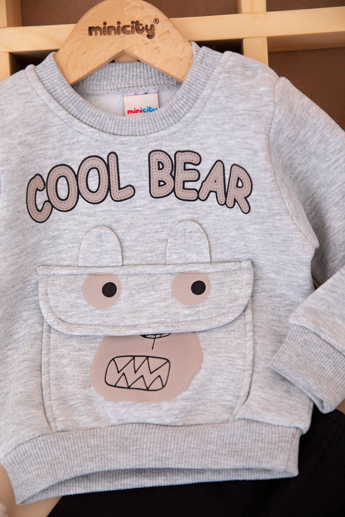 Erkek Bebek Cool Bear Baskılı Üçip Takım - 25928 (9-24 Ay)