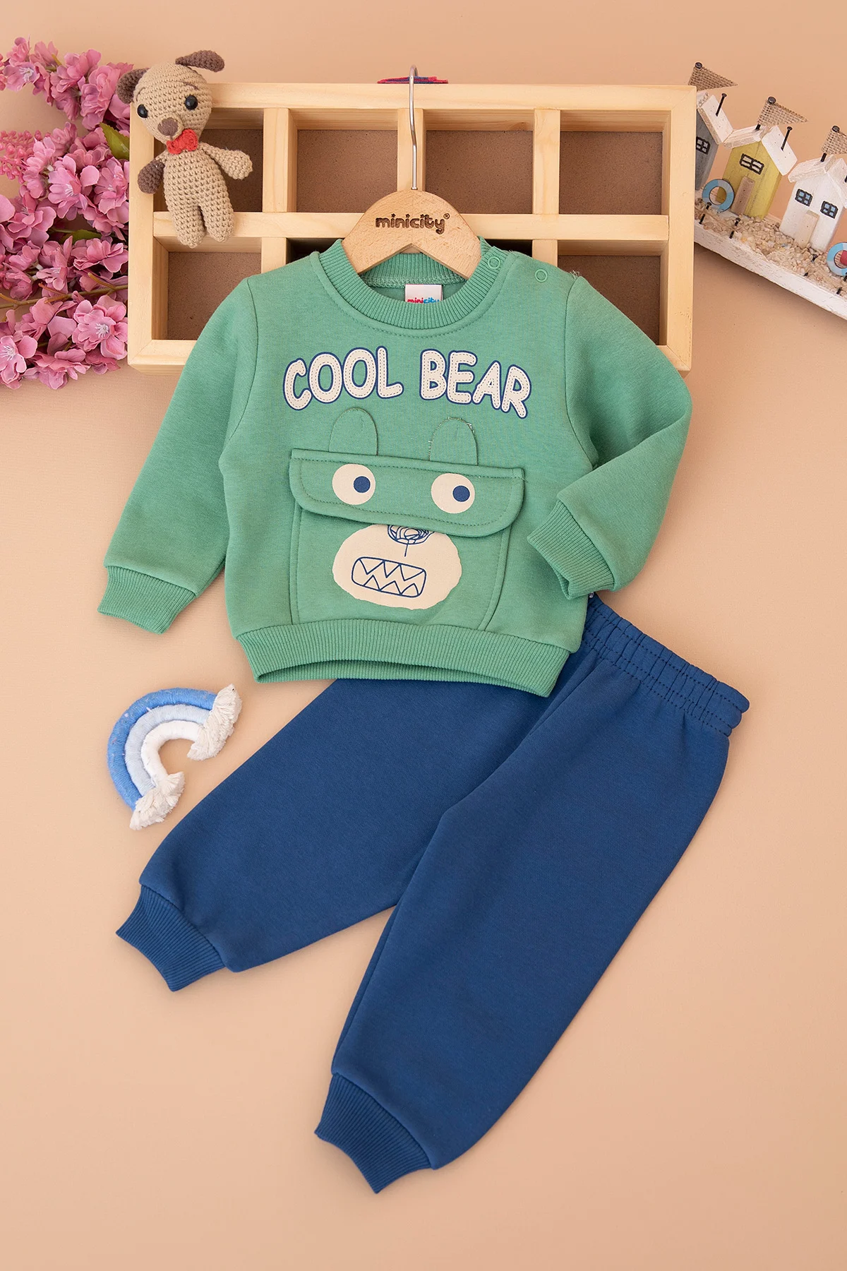Erkek Bebek Cool Bear Baskılı Üçip Takım - 25928 (9-24 Ay)