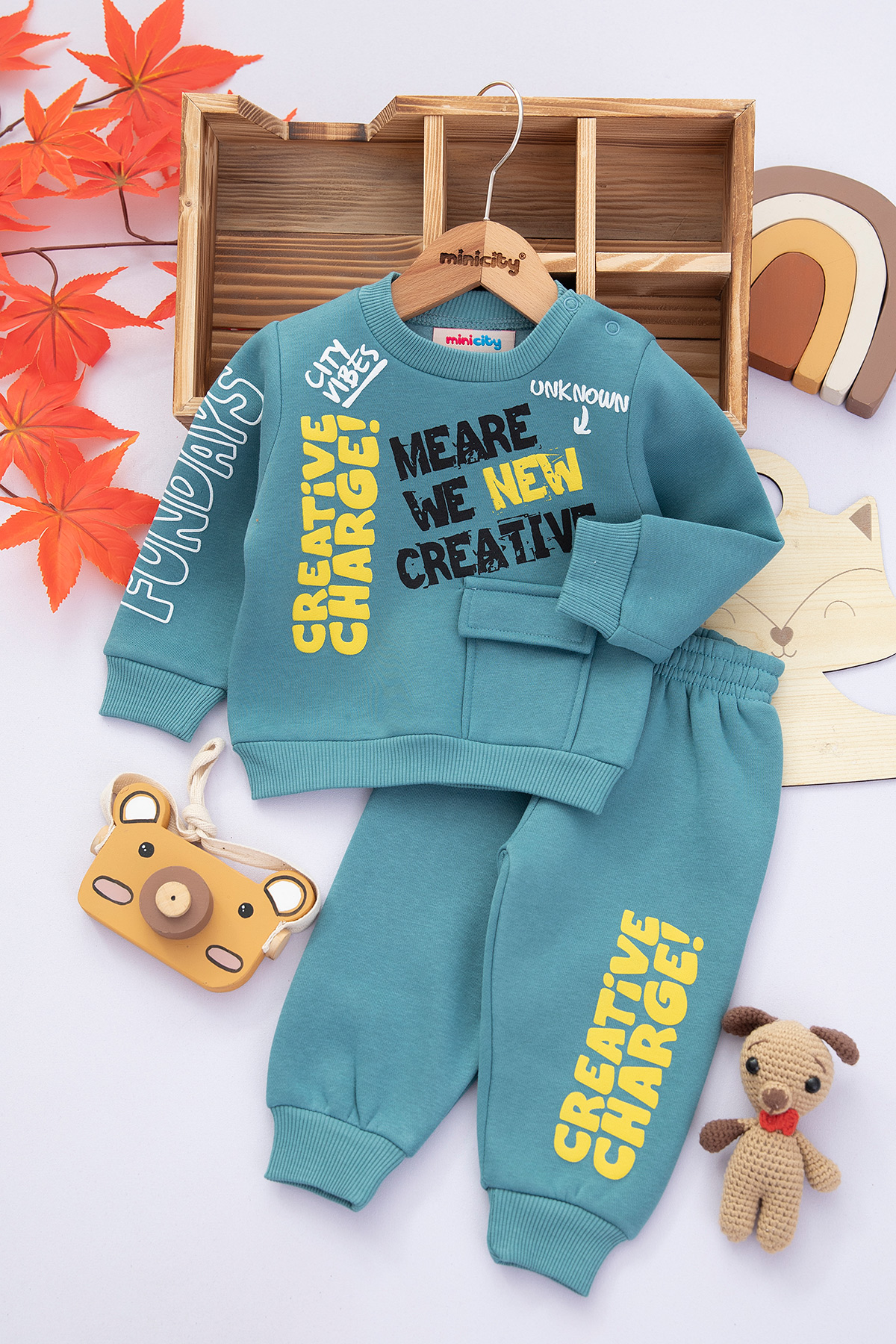 Erkek Bebek Creative Baskılı Üçip Takım - 24749 (9-24 Ay)