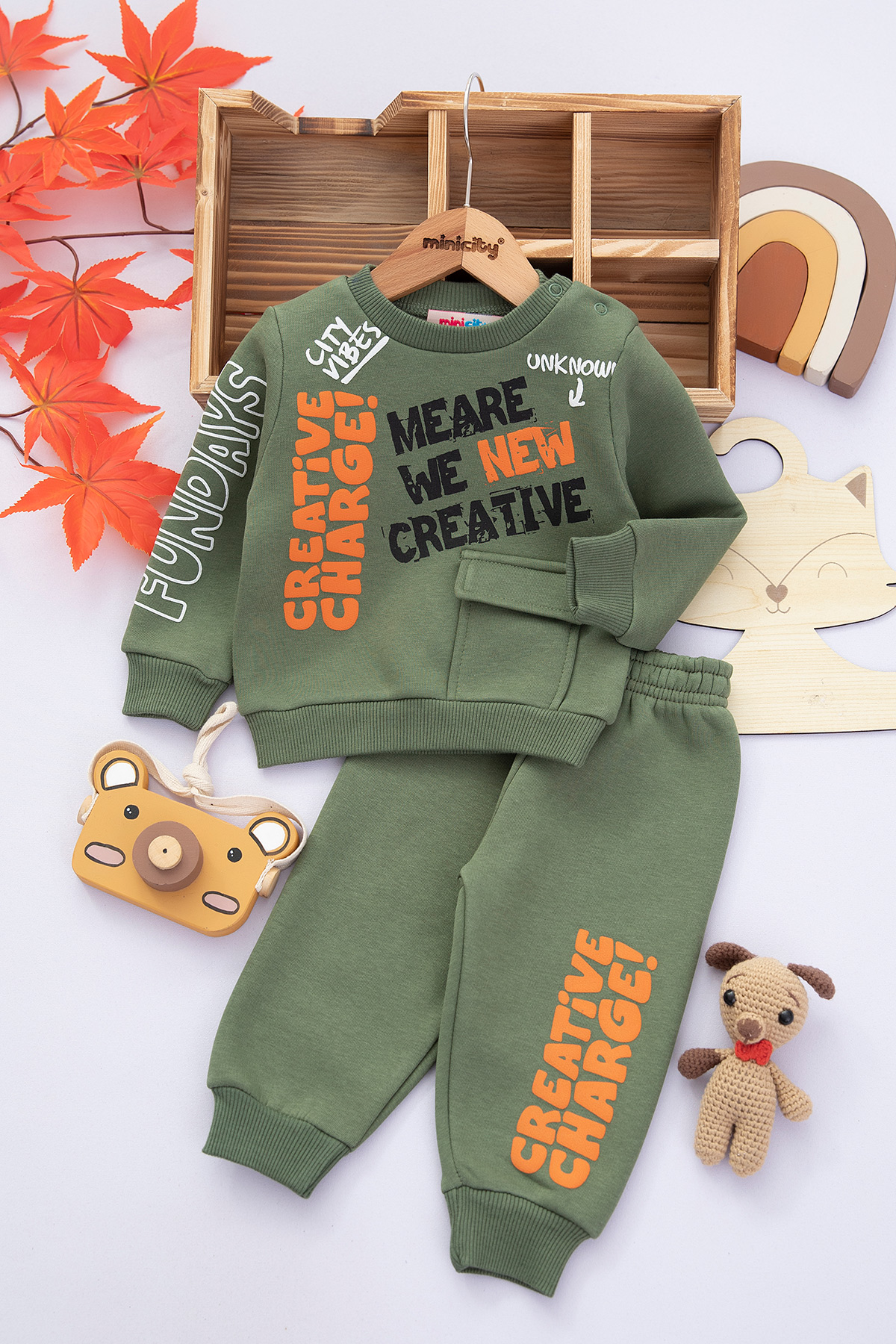 Erkek Bebek Creative Baskılı Üçip Takım - 24749 (9-24 Ay)