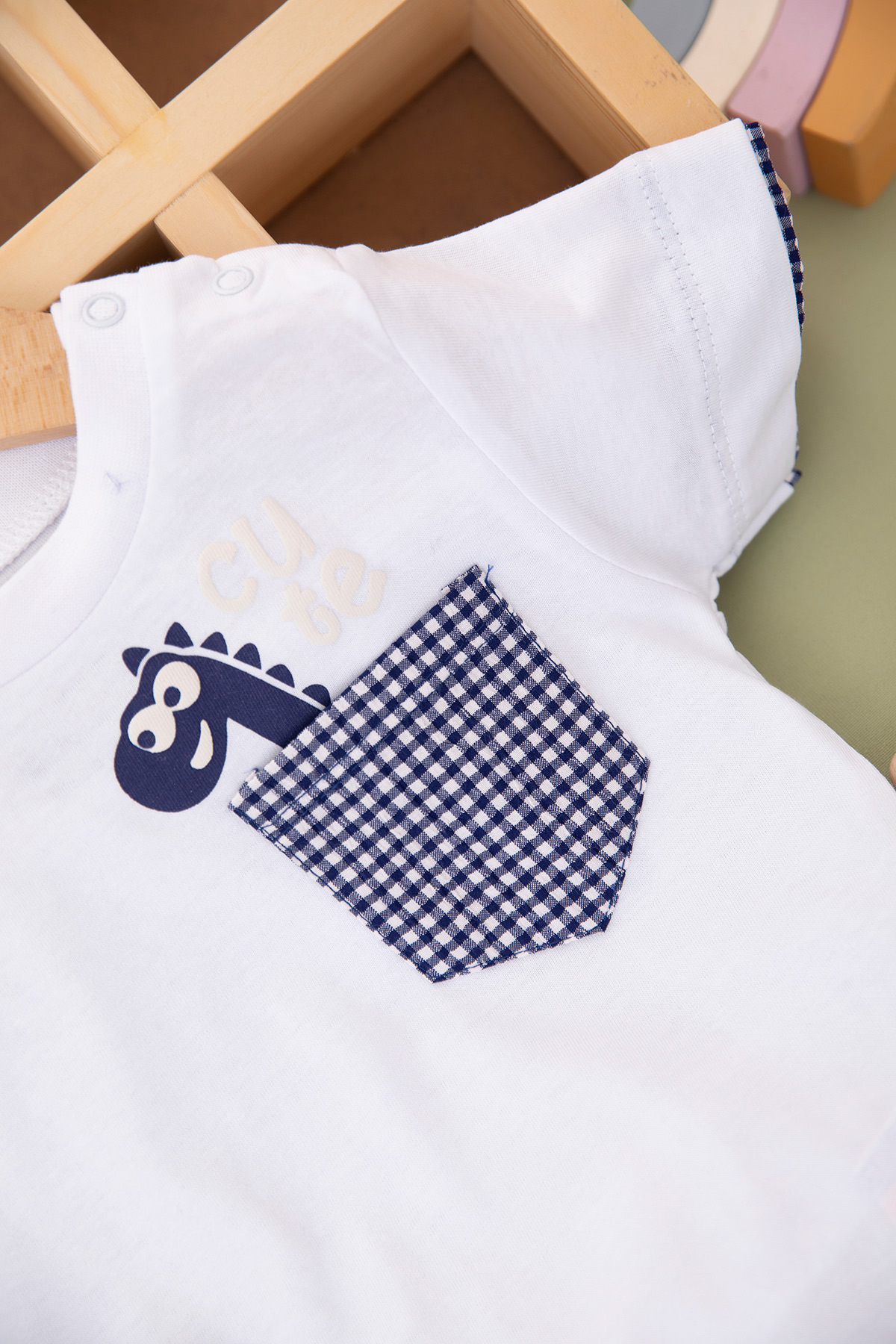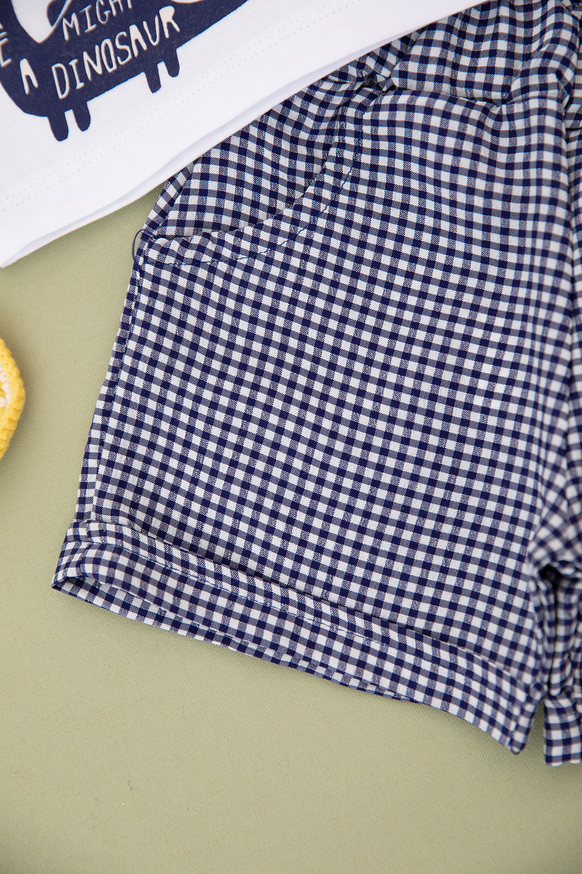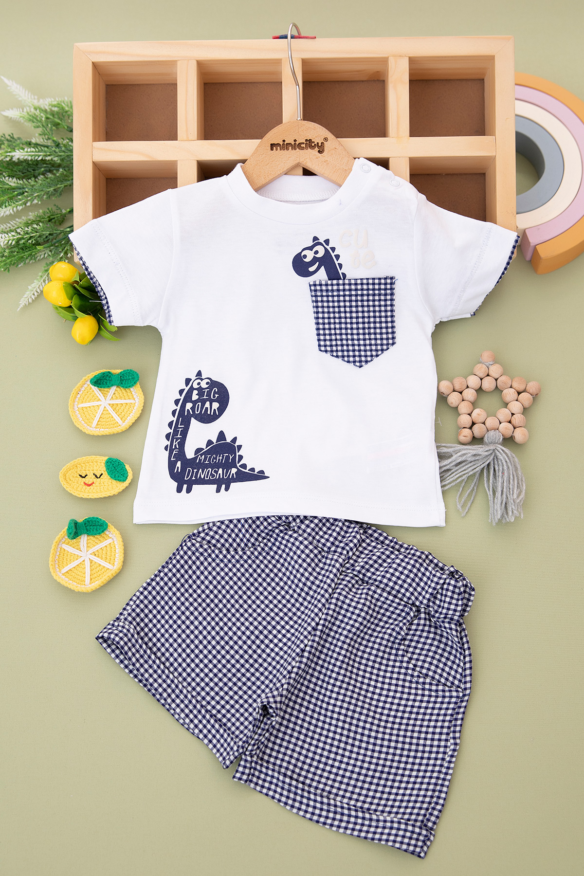 Erkek Bebek Cute Baskılı Ekose Şortlu Takım - 24105 (9-24 Ay)
