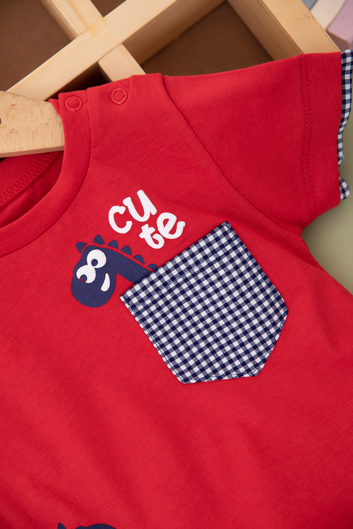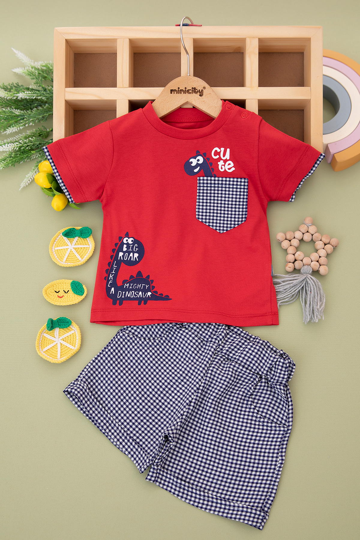 Erkek Bebek Cute Baskılı Ekose Şortlu Takım - 24105 (9-24 Ay)