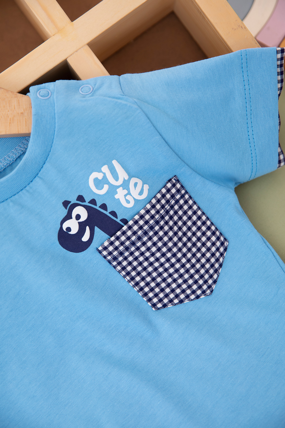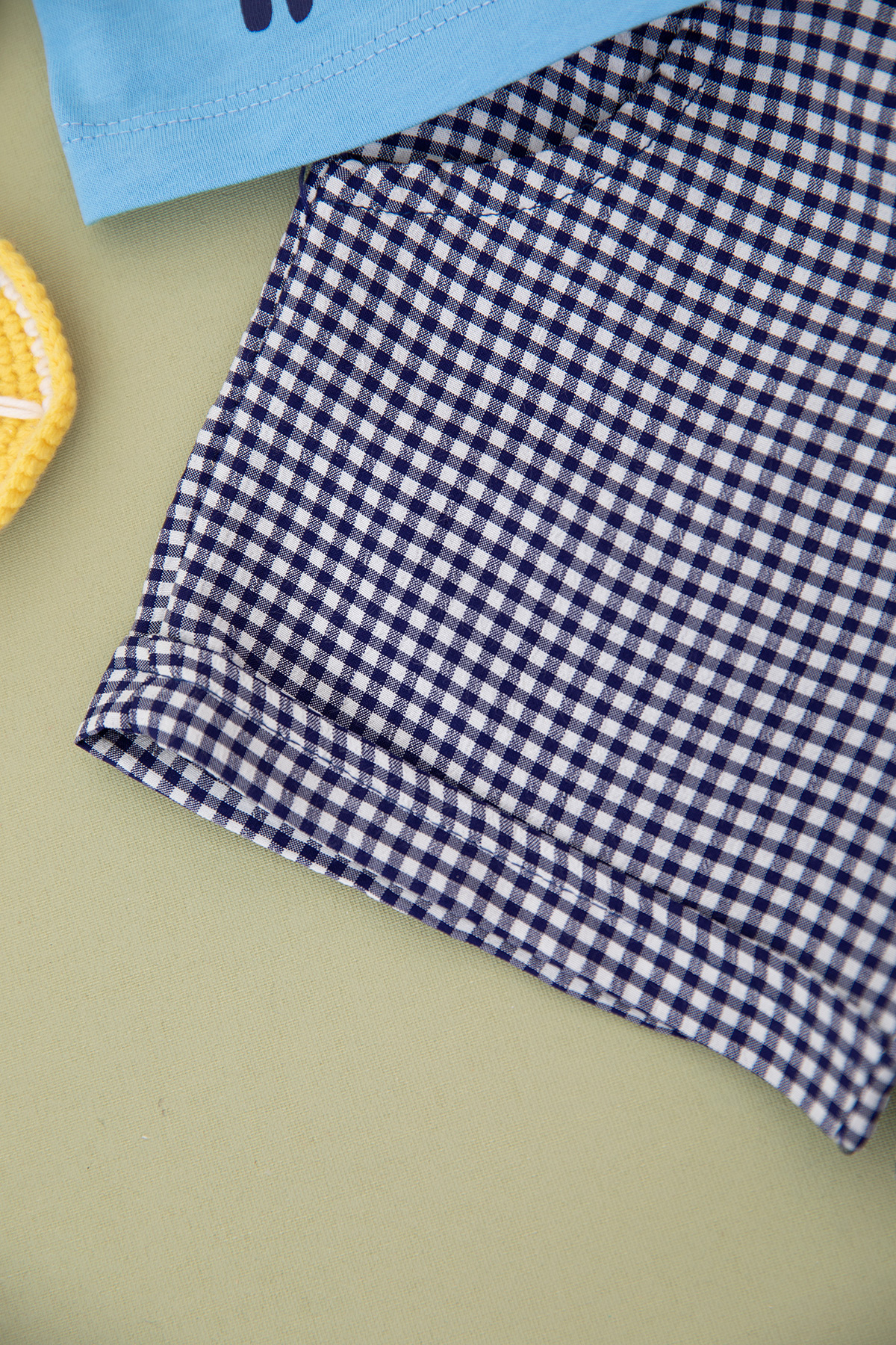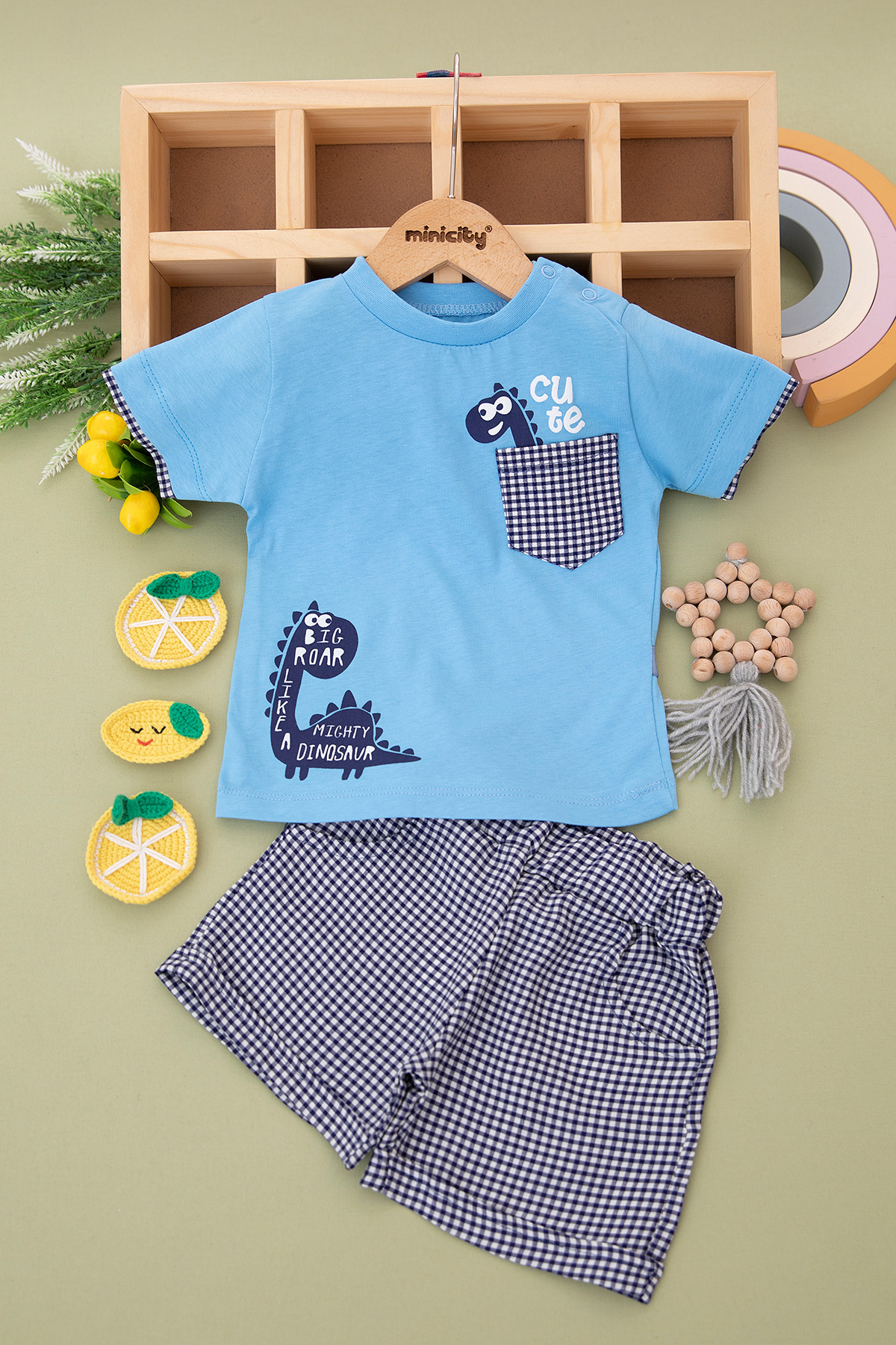 Erkek Bebek Cute Baskılı Ekose Şortlu Takım - 24105 (9-24 Ay)