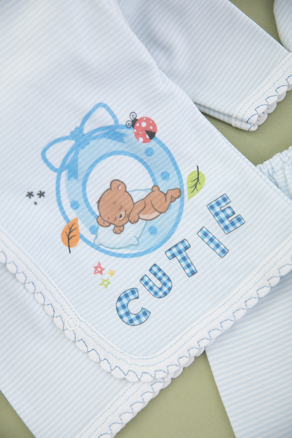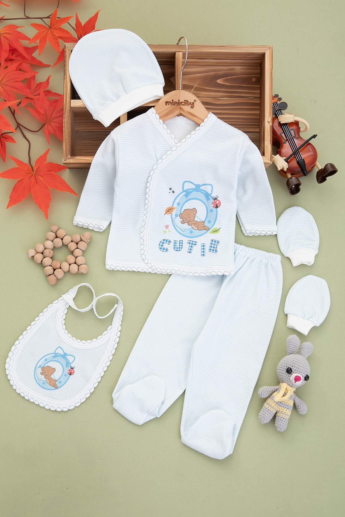 Erkek Bebek Cutie Ayıcık Baskılı 5 Li Zıbın Seti