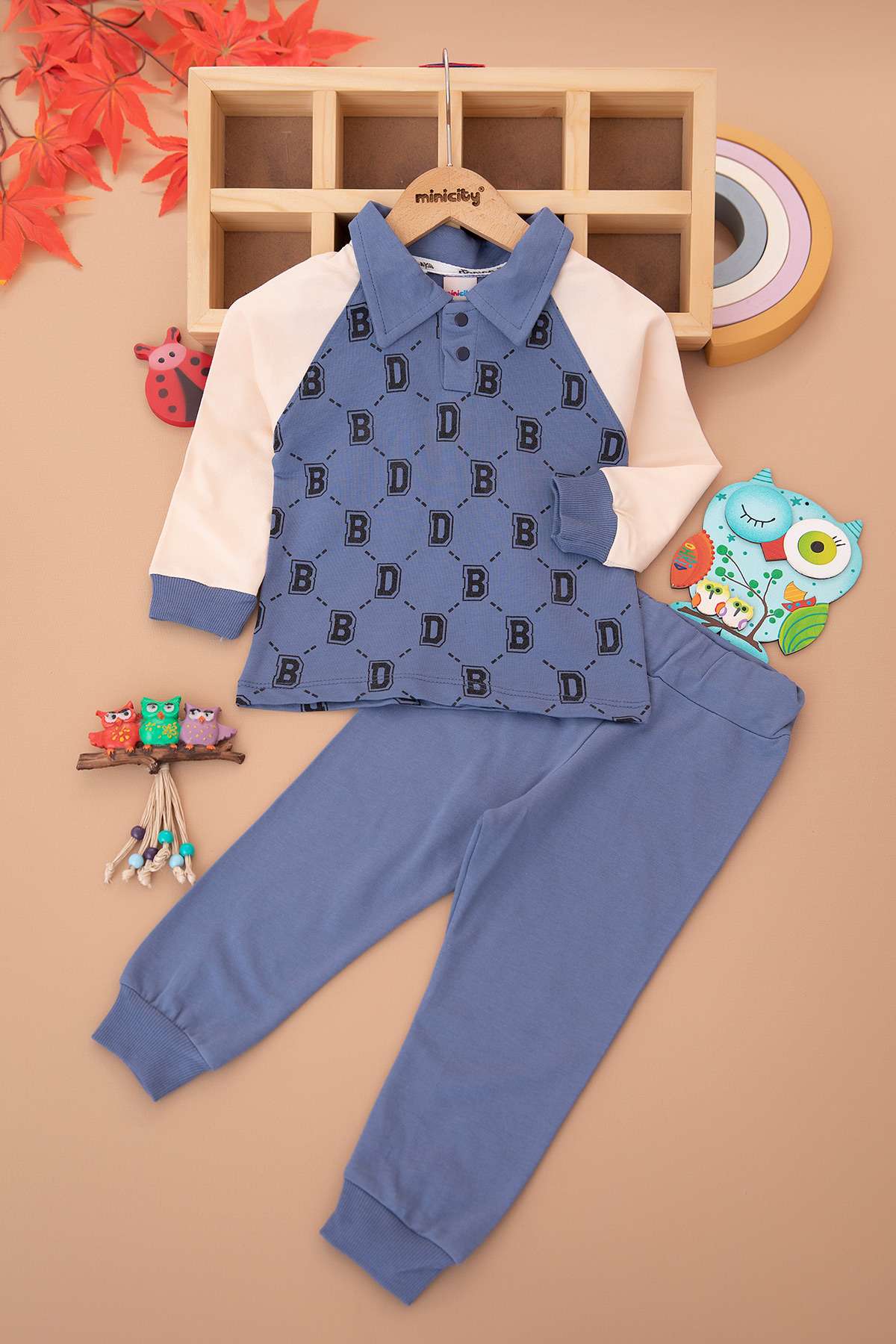 Erkek Bebek Db Baskılı Yakalı 2`Li Takım - 40636 (9-36 Ay)