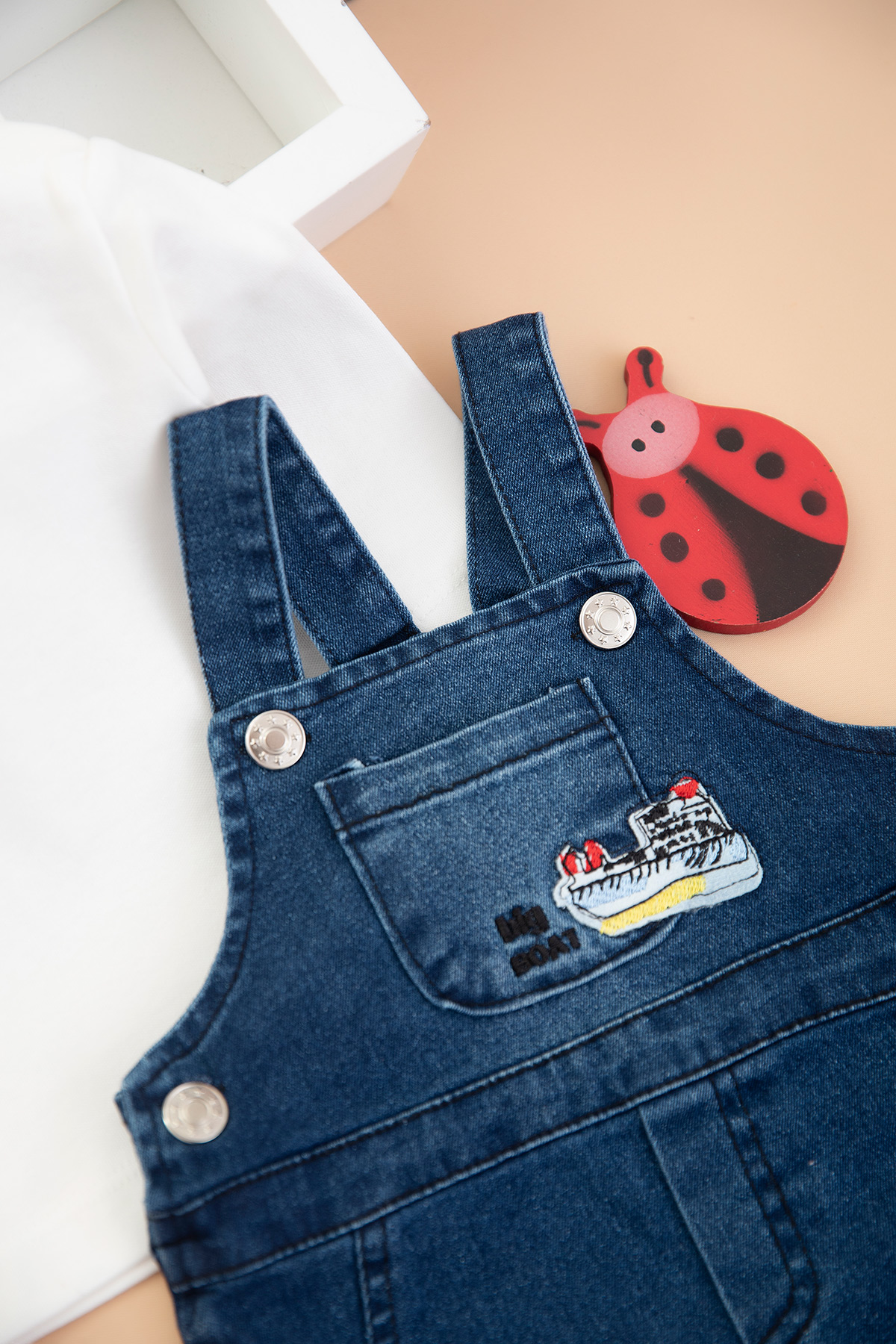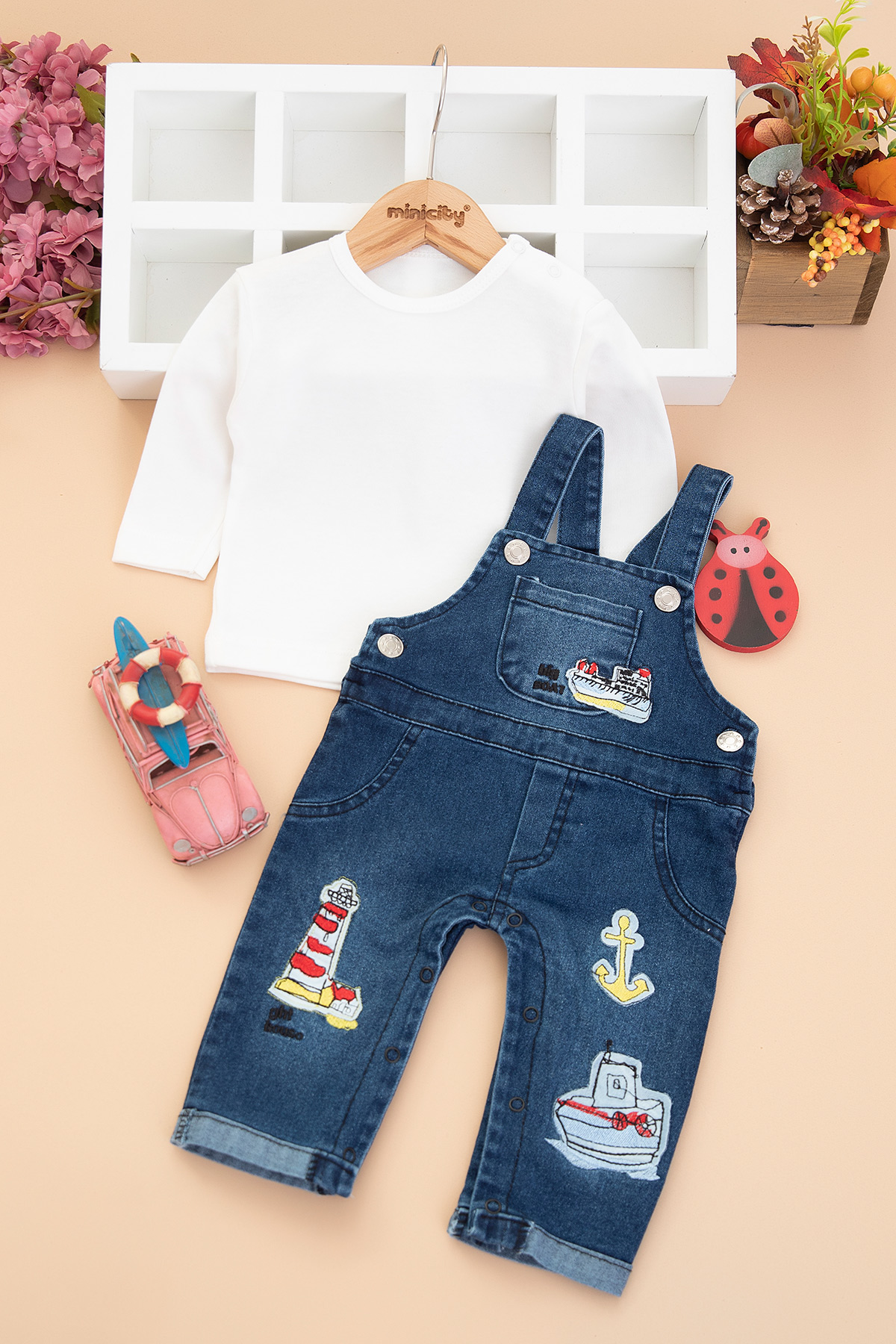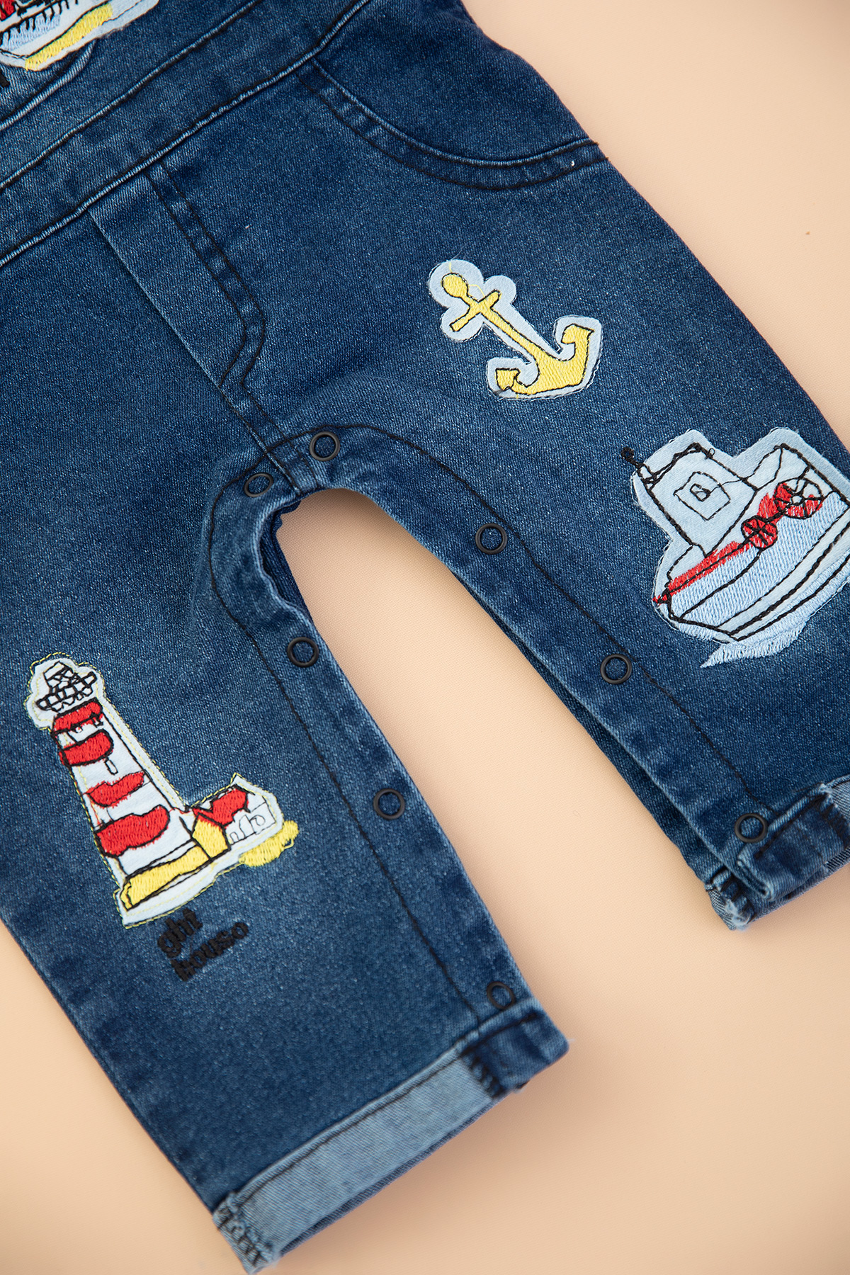 Erkek Bebek Deniz Feneri Nakışlı Kot Salopet - 10381 (3-18 Ay)