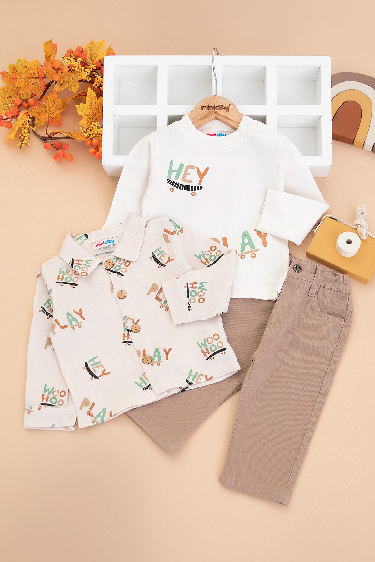 Erkek Bebek Desenli Müslin Gömlek Takım - 26081 (9-24 Ay)