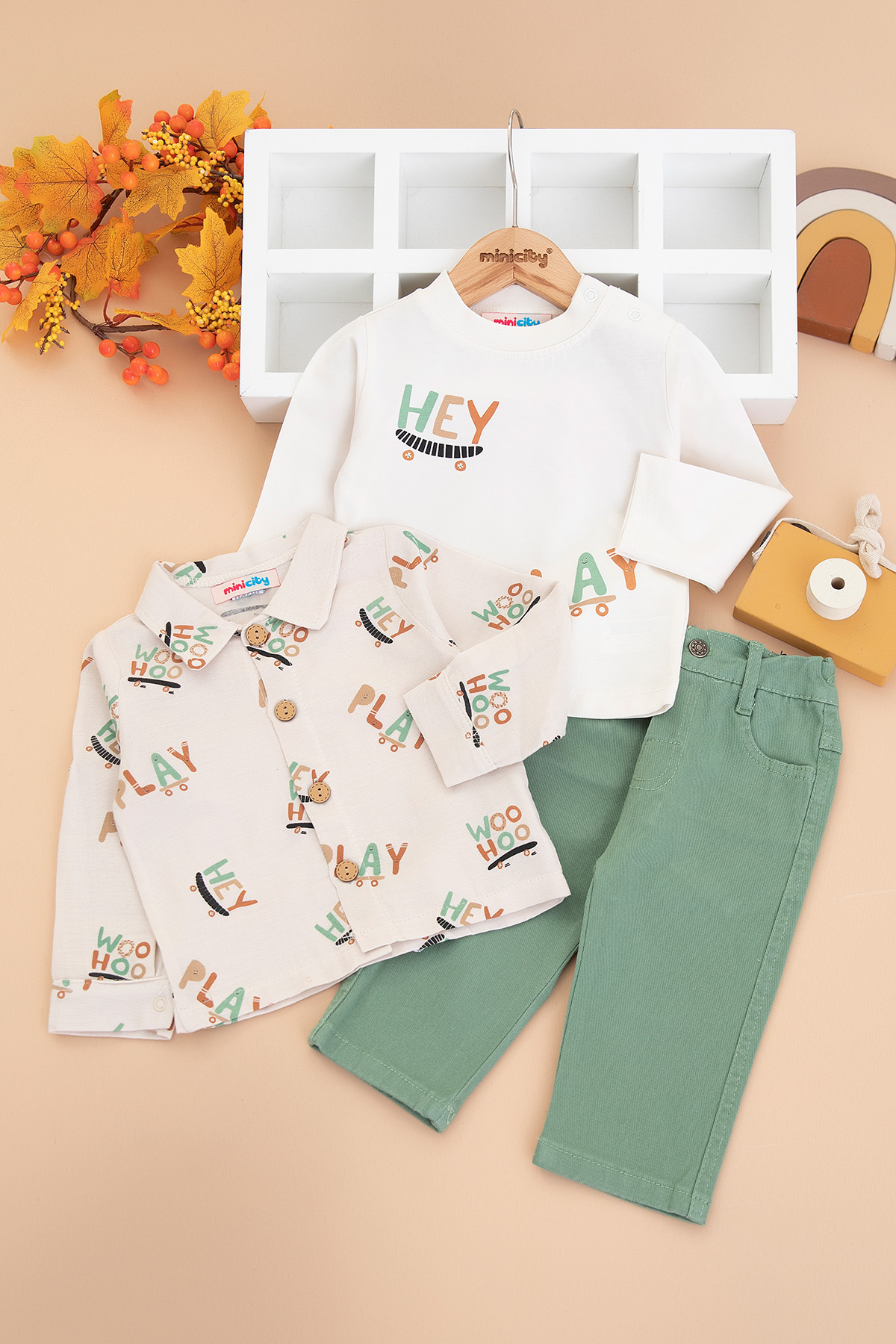Erkek Bebek Desenli Müslin Gömlek Takım - 26081 (9-24 Ay)