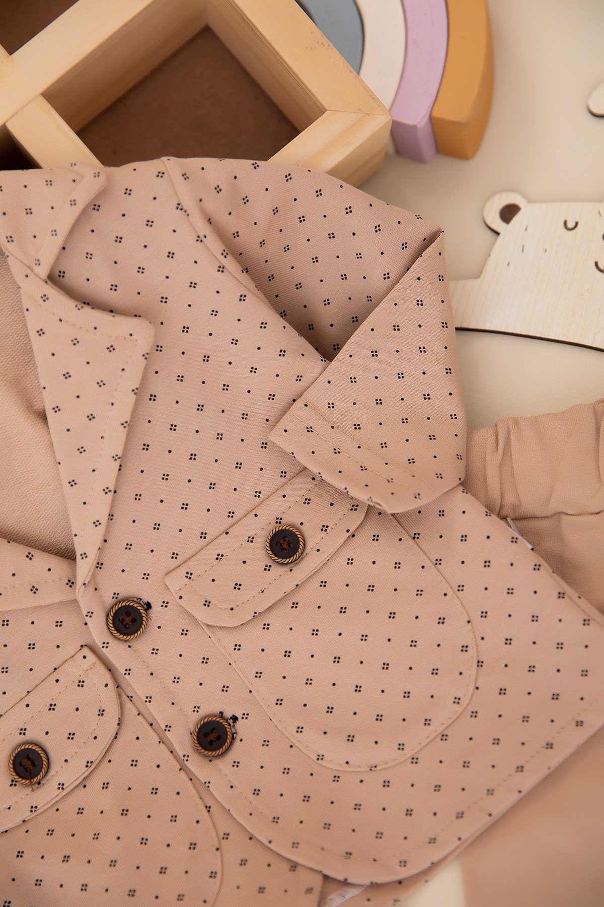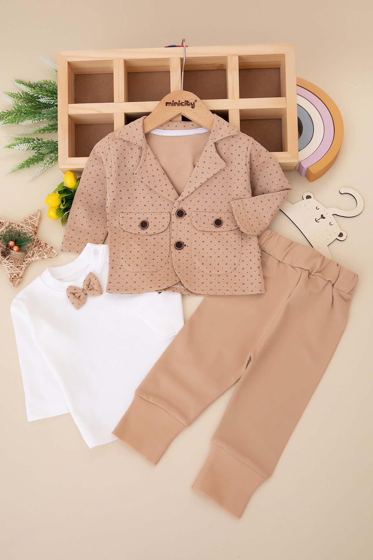 Erkek Bebek Desenli Papyonlu Takım - 8607 (3-12 Ay)