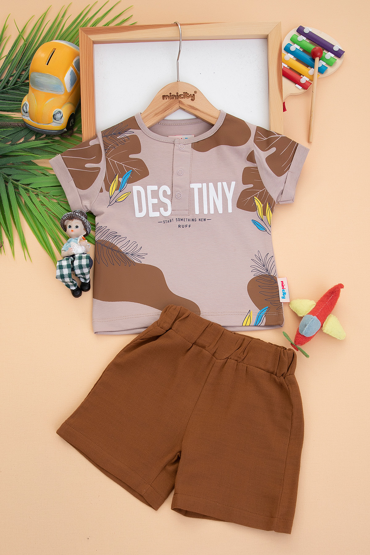 Erkek Bebek Destiny Baskılı Şortlu Takım - 24123 (9-24 Ay)