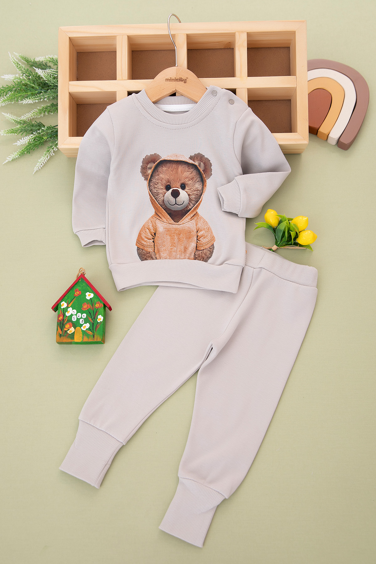 Erkek Bebek Dijital Ayı Baskılı Takım - 2158 (9-24 Ay)
