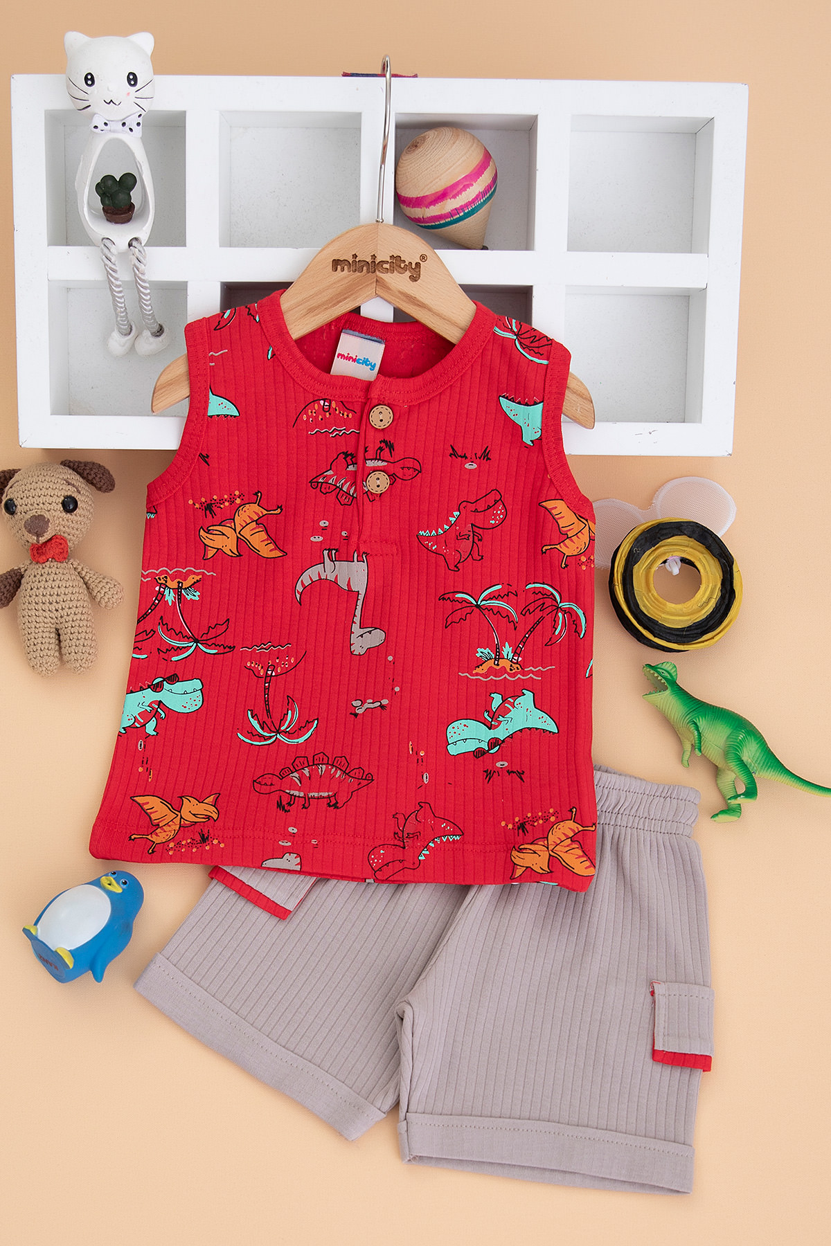 Erkek Bebek Dinazor Baskılı Askılı Takım - 23300 (9-24 Ay)