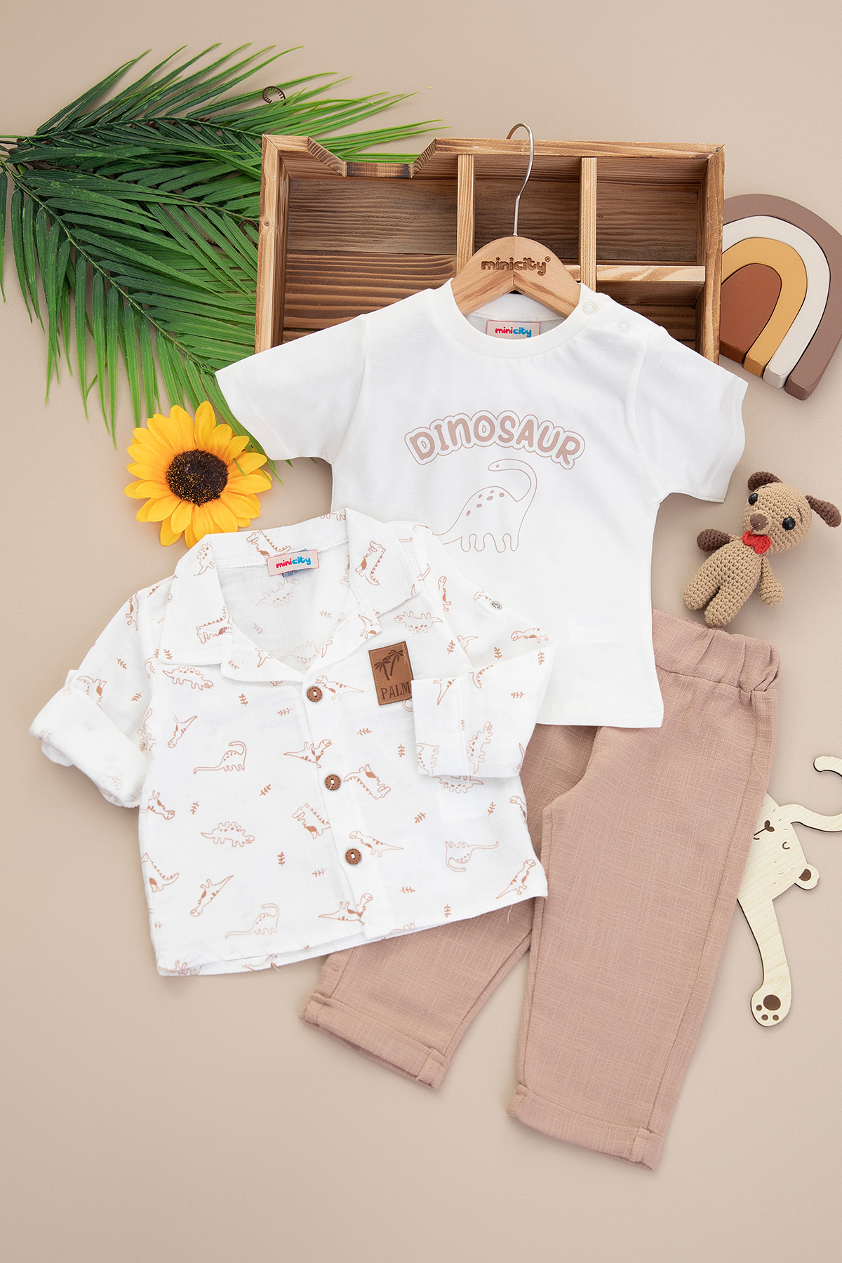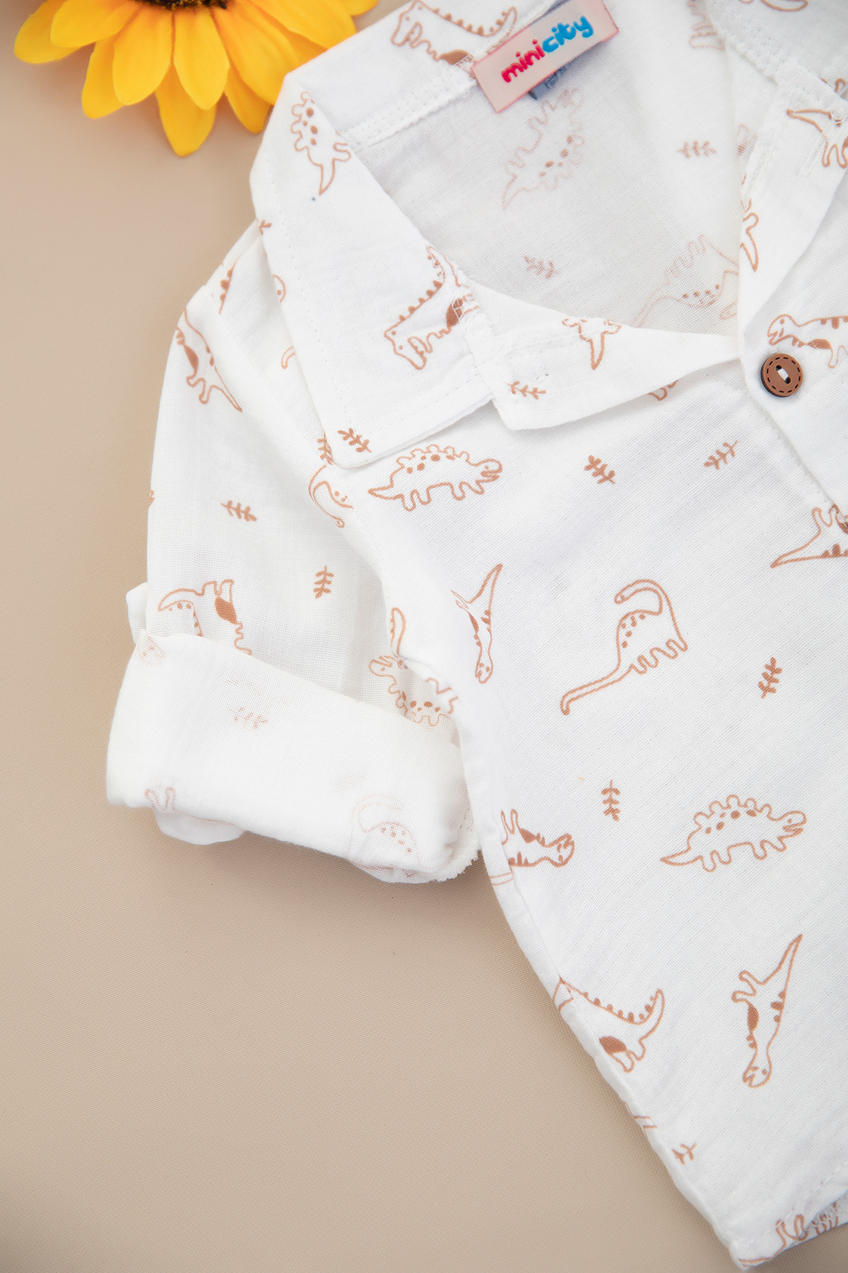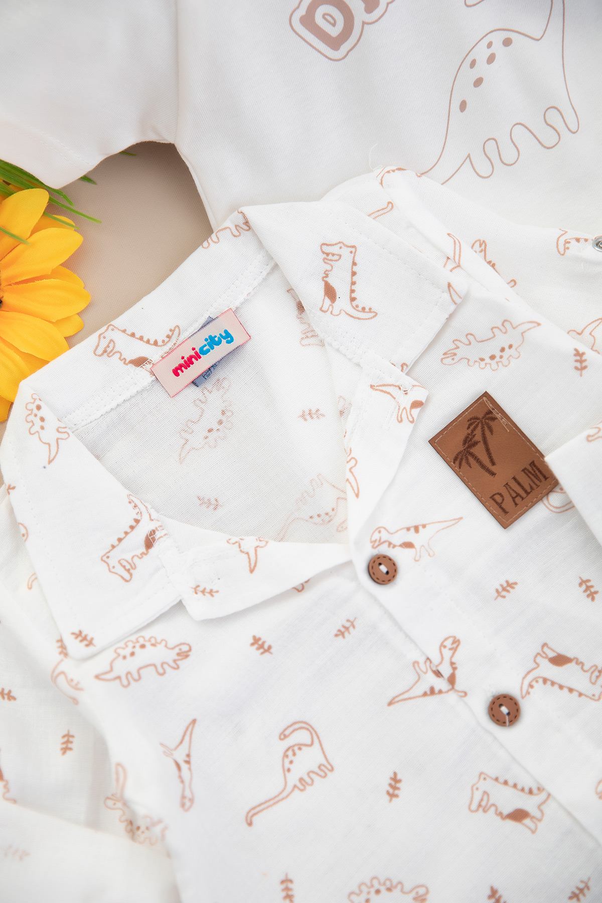 Erkek Bebek Dinazor Baskılı Gömlek Takım - 25030 (9-24 Ay)