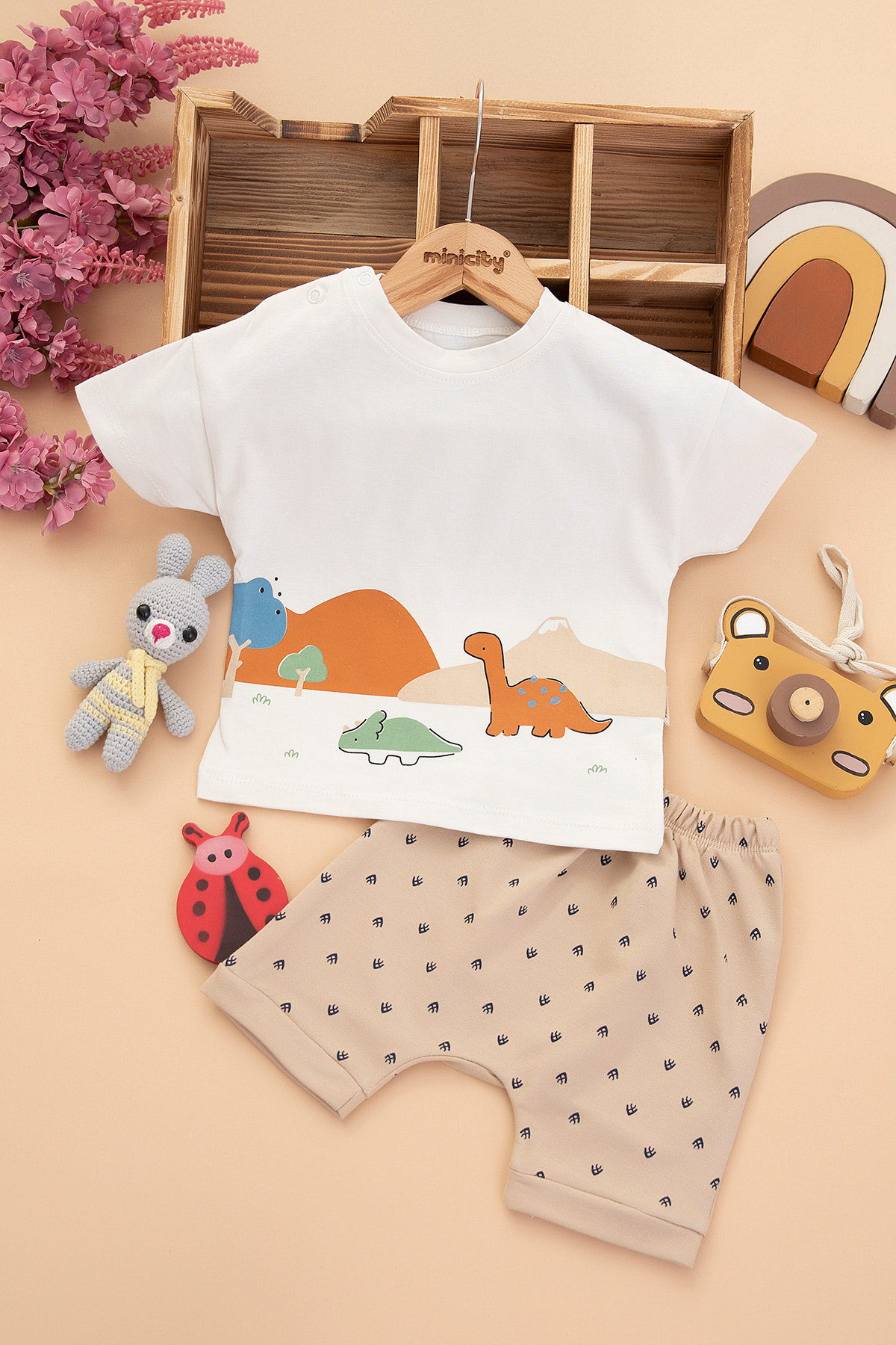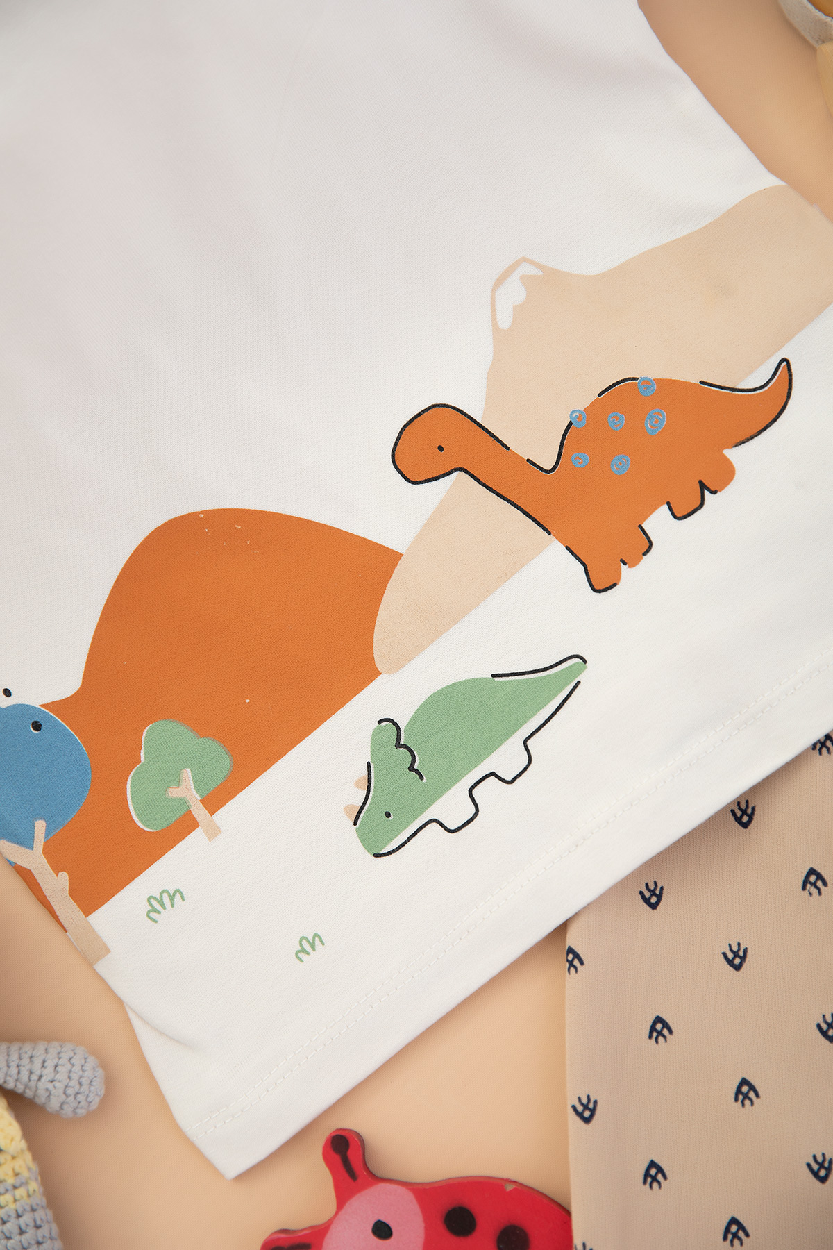 Erkek Bebek Dinazor Baskılı Şortlu Takım - 2053 (9-24 Ay)