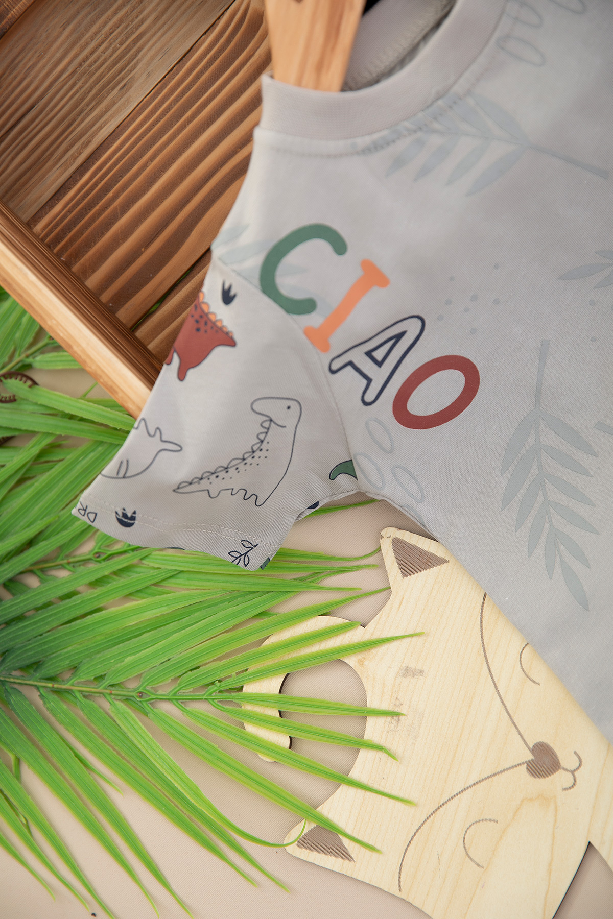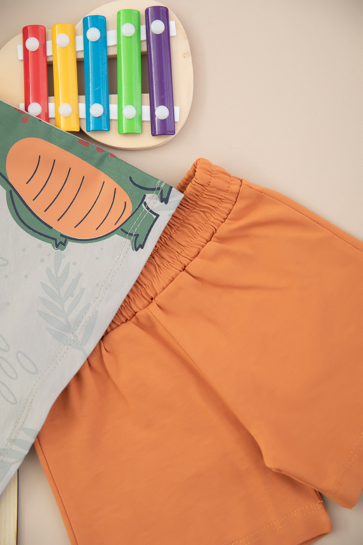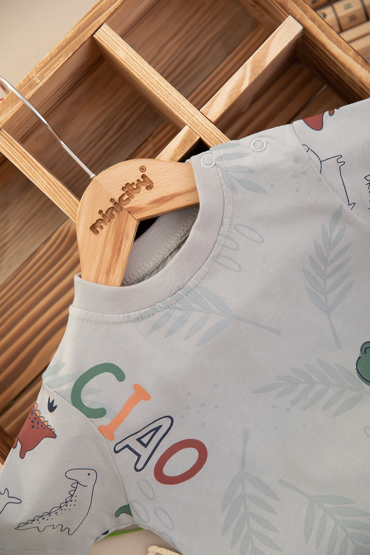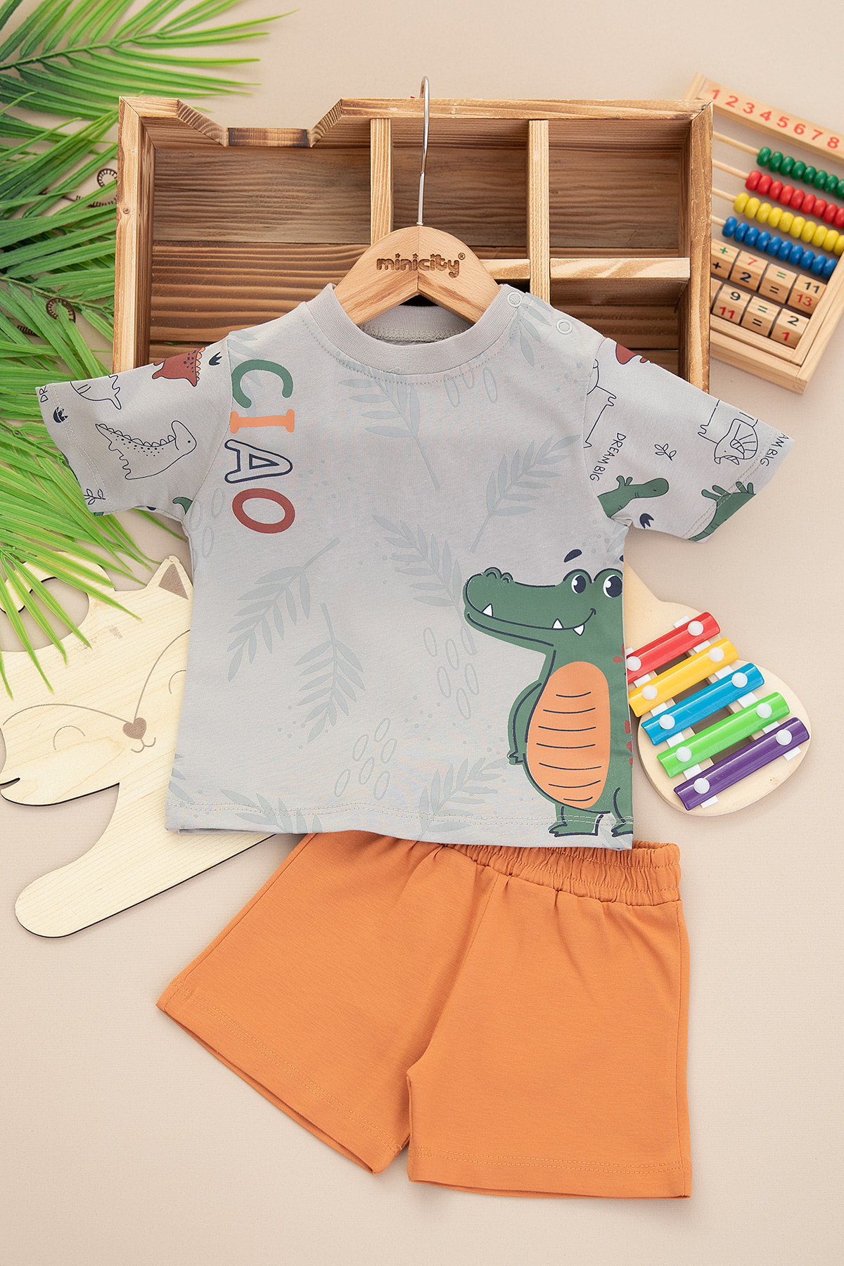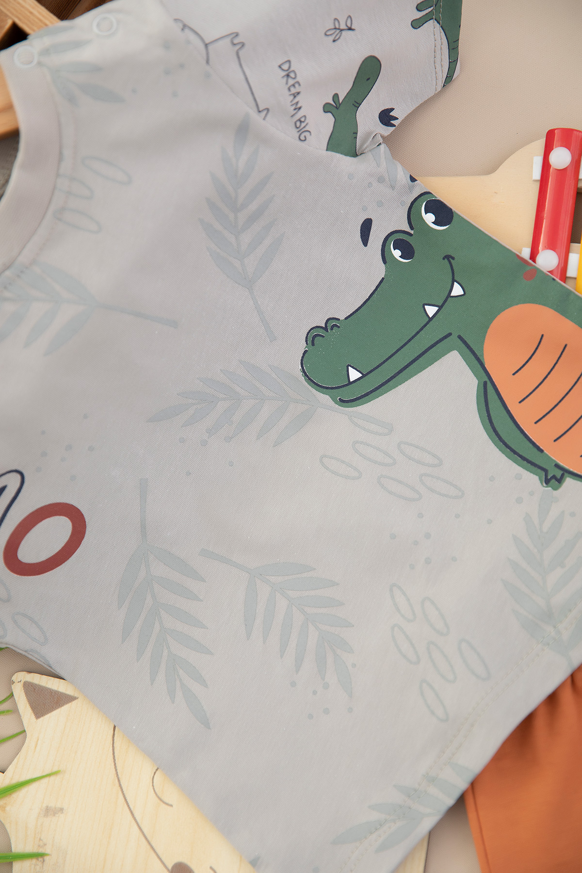 Erkek Bebek Dinazor Baskılı Şortlu Takım - 25303 (9-24 Ay)