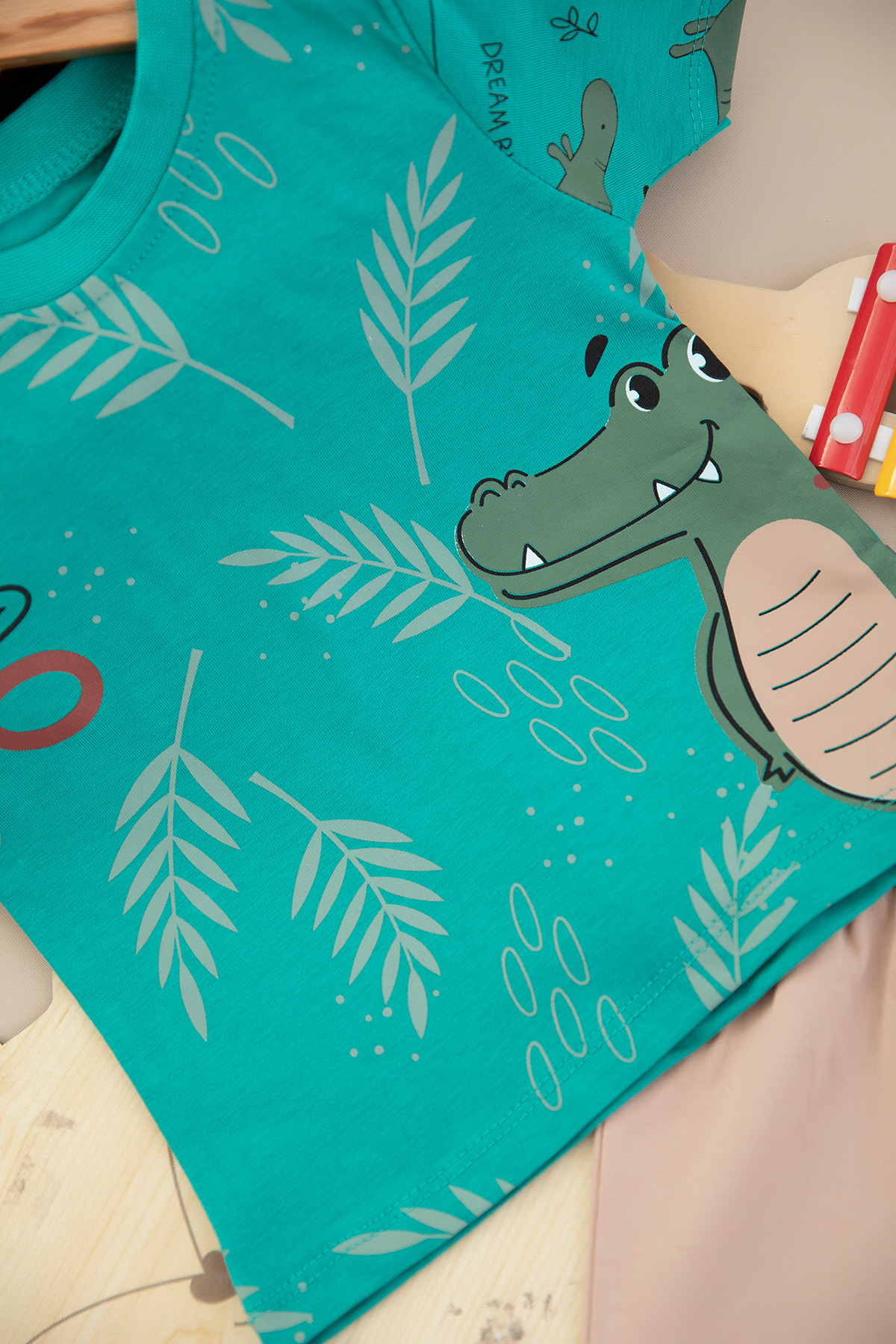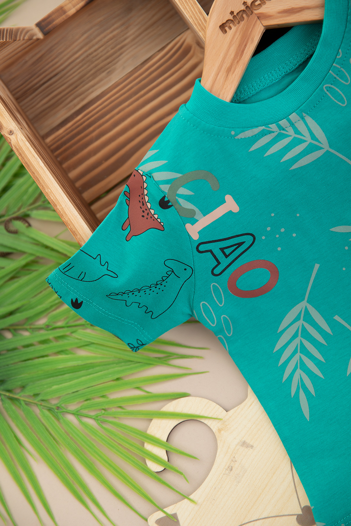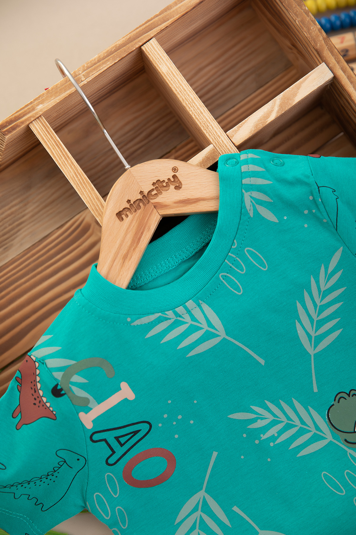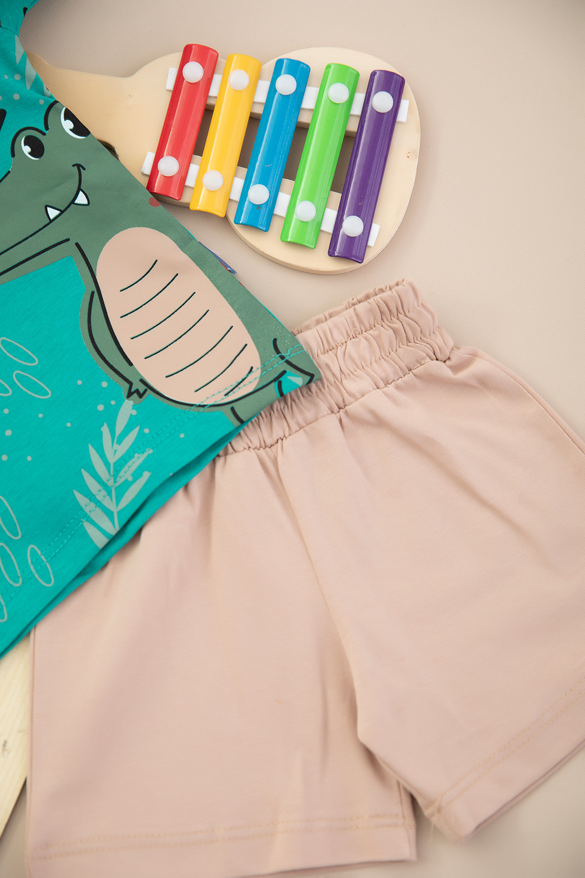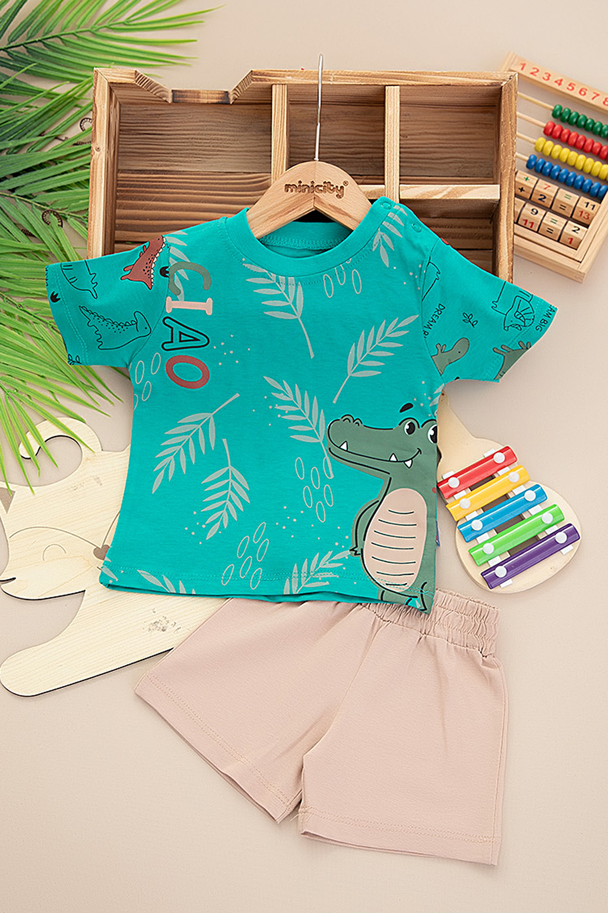 Erkek Bebek Dinazor Baskılı Şortlu Takım - 25303 (9-24 Ay)