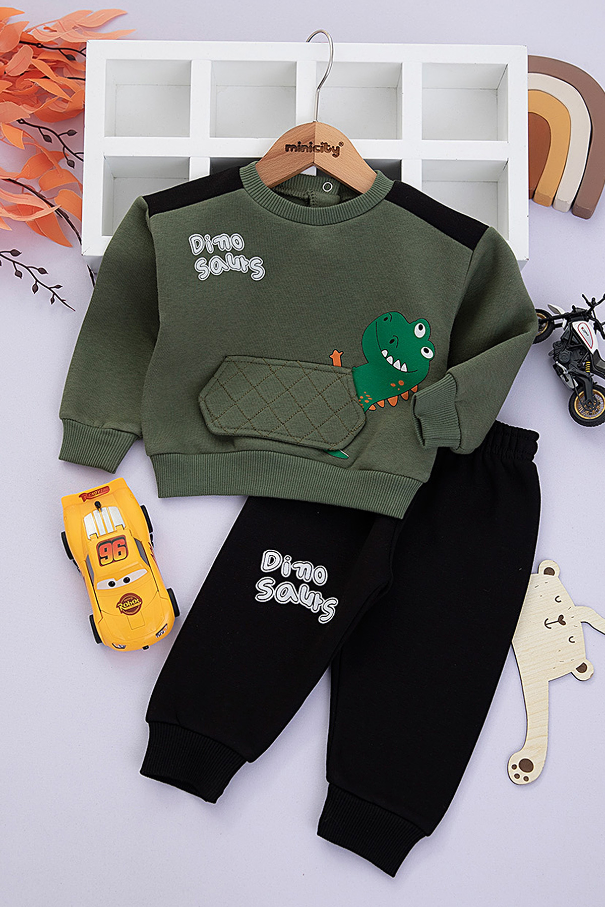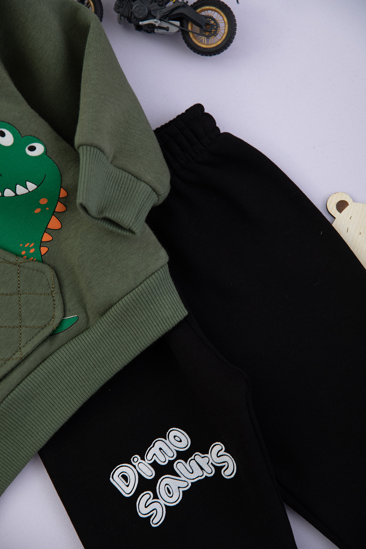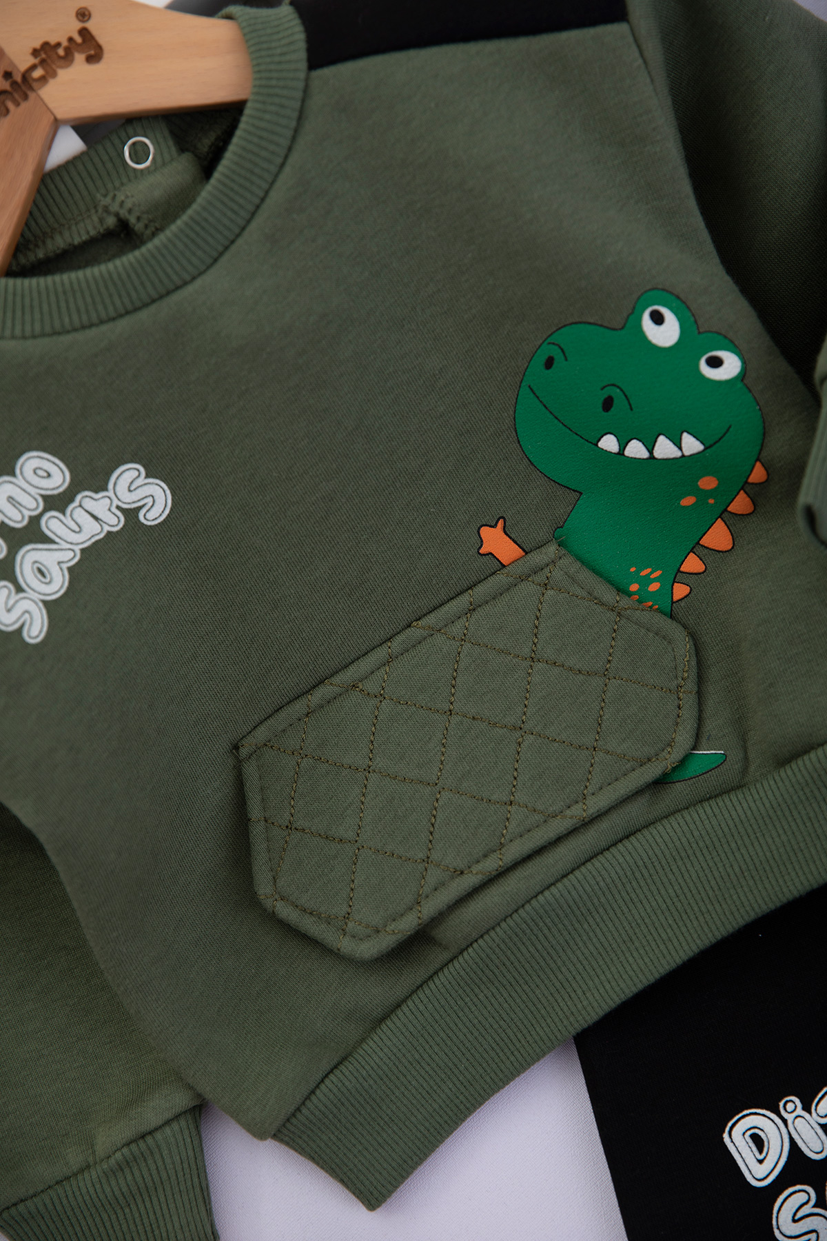 Erkek Bebek Dinazor Baskılı Üçip Takım - 24721 (9-24 Ay)